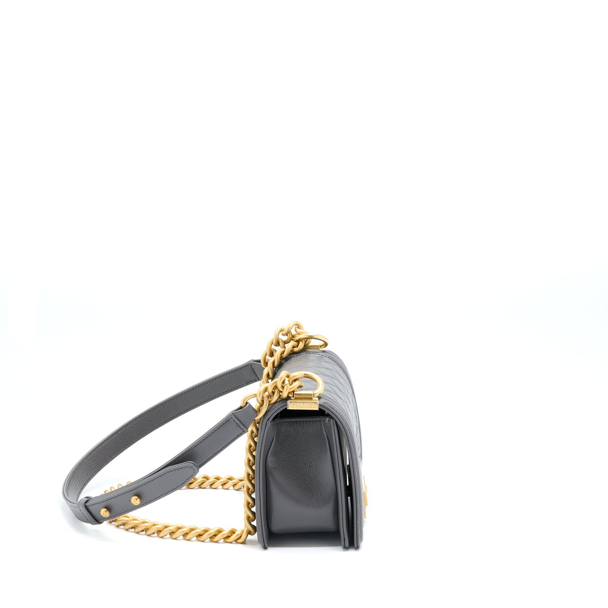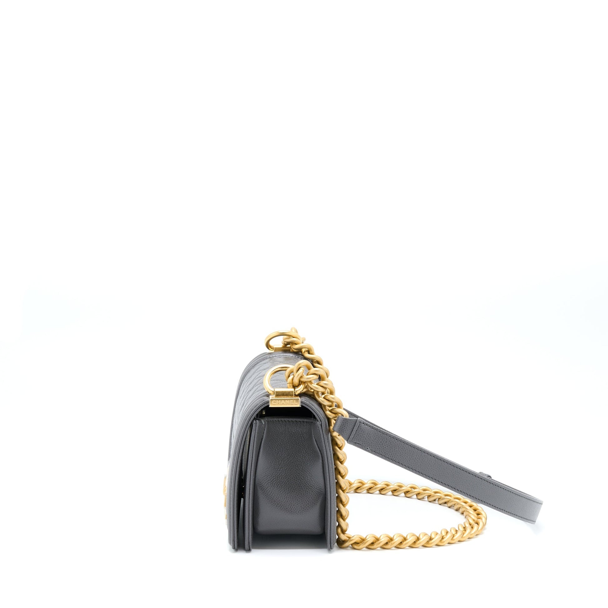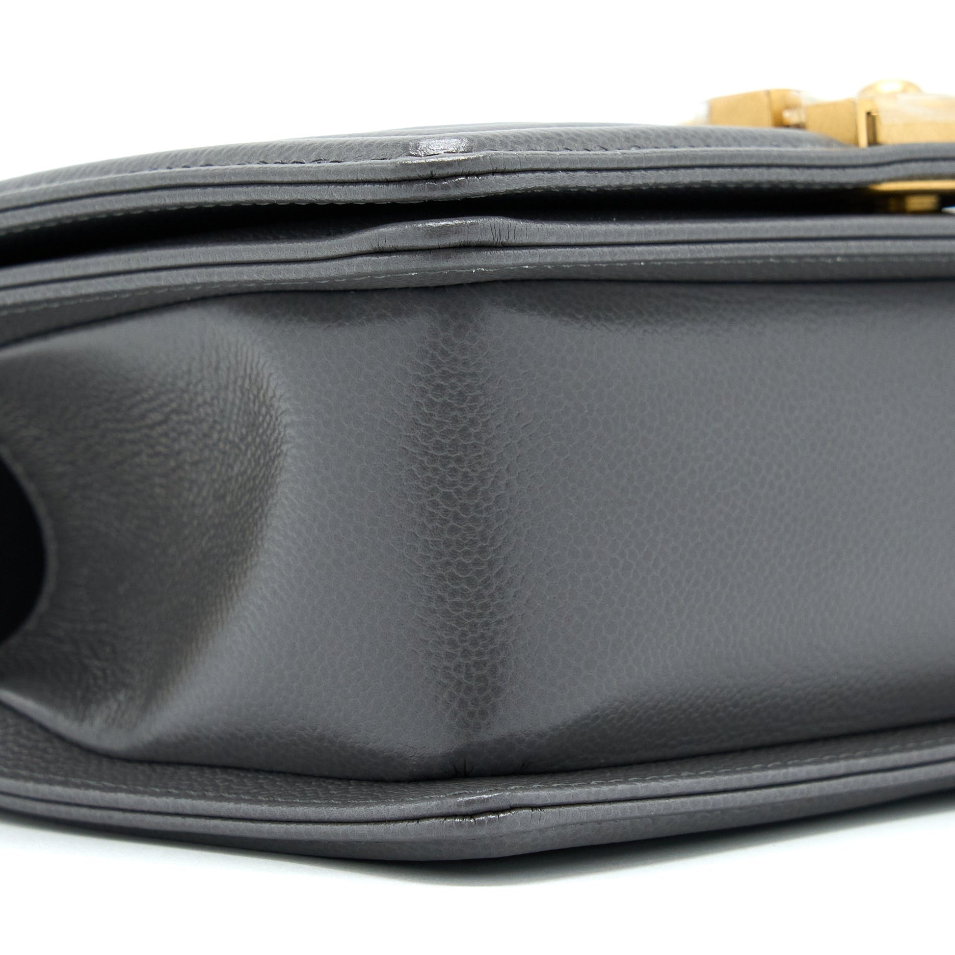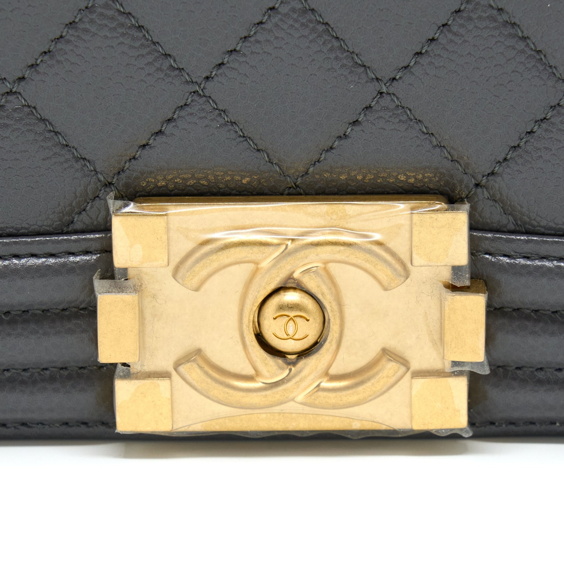 Chanel Small Boy Bag Caviar Grey GHW (Microchip)