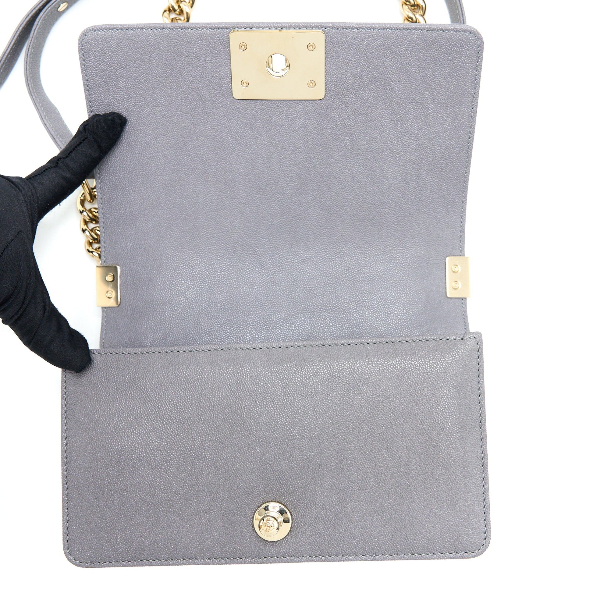 Chanel Small Boy Bag Caviar Grey LGHW