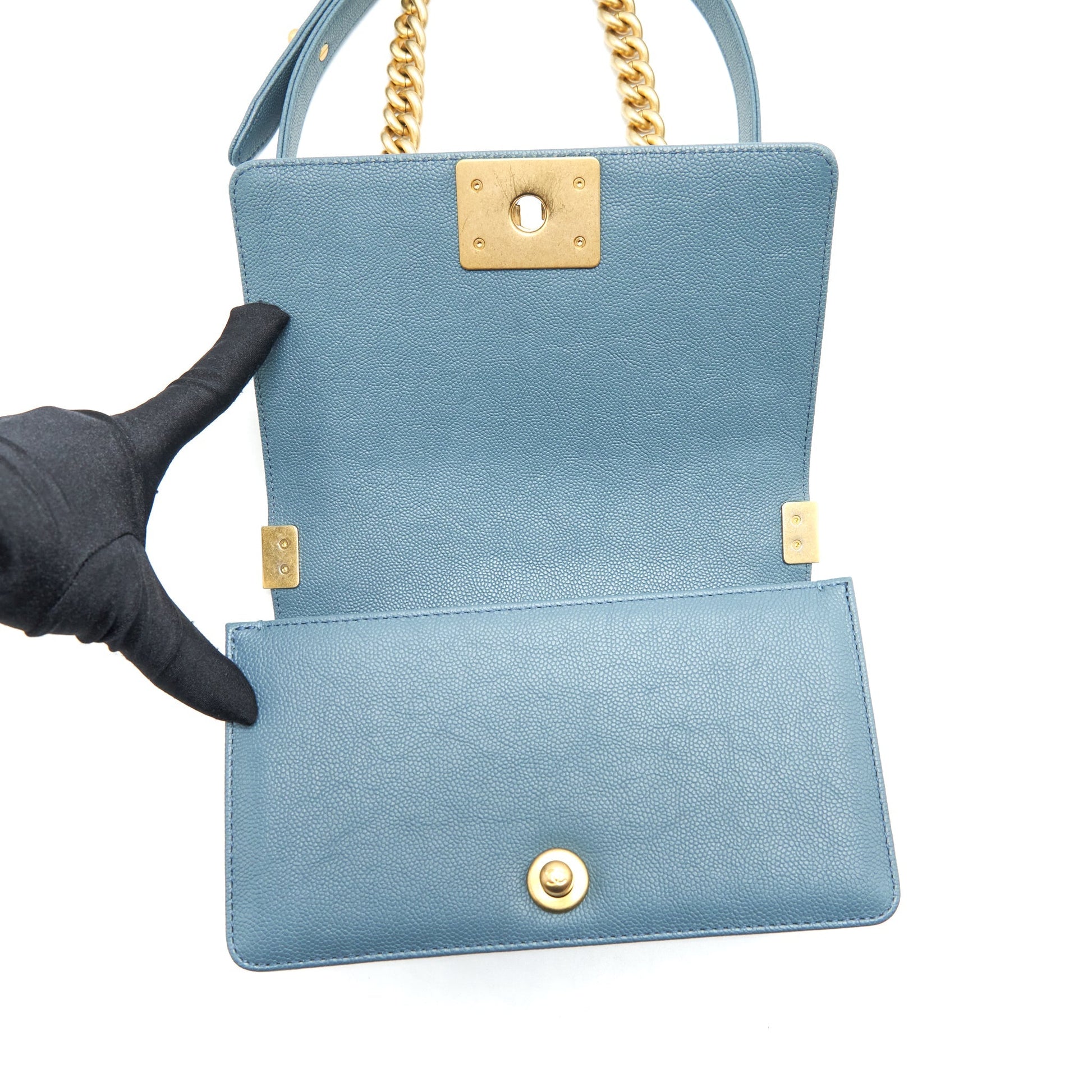 Chanel Small Boy Bag Caviar Greyish Blue Brushed GHW