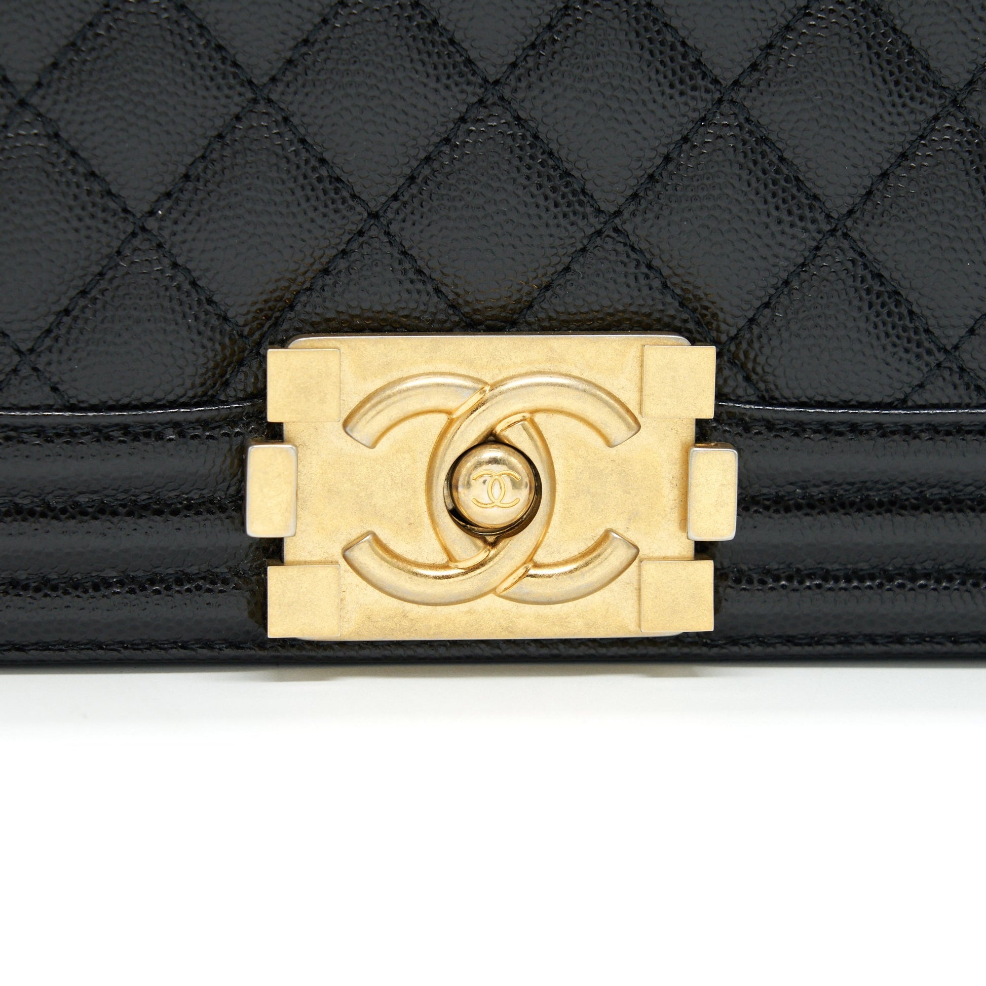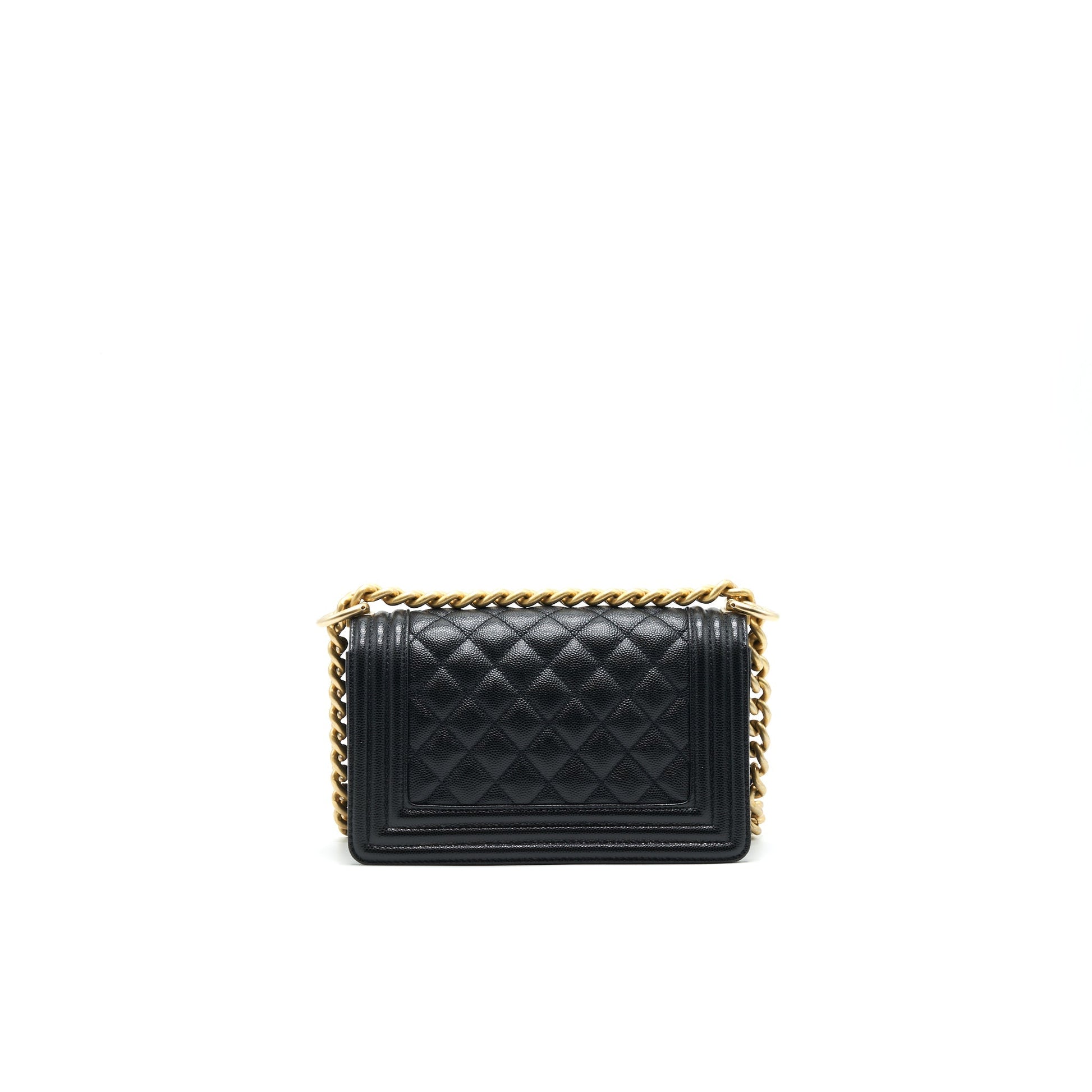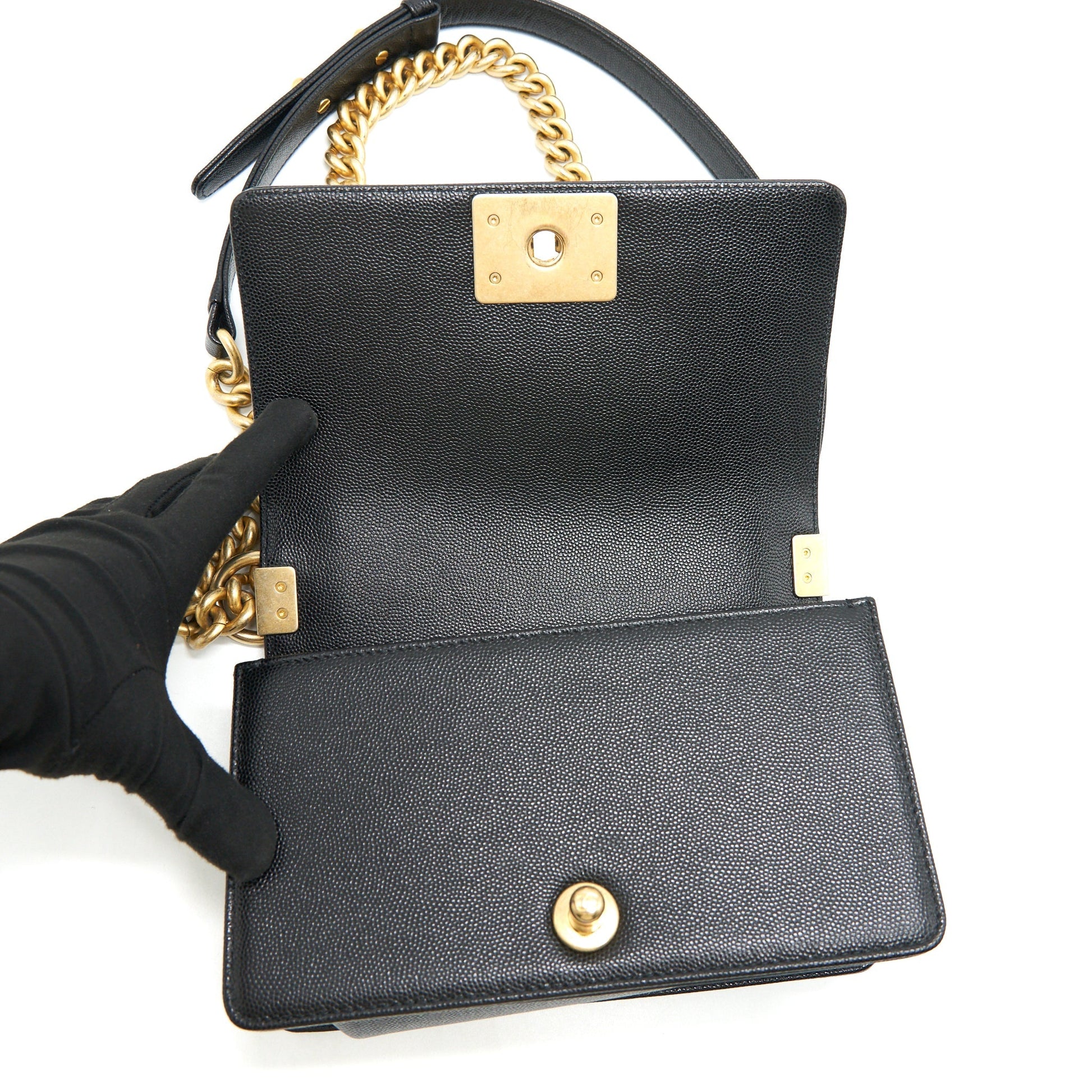 CHANEL SMALL BOY BAG CAVIAR LEATHER GHW BLACK