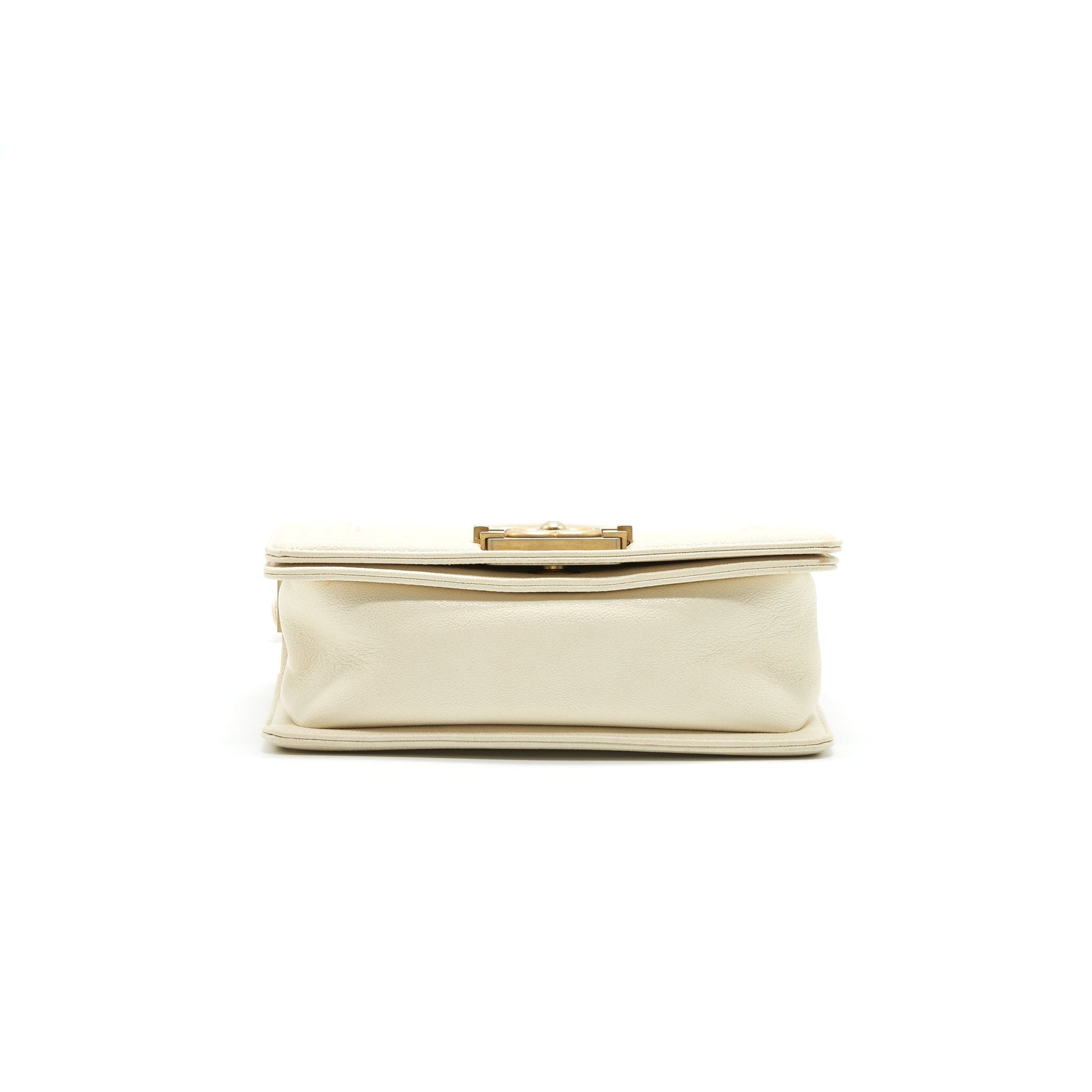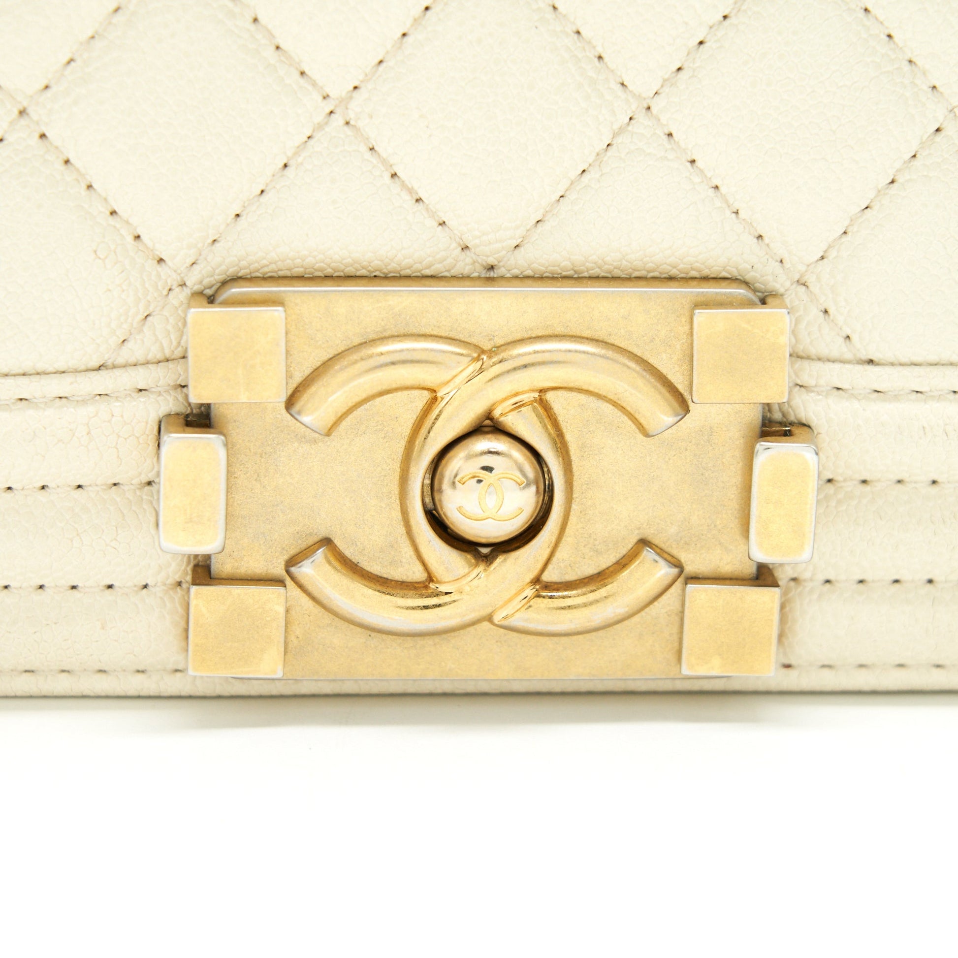 CHANEL SMALL BOY BAG CAVIAR LEATHER GHW IN WHITE
