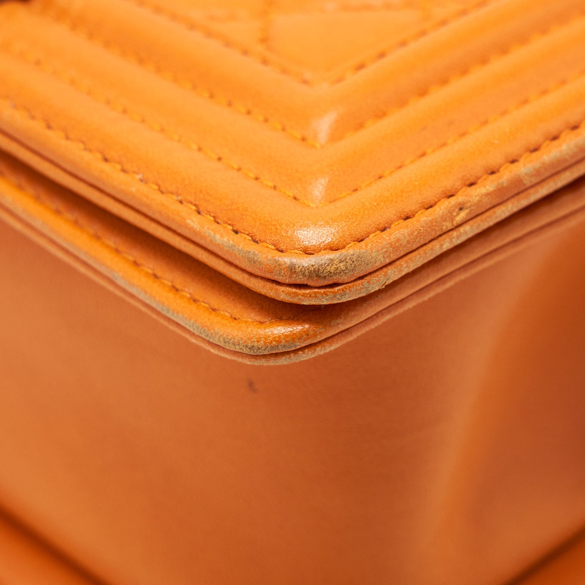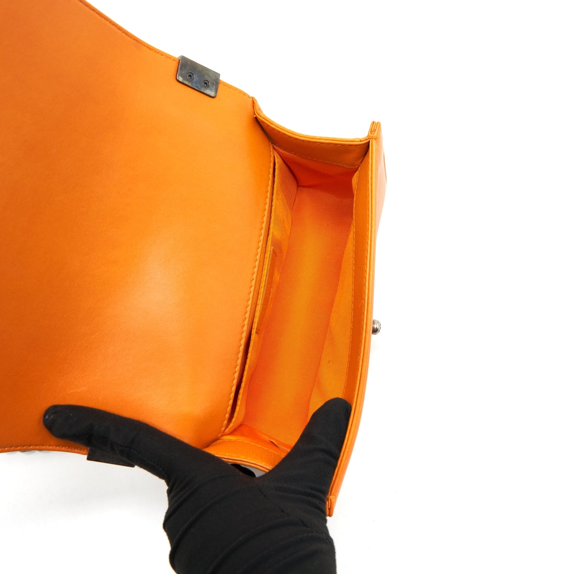 Chanel Small Boy Bag Lambskin Orange Ruthenium Hardware