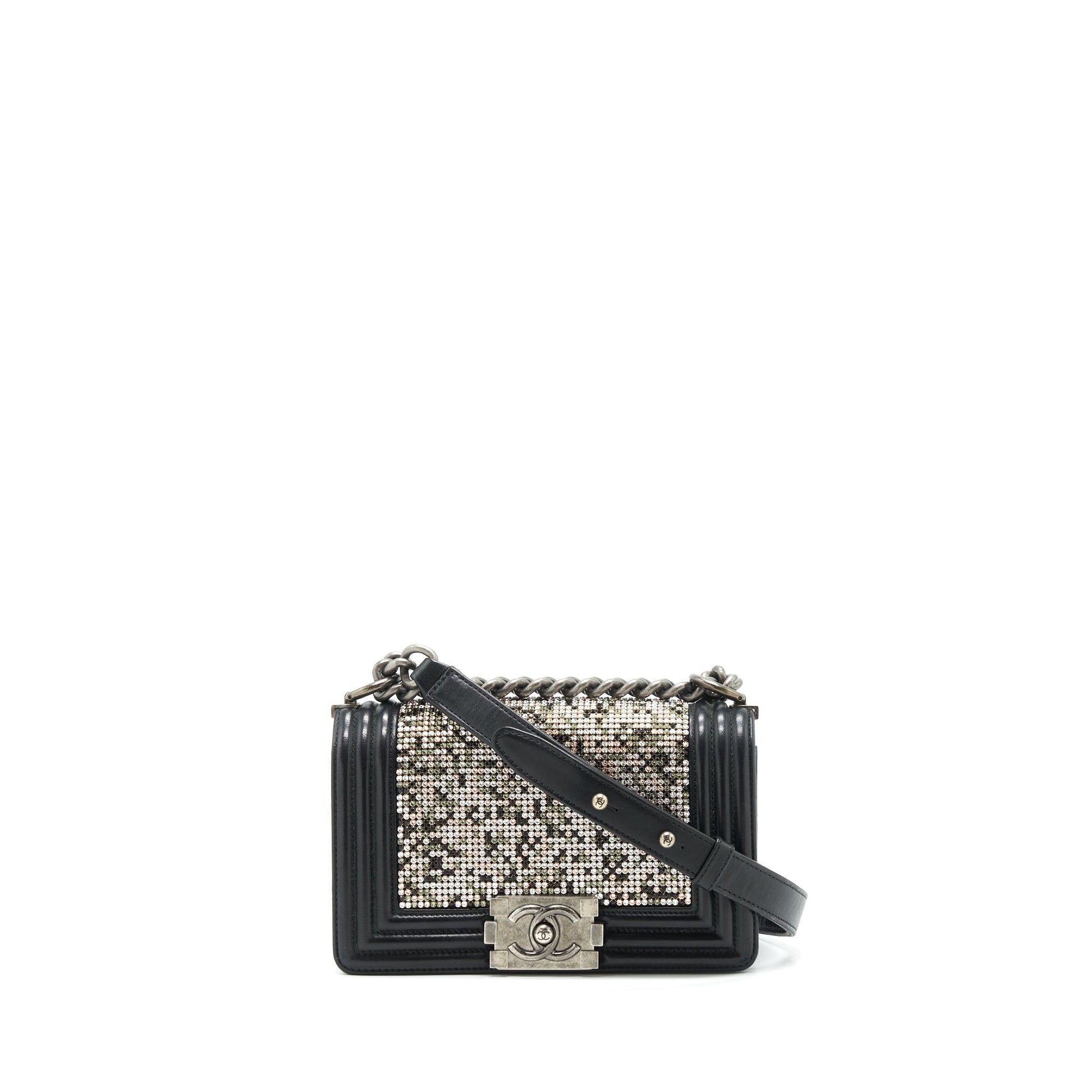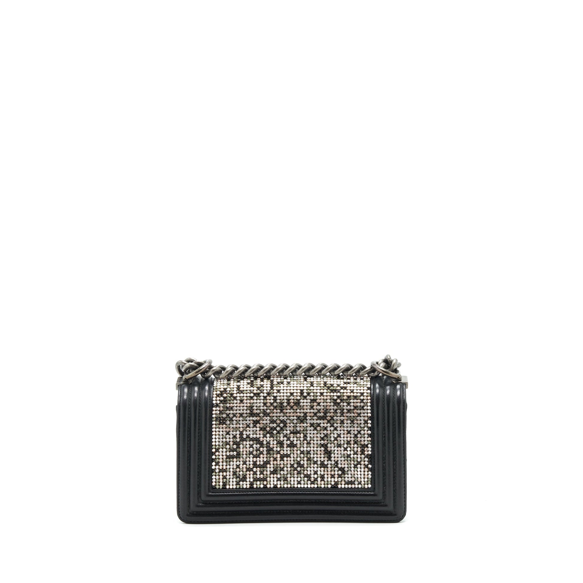 Chanel Small Boy With Crystals Lambskin Black Ruthenium Hardware