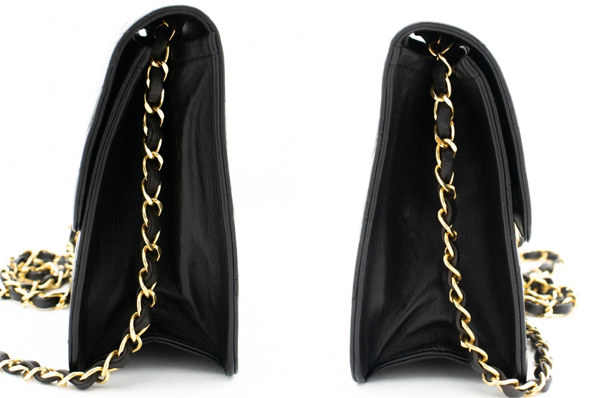 An CHANEL Small Chain Shoulder Bag Clutch Black Quilted Flap made of black Lambskin j85 This item is Vintage / Classic. The year of manufacture would be 1991-1994.