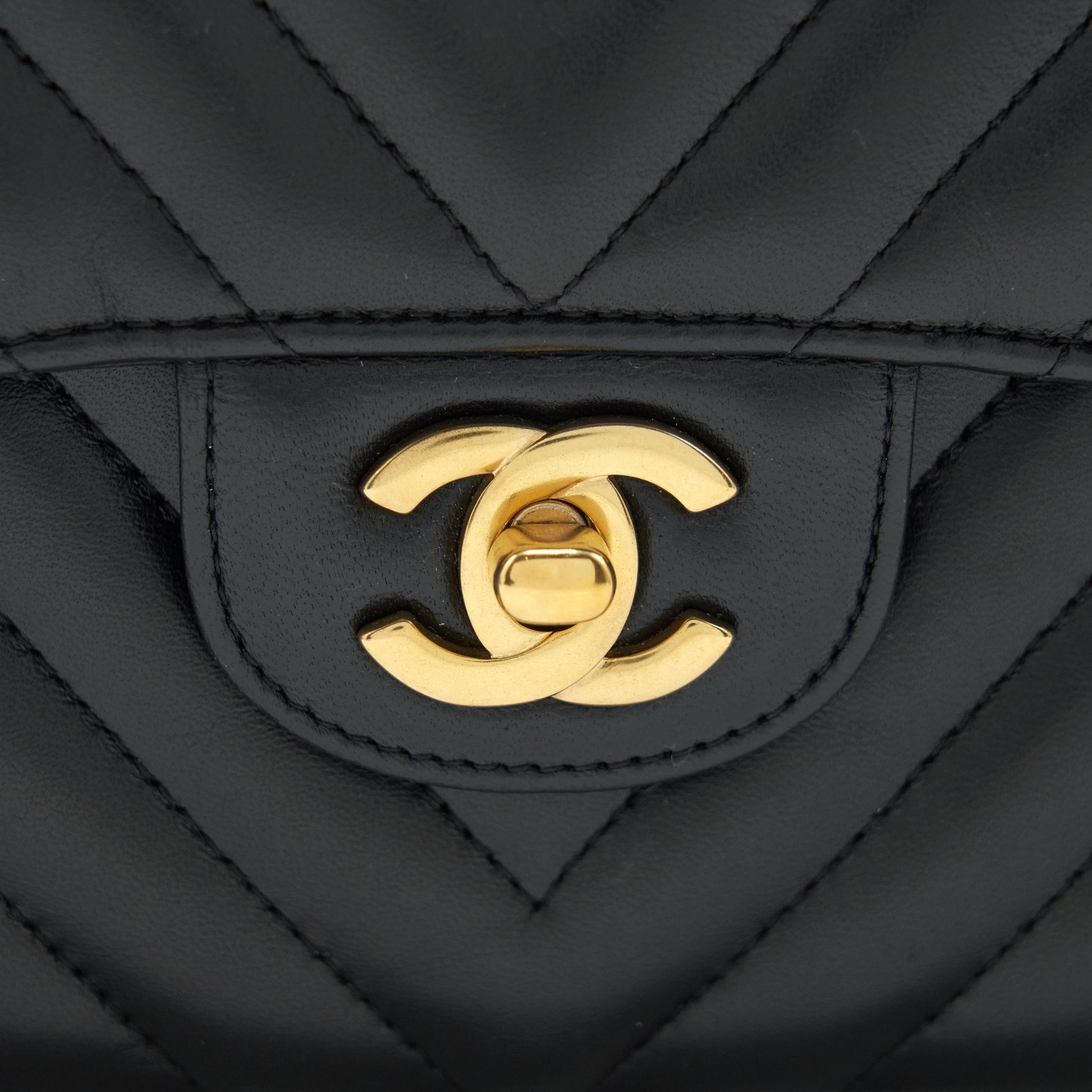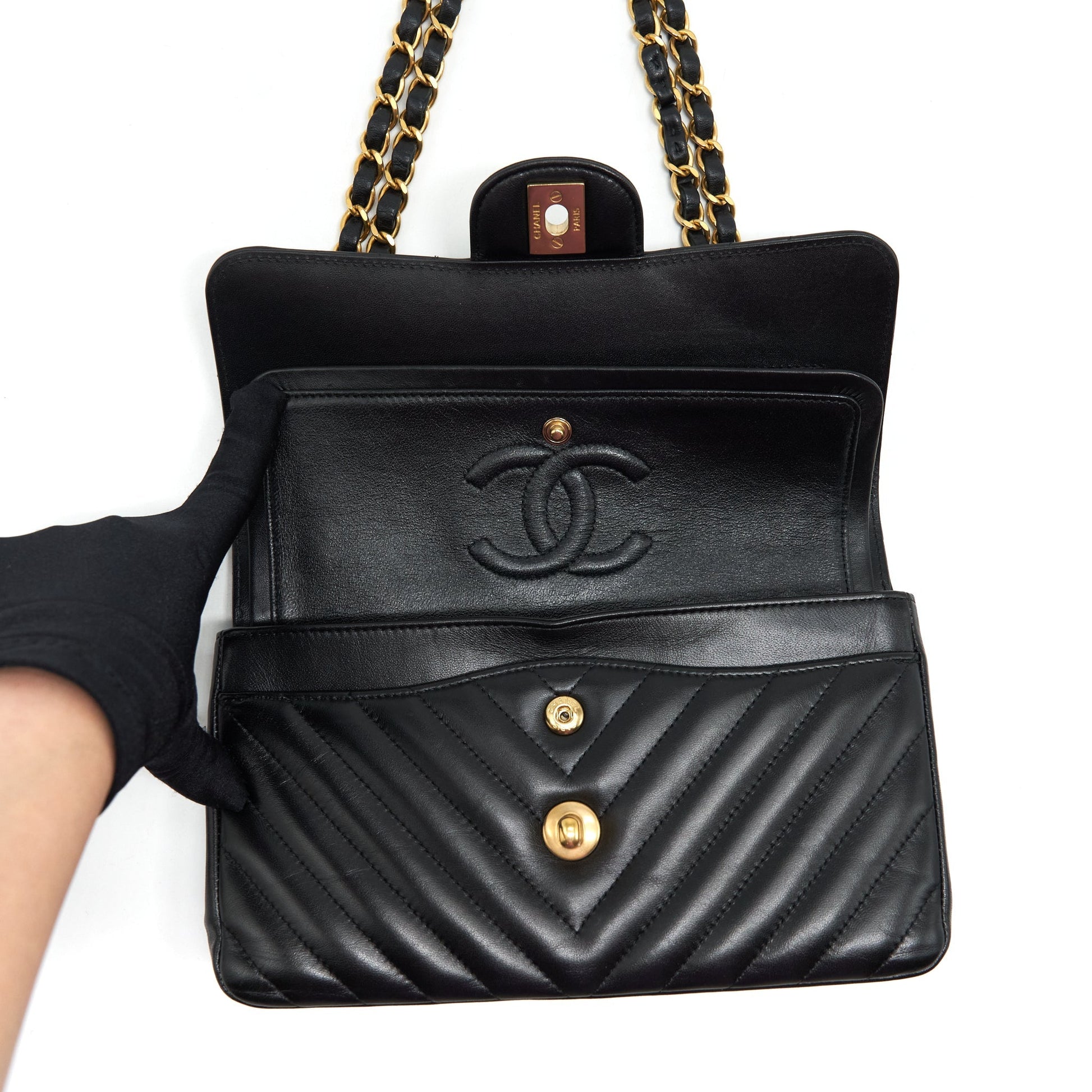 Chanel Small Classic Double Flap Bag Chevron Lambskin Black GHW