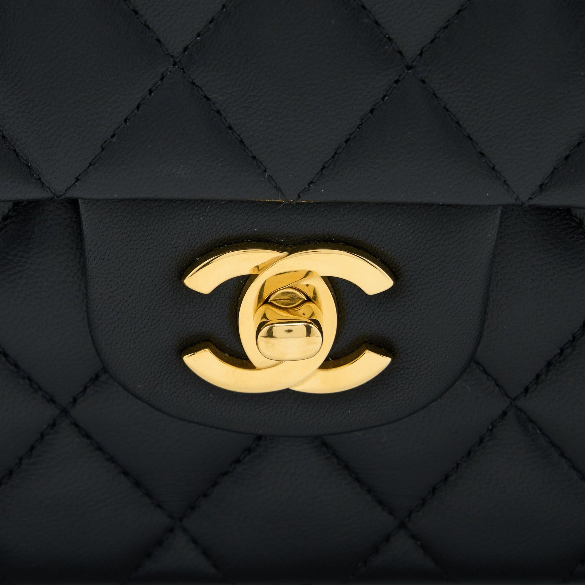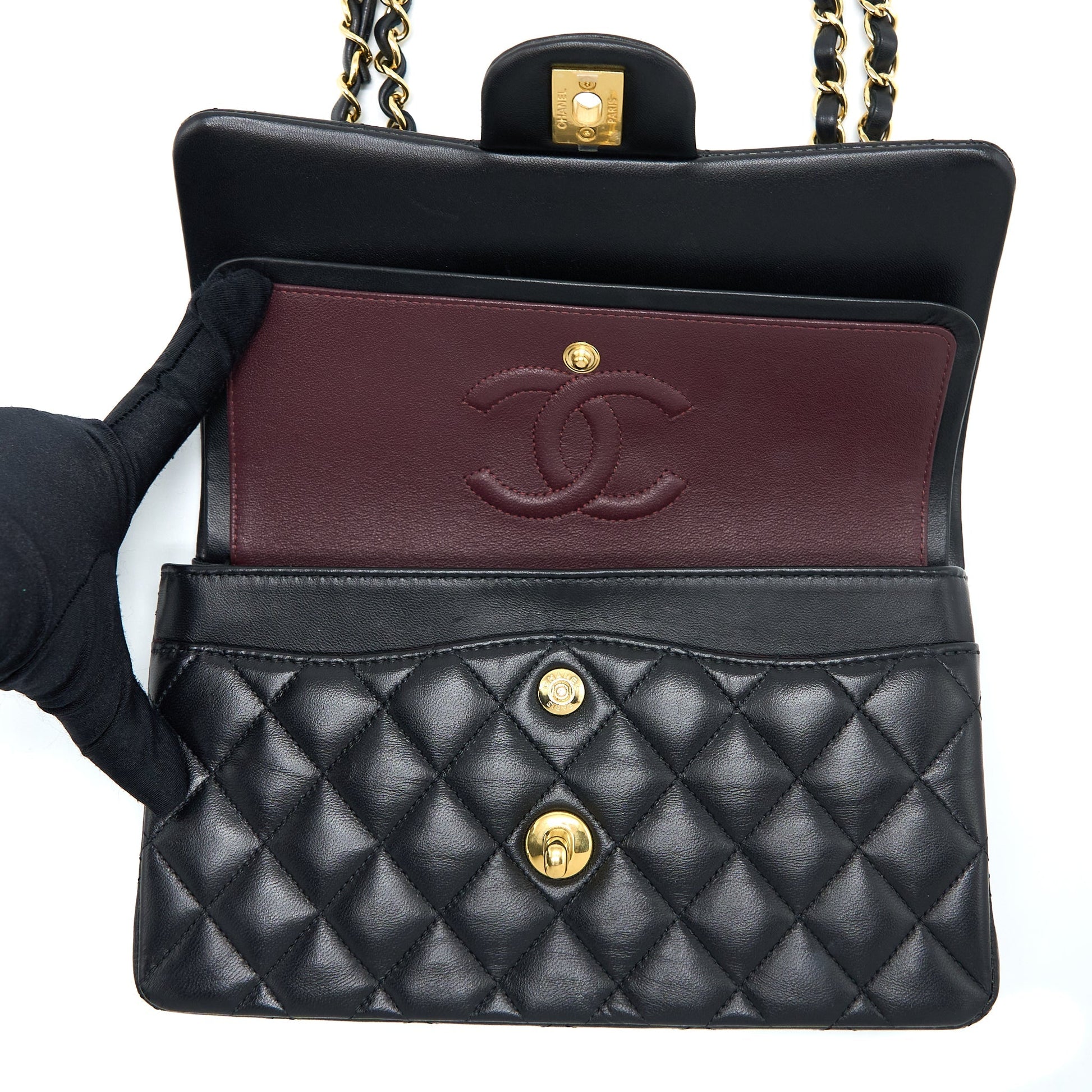Chanel Small Classic Double Flap Bag Lambskin Black GHW (Microchip)
