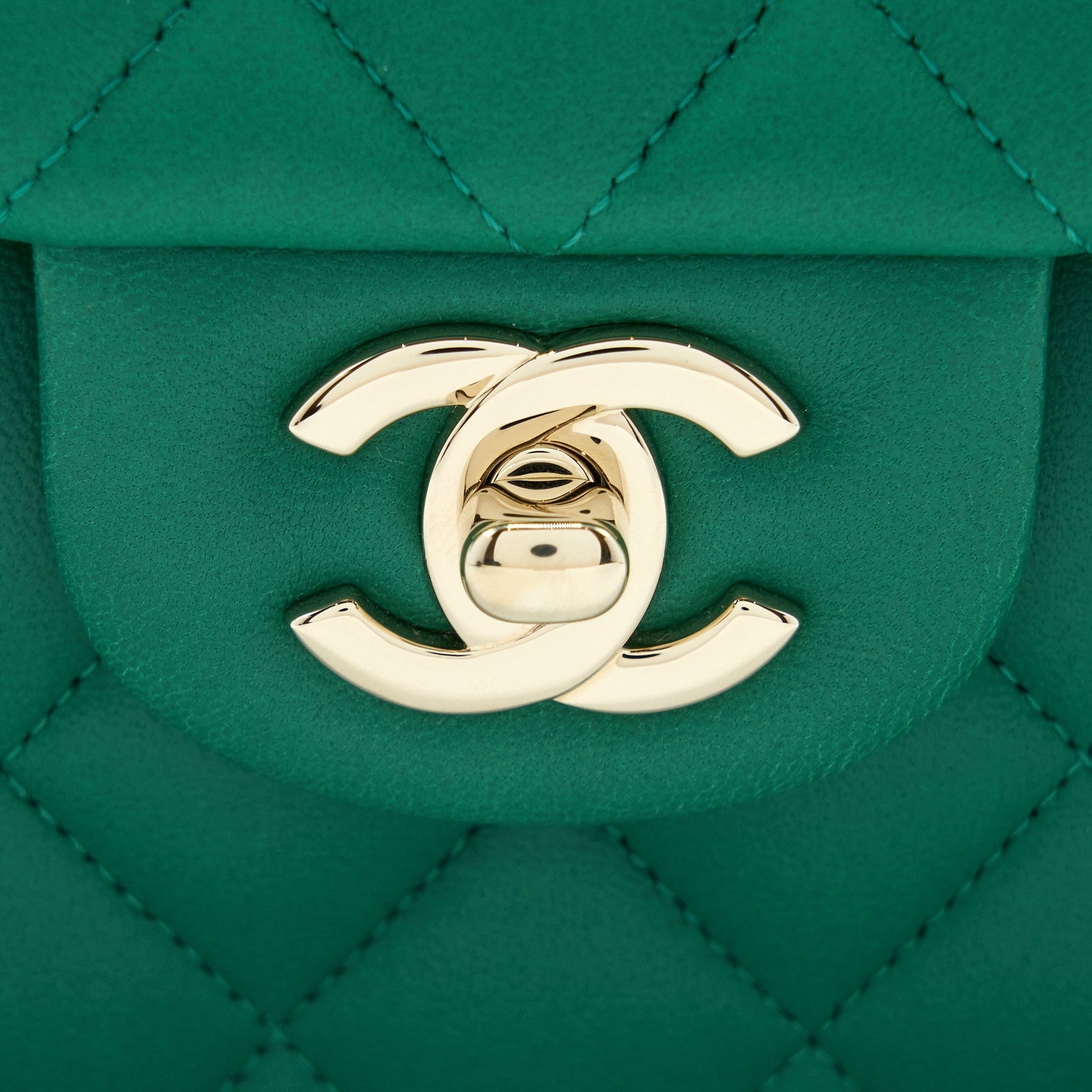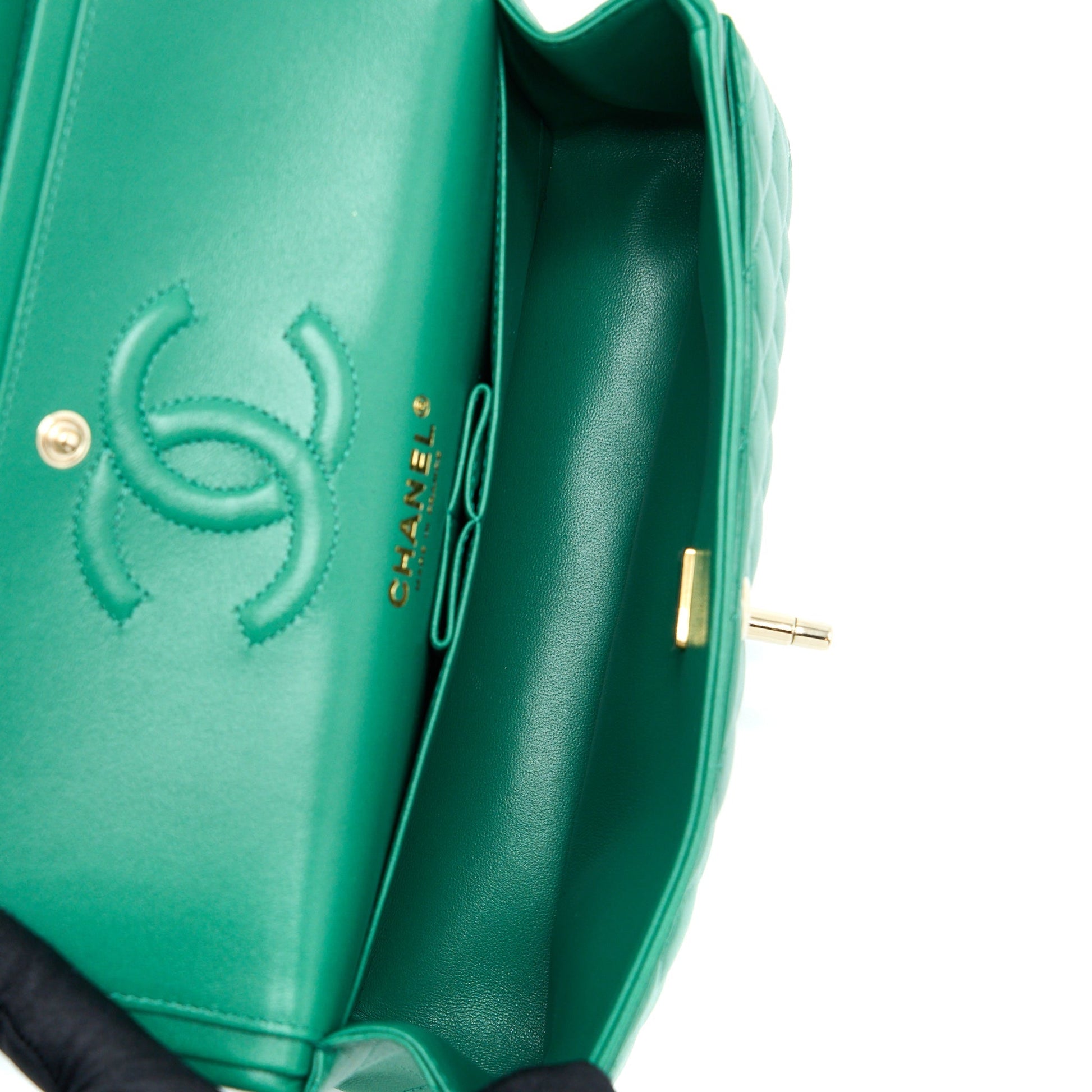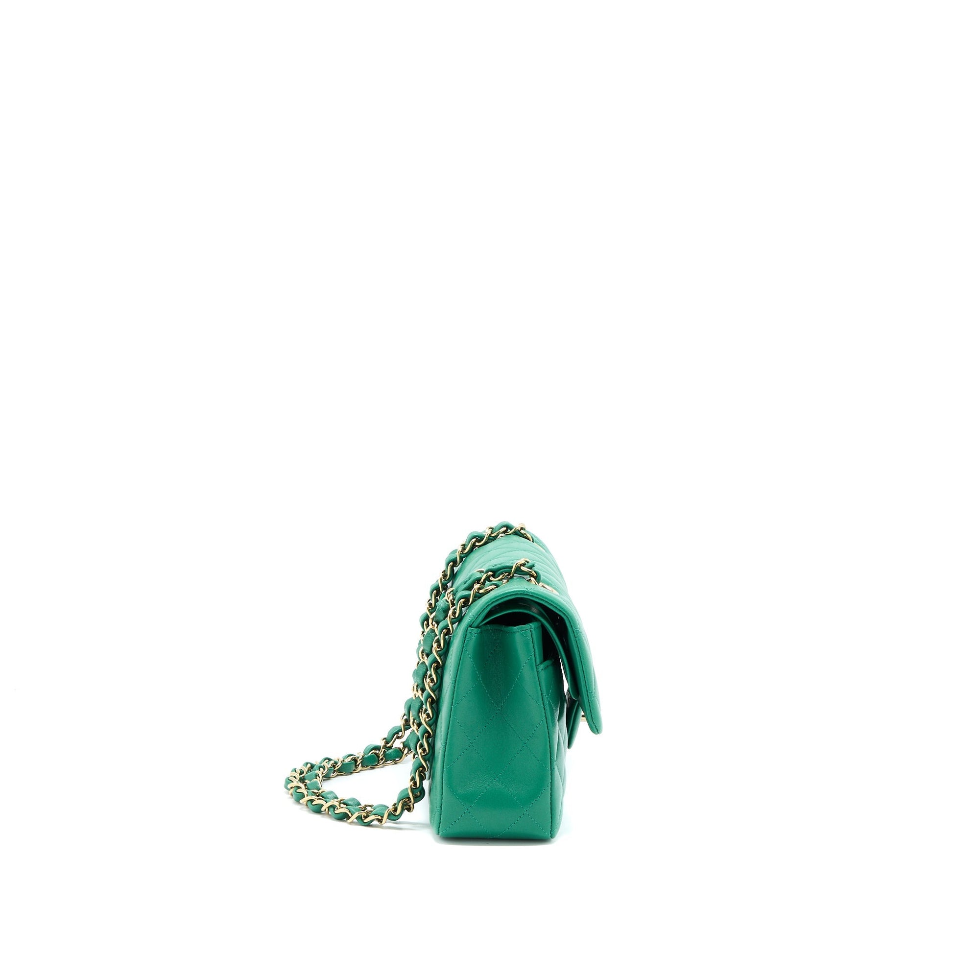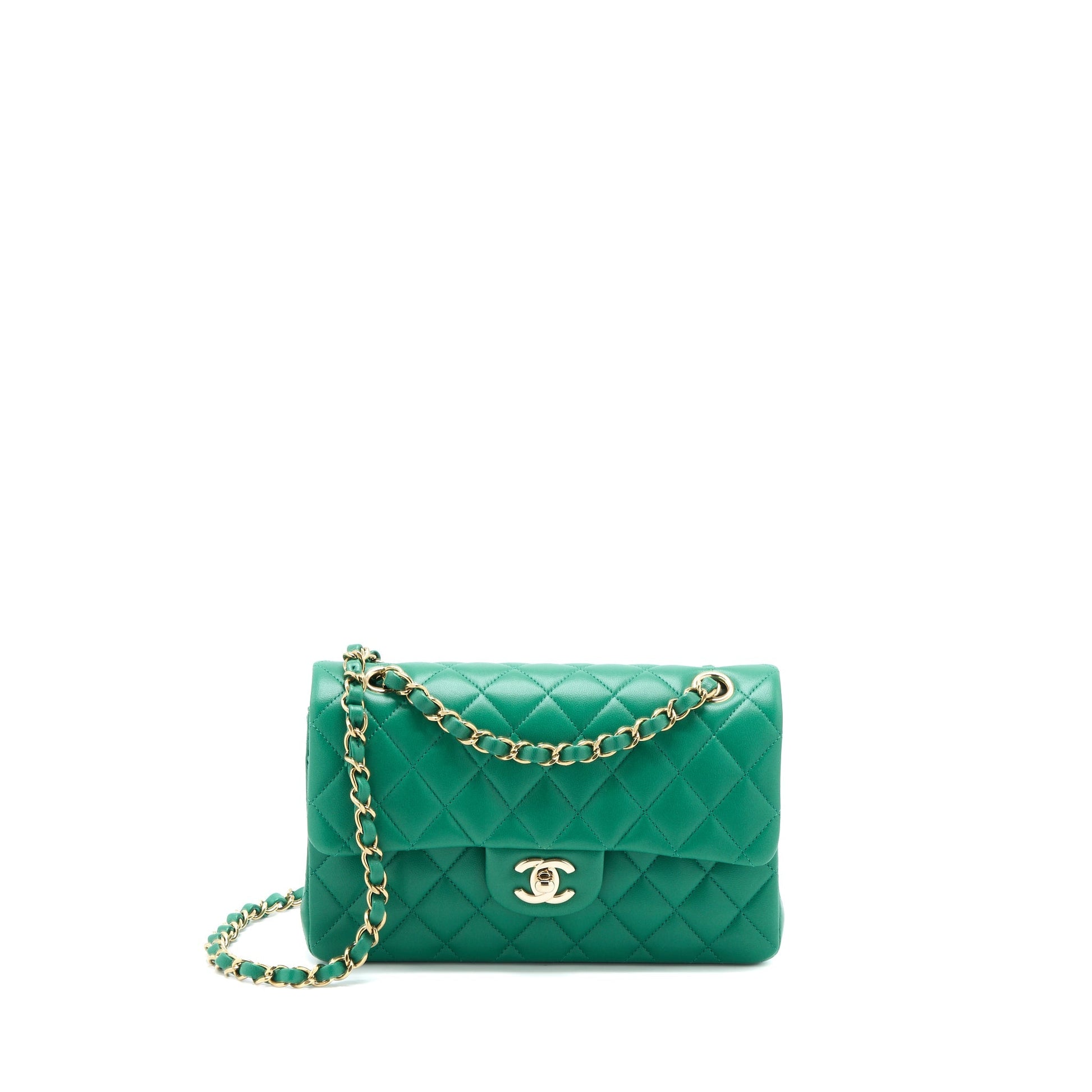 Chanel Small Classic Double Flap Bag Lambskin Green LGHW(Microchip)