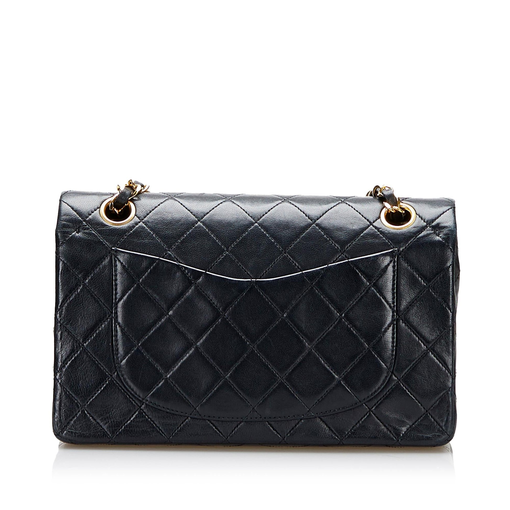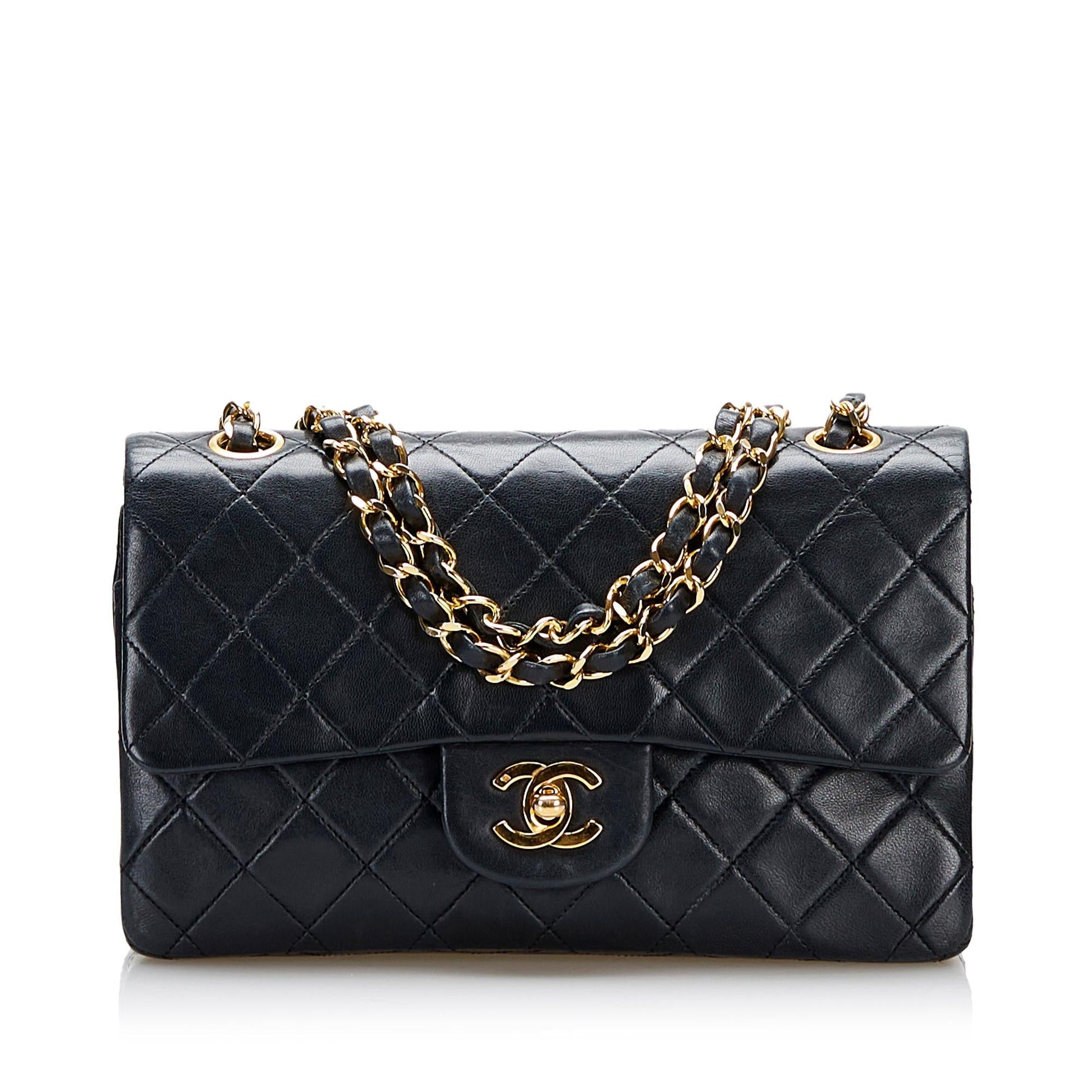 Chanel Small Classic Lambskin Leather Double Flap Bag (SHG-36956)