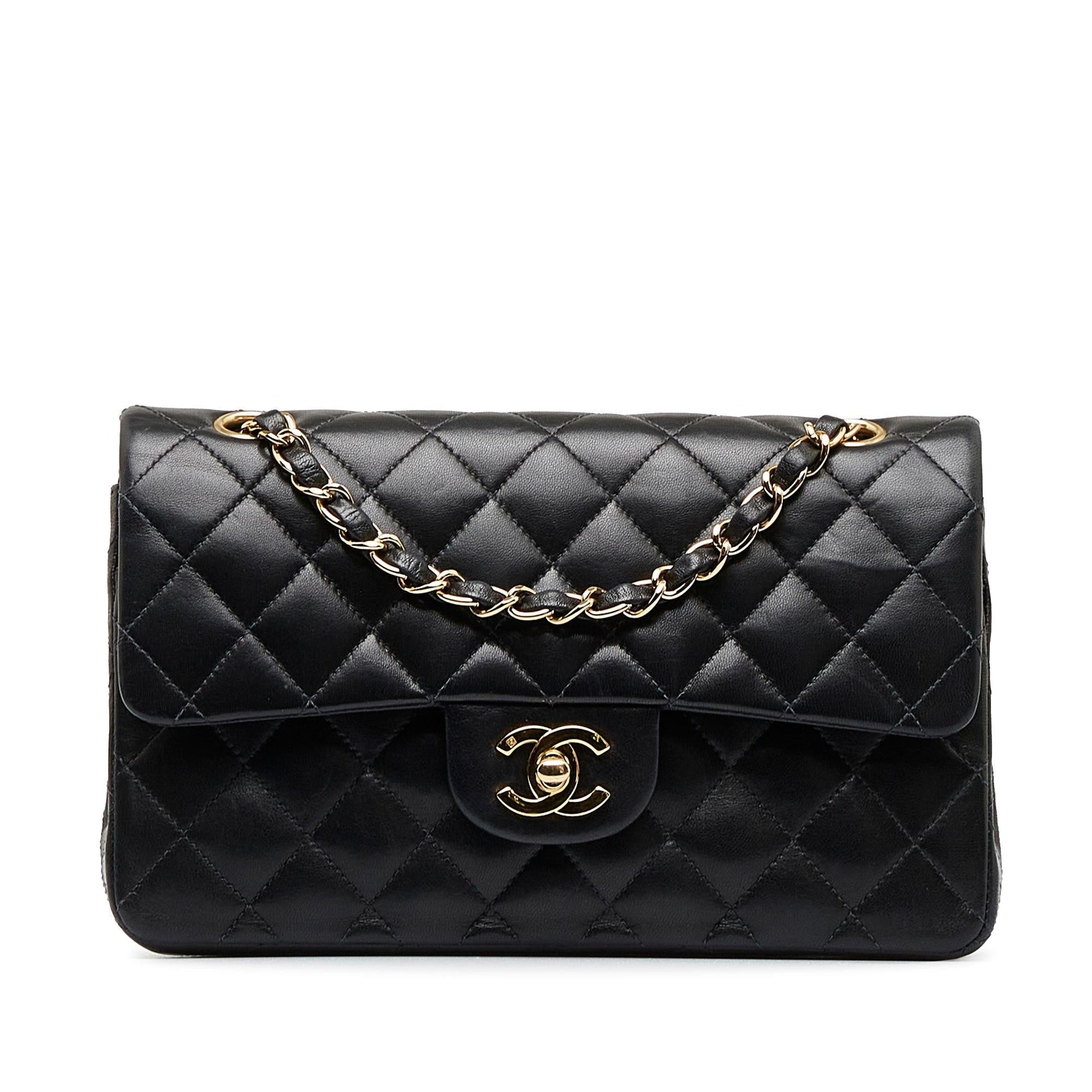 Chanel Small Classic Lambskin Leather Double Flap Bag (SHG-acYIYl)