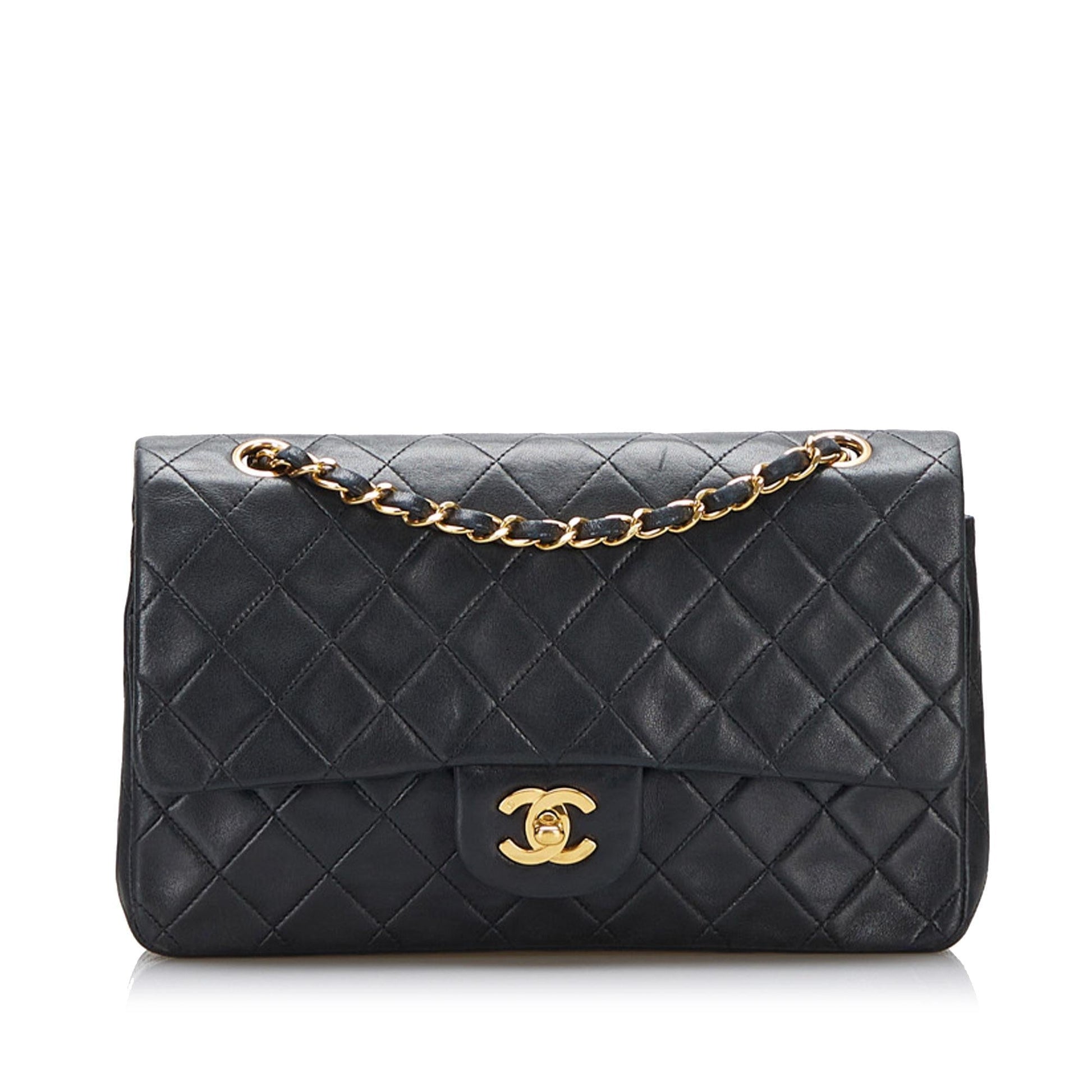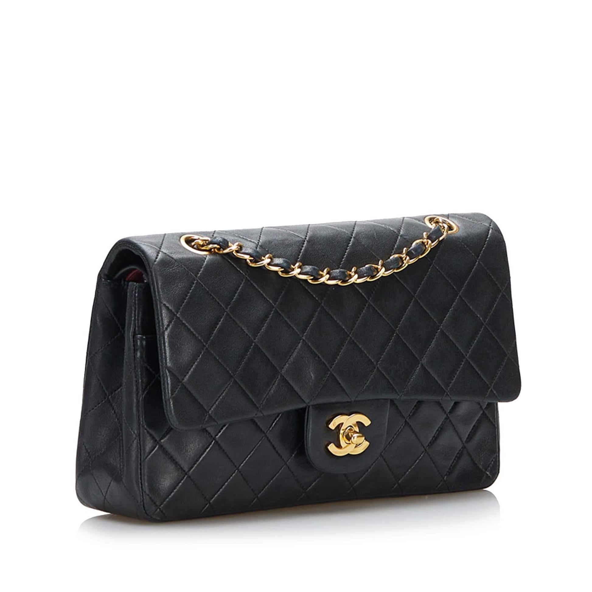 Chanel Small Classic Lambskin Leather Double Flap Bag (SHG-AUyedS)