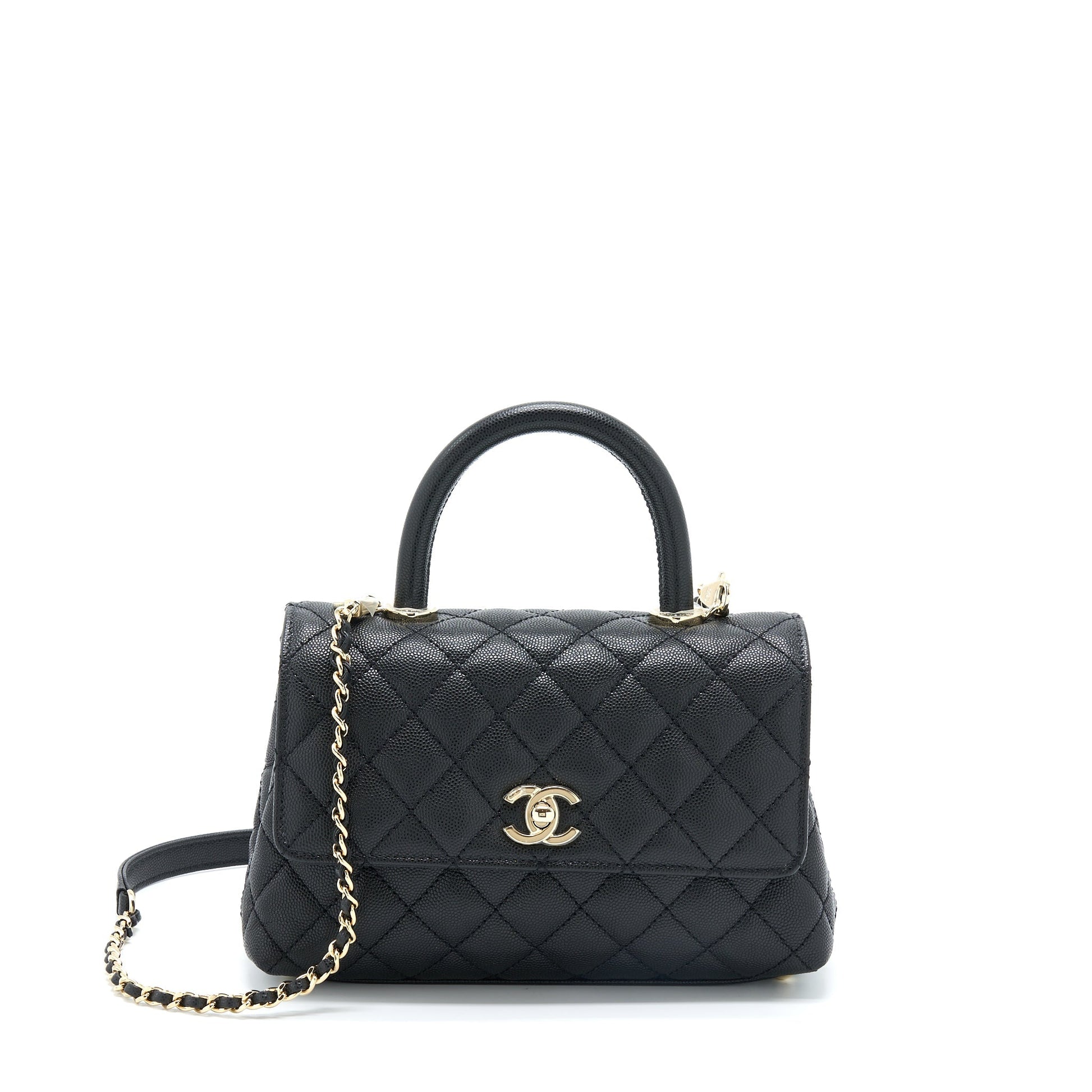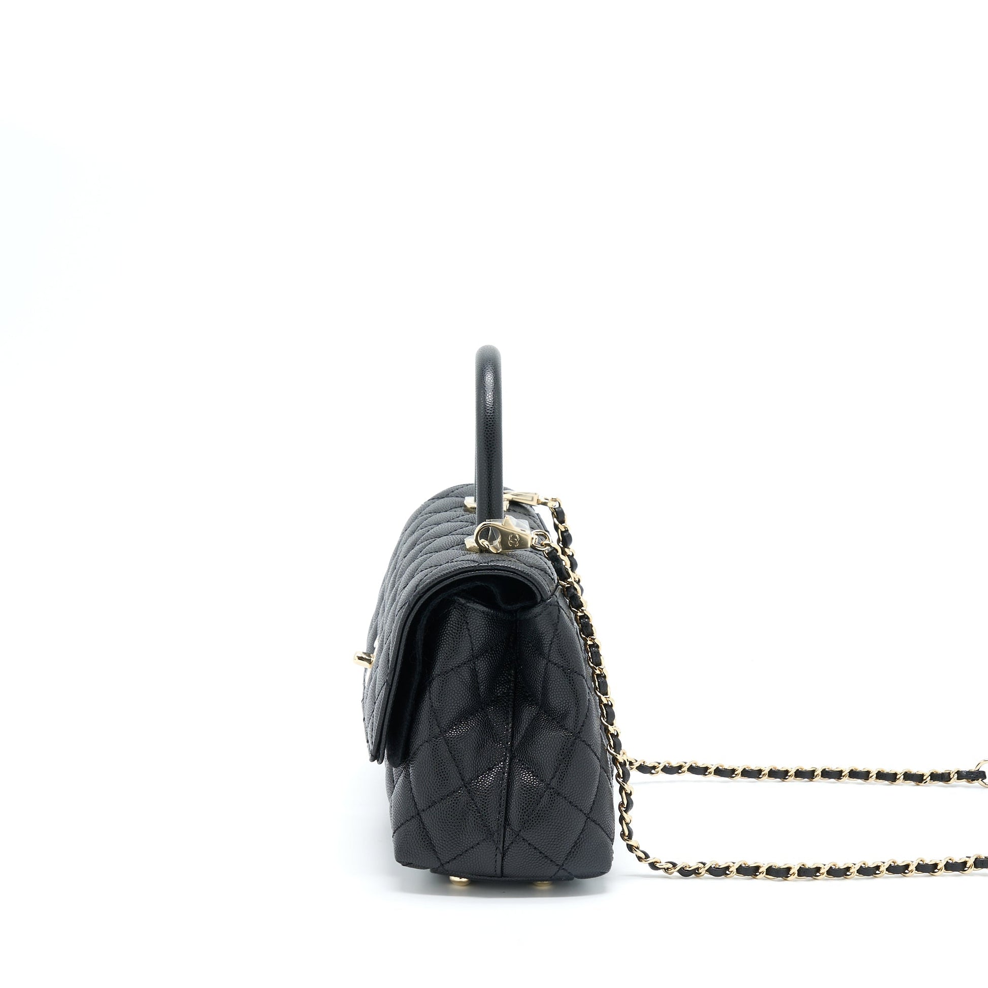Chanel Small Coco Handle Caviar Black LGHW (Microchip)