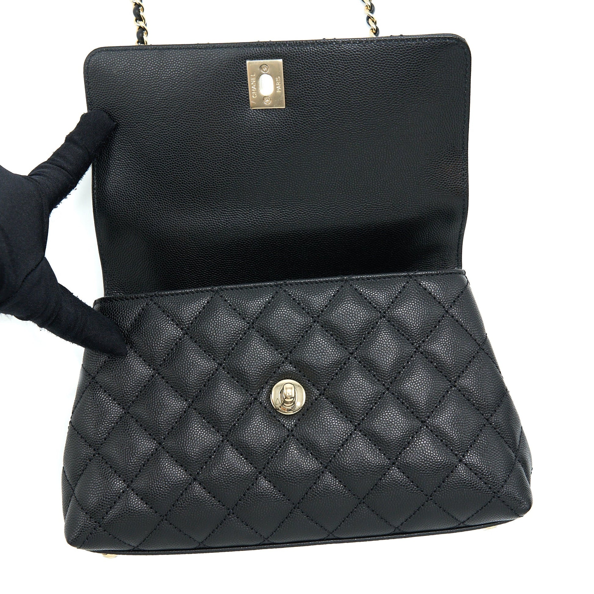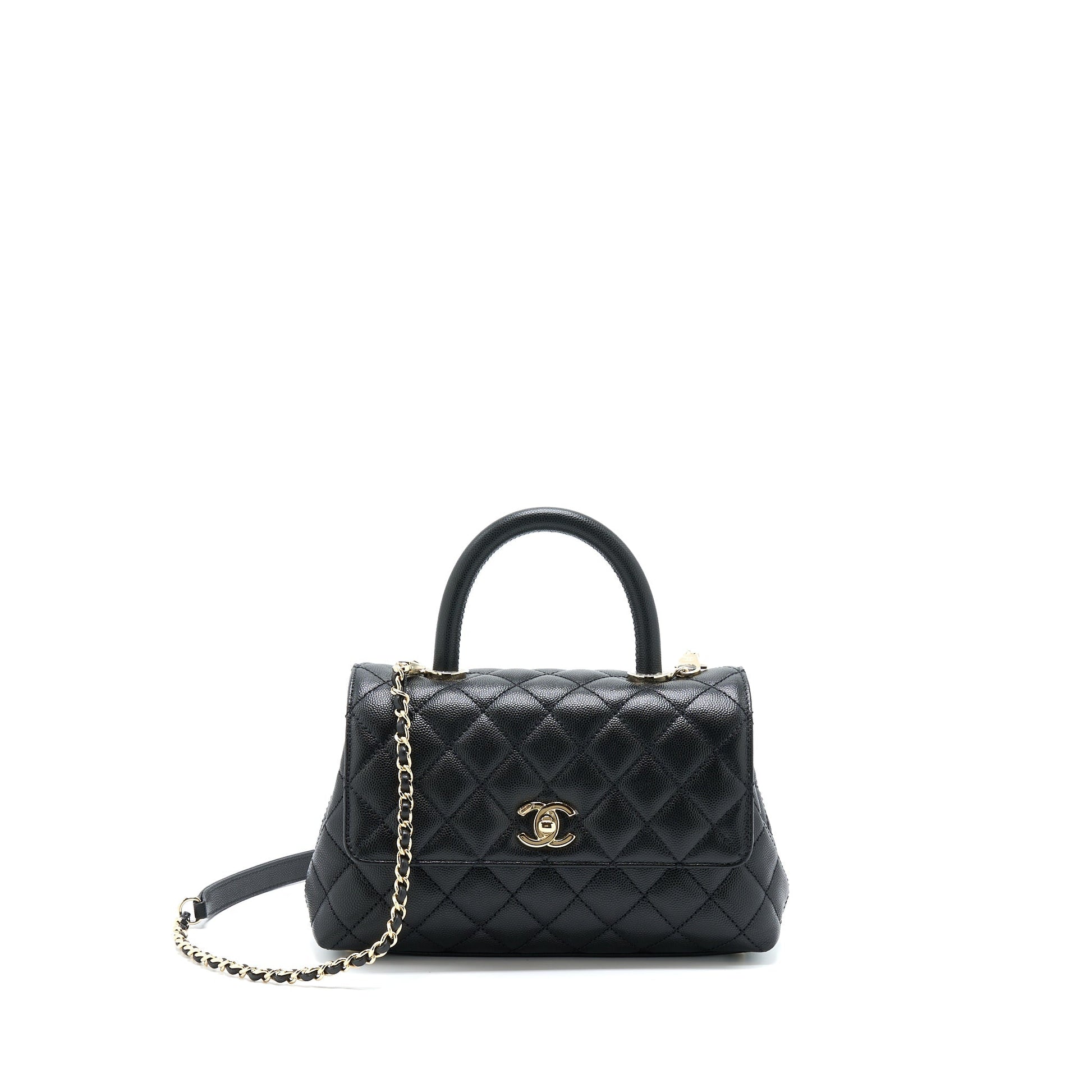 Chanel Small Coco Handle Caviar Black LGHW (Microchip).