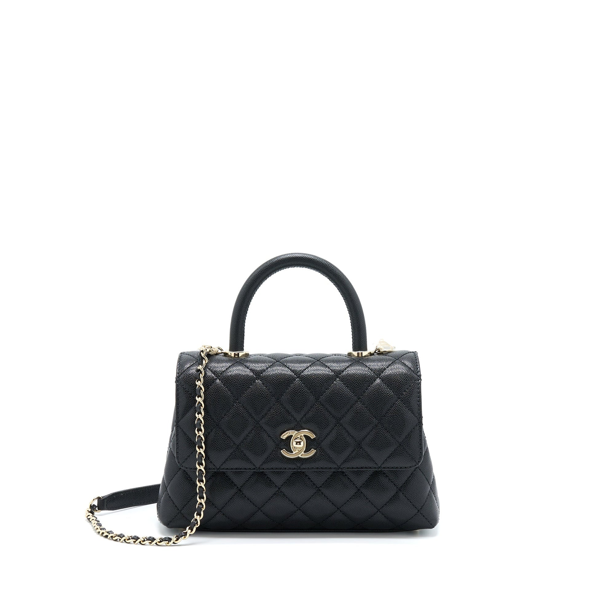 Chanel Small Coco Handle Caviar Black LGHW (Microchip)