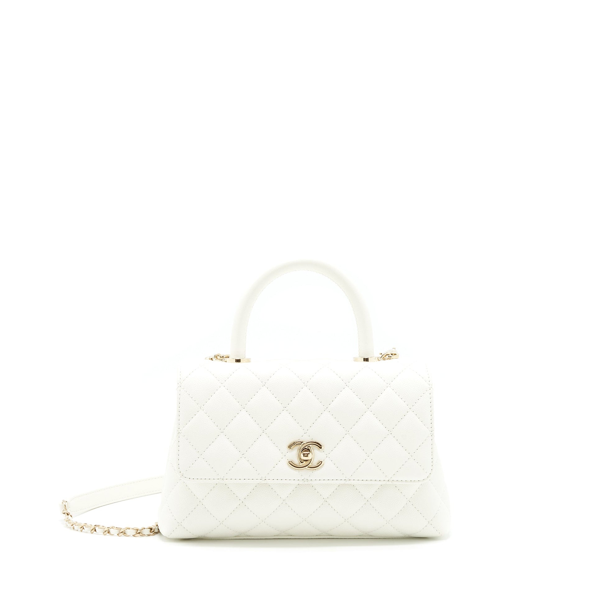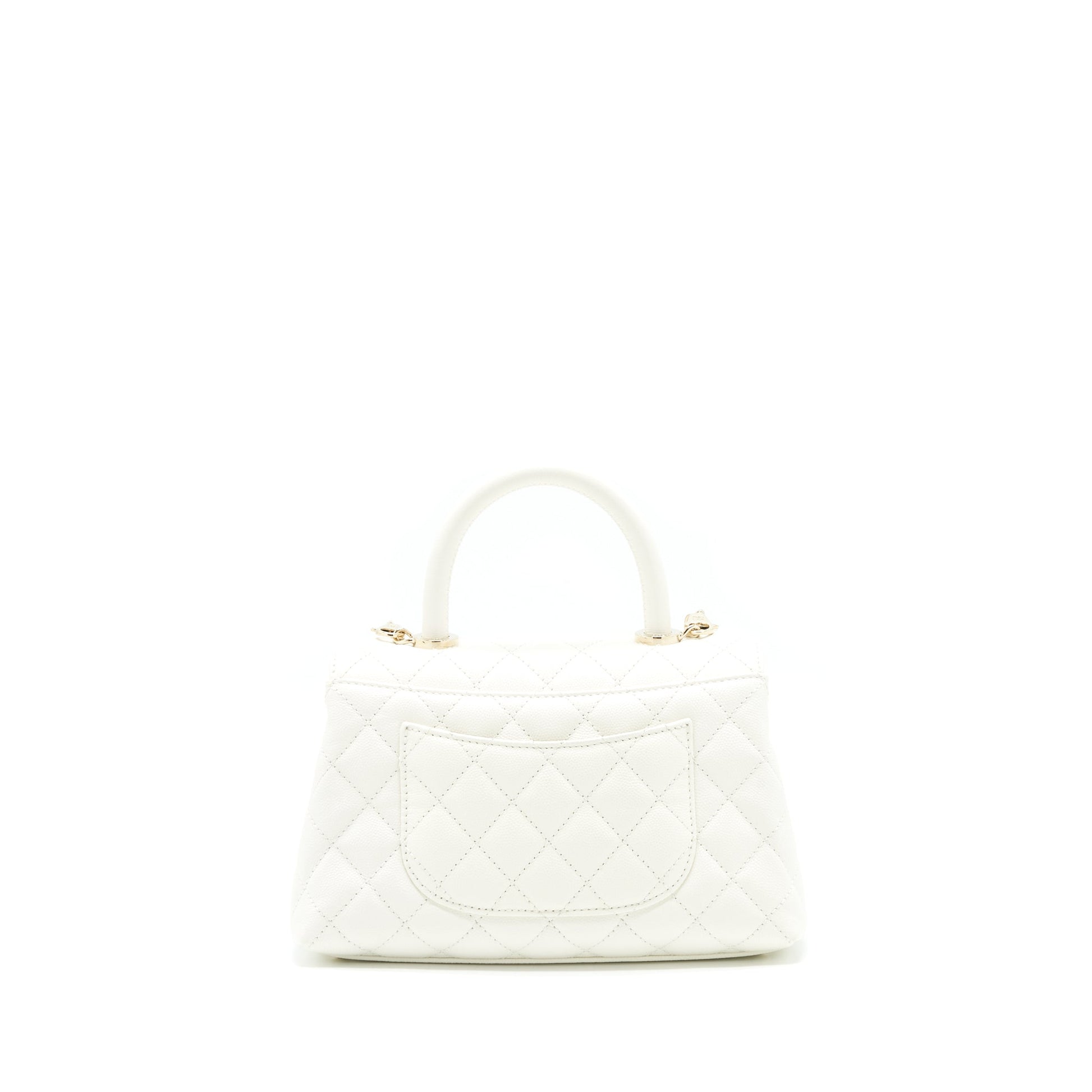 Chanel Small Coco handle Caviar White LGHW (microchip)