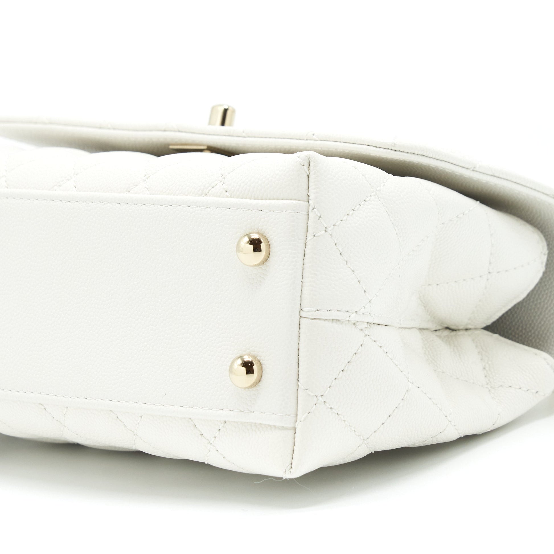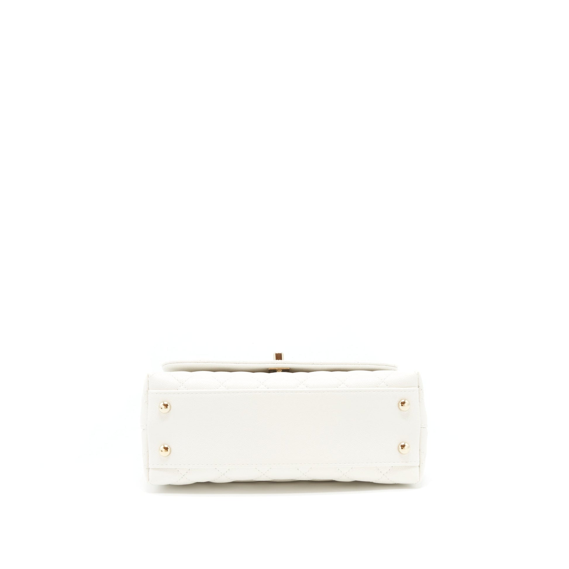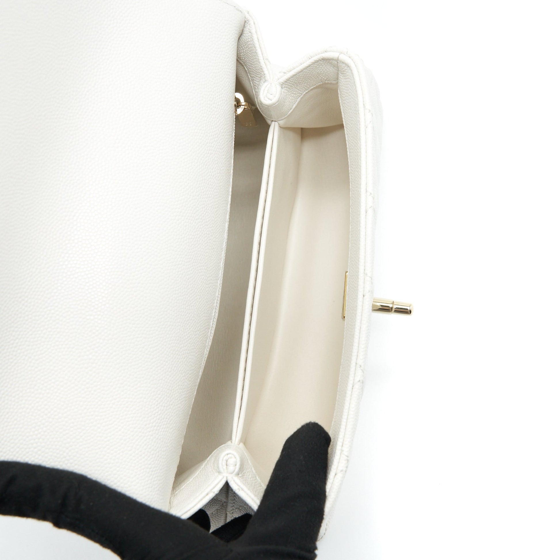 Chanel Small Coco Handle Caviar White LGHW (Microchip)