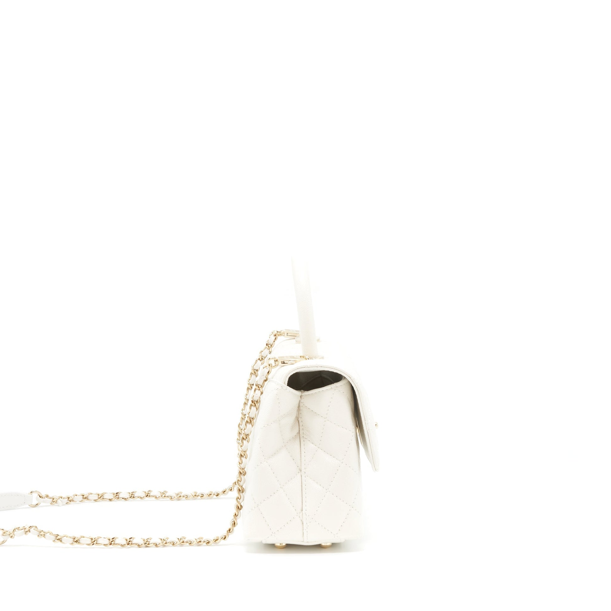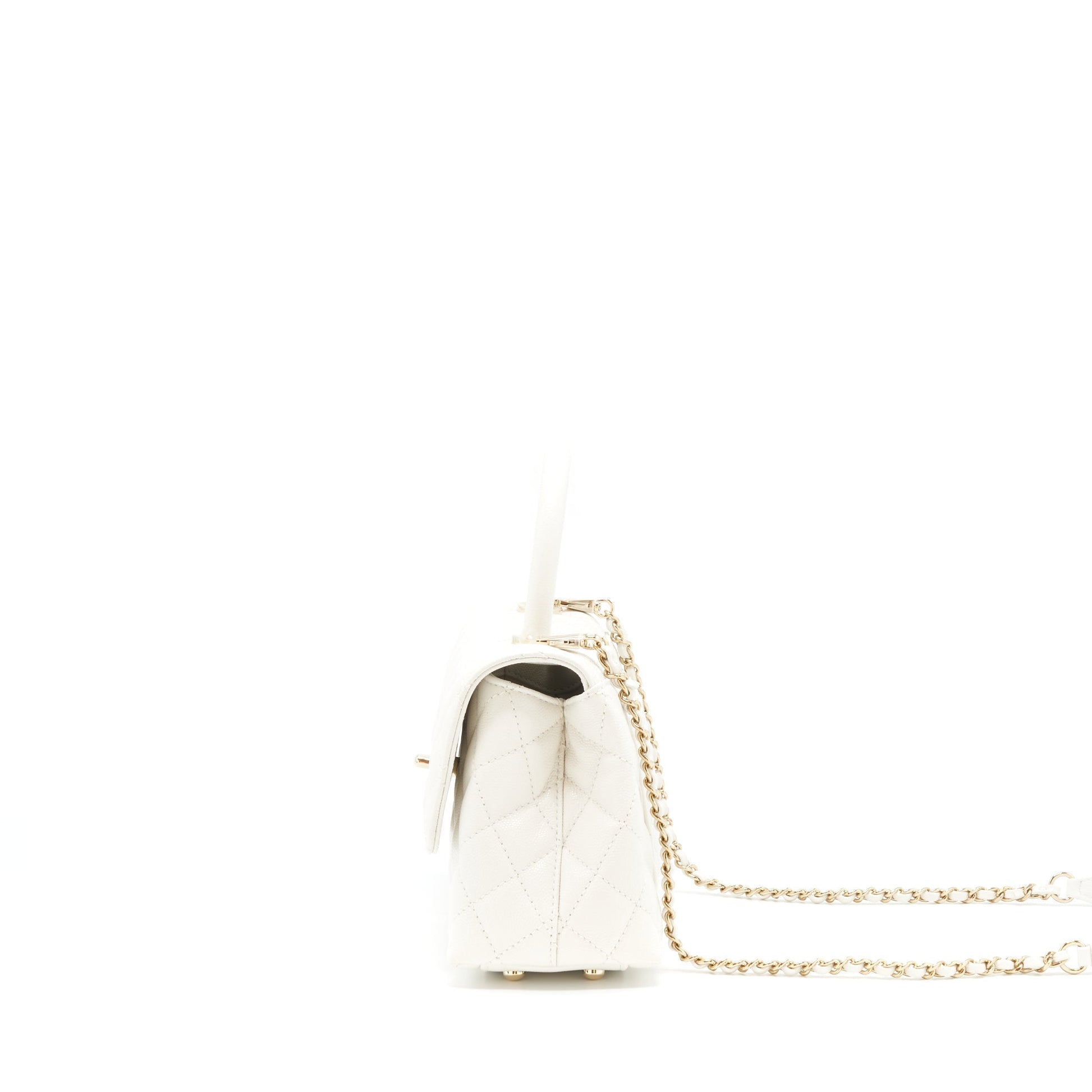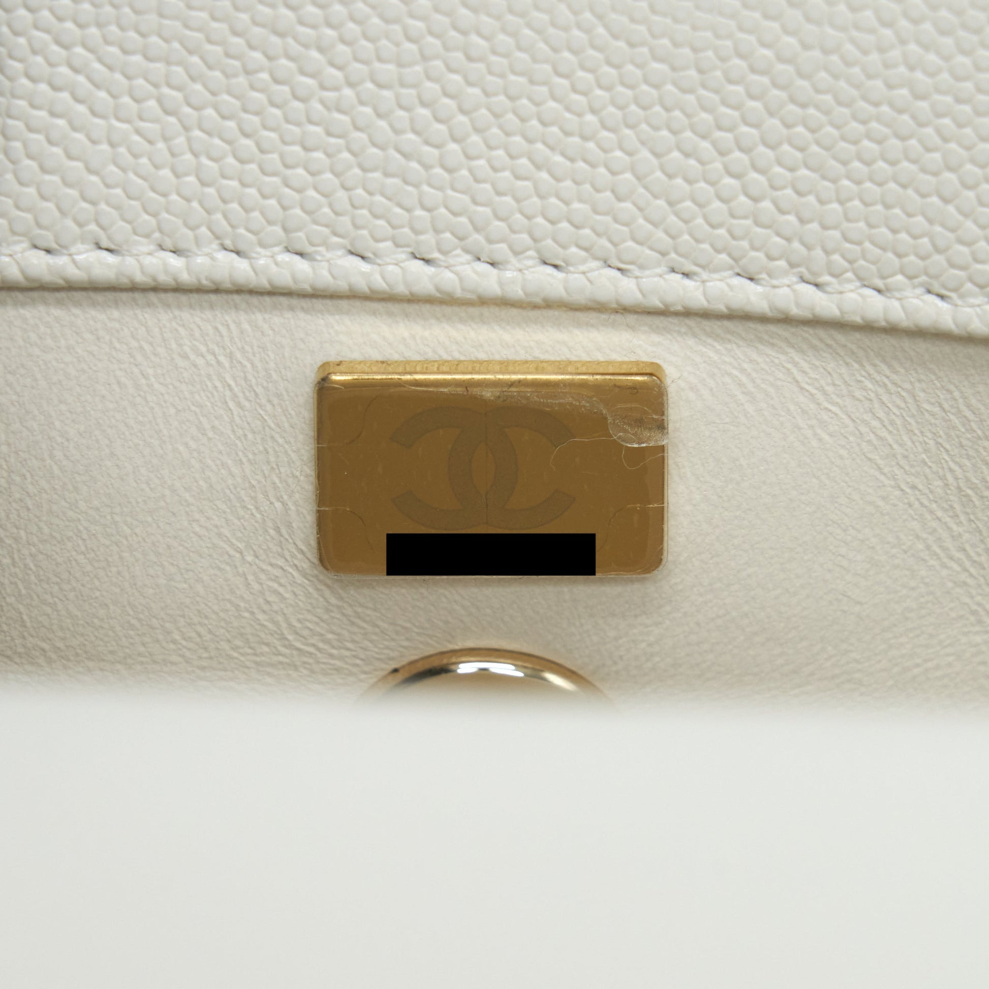 Chanel Small Coco Handle Caviar White LGHW (Microchip)