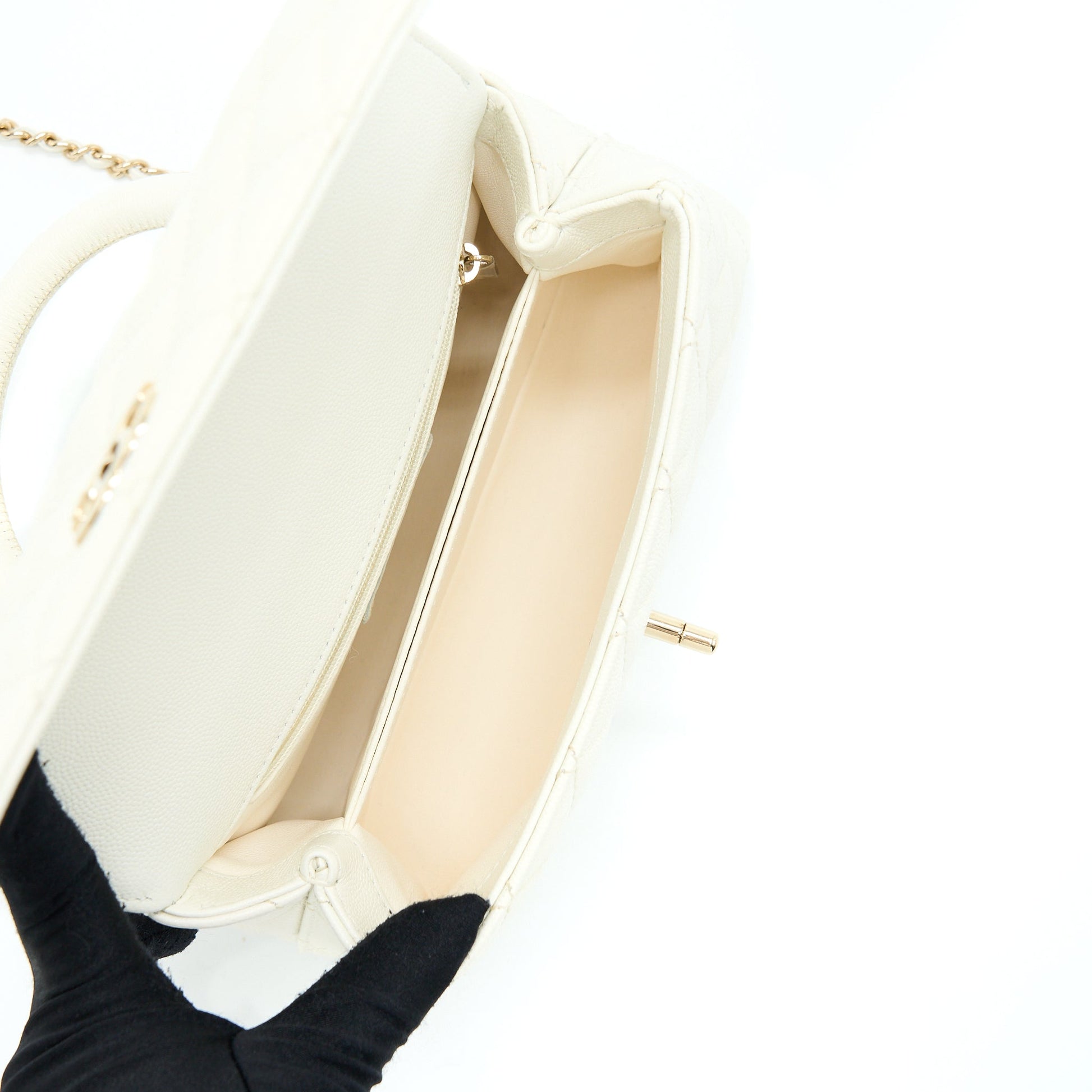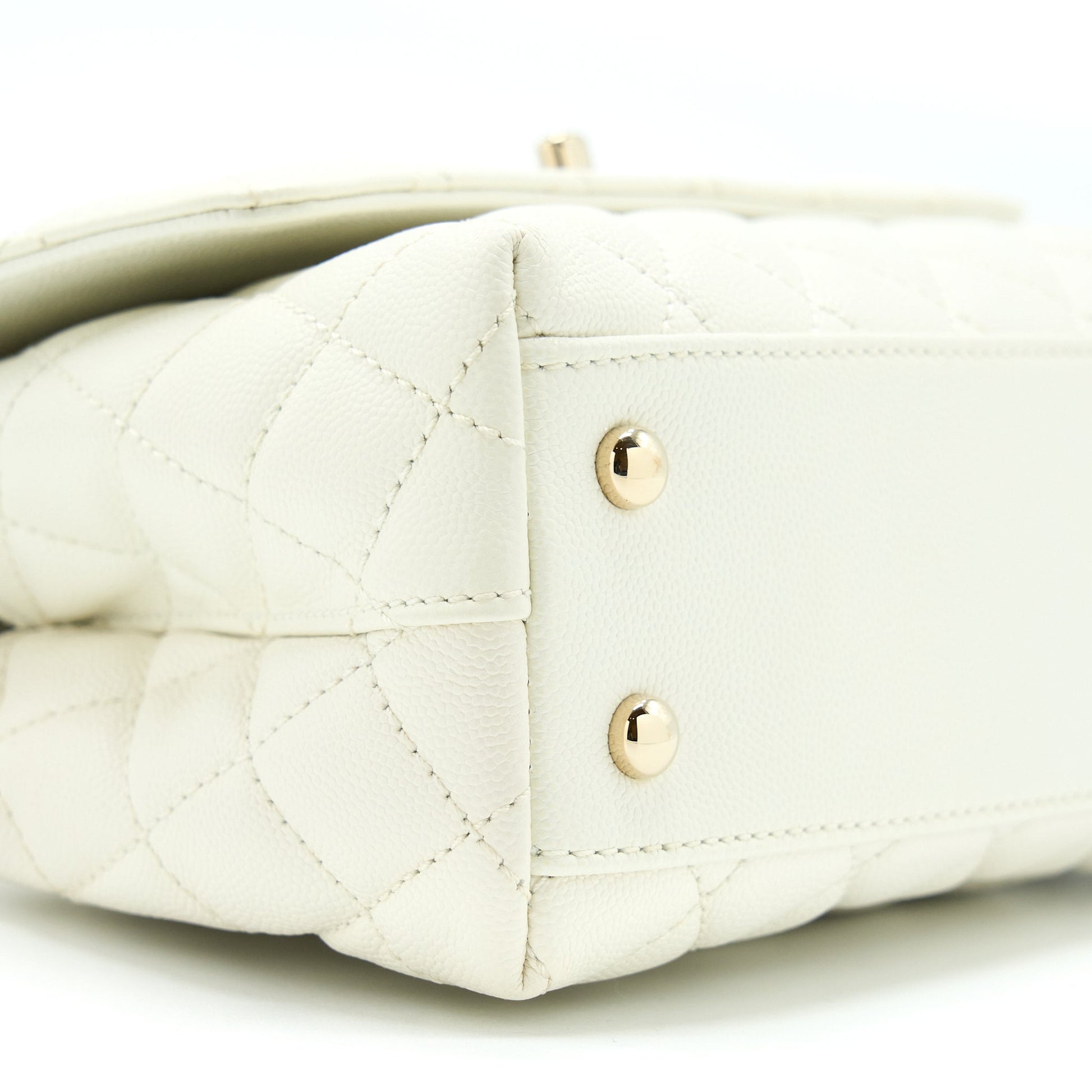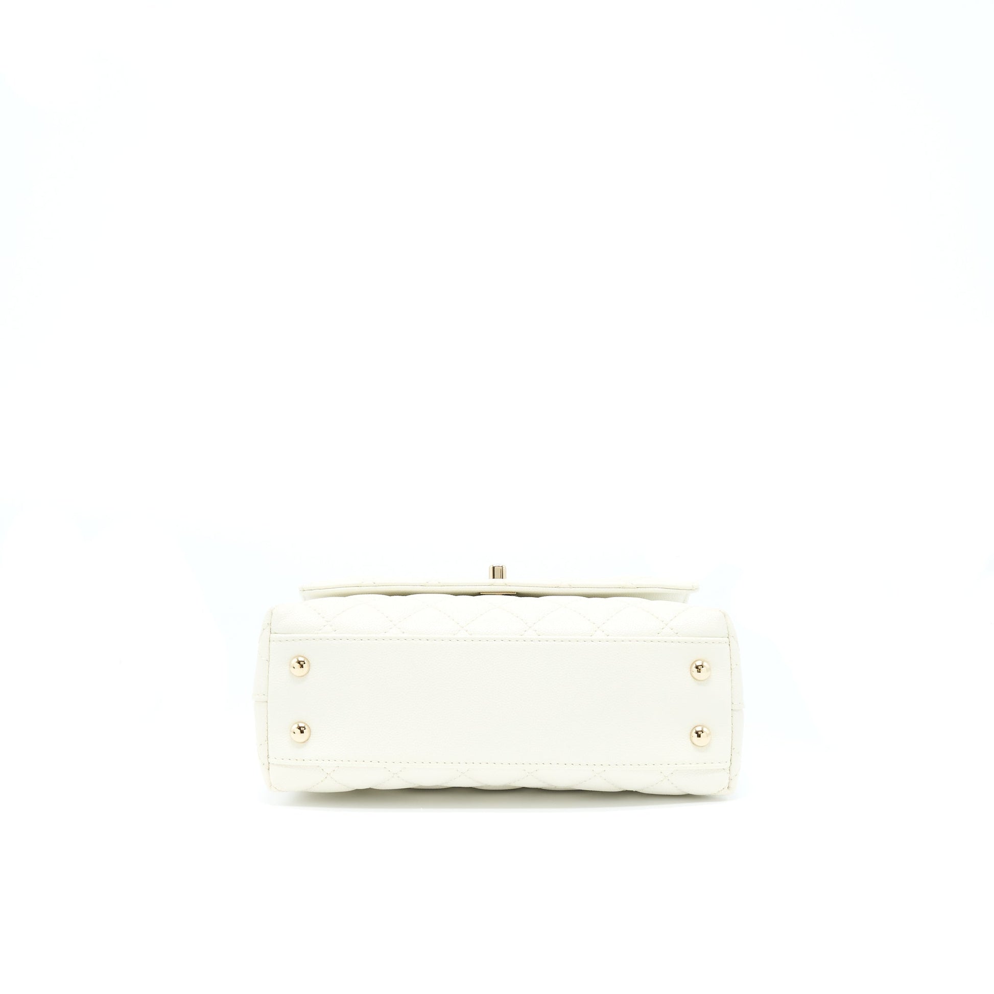 Chanel Small Coco Handle Caviar White LGHW (Microchip)