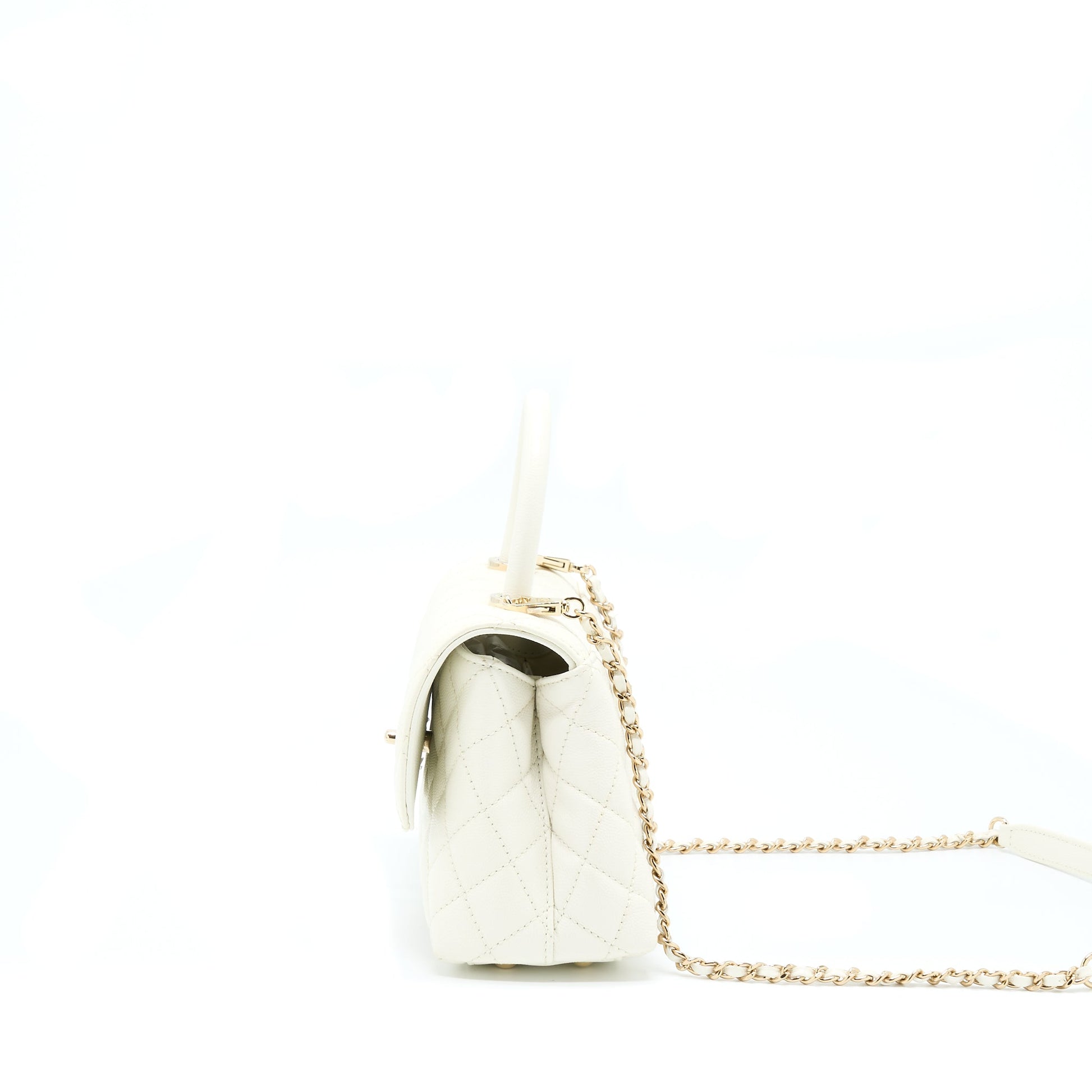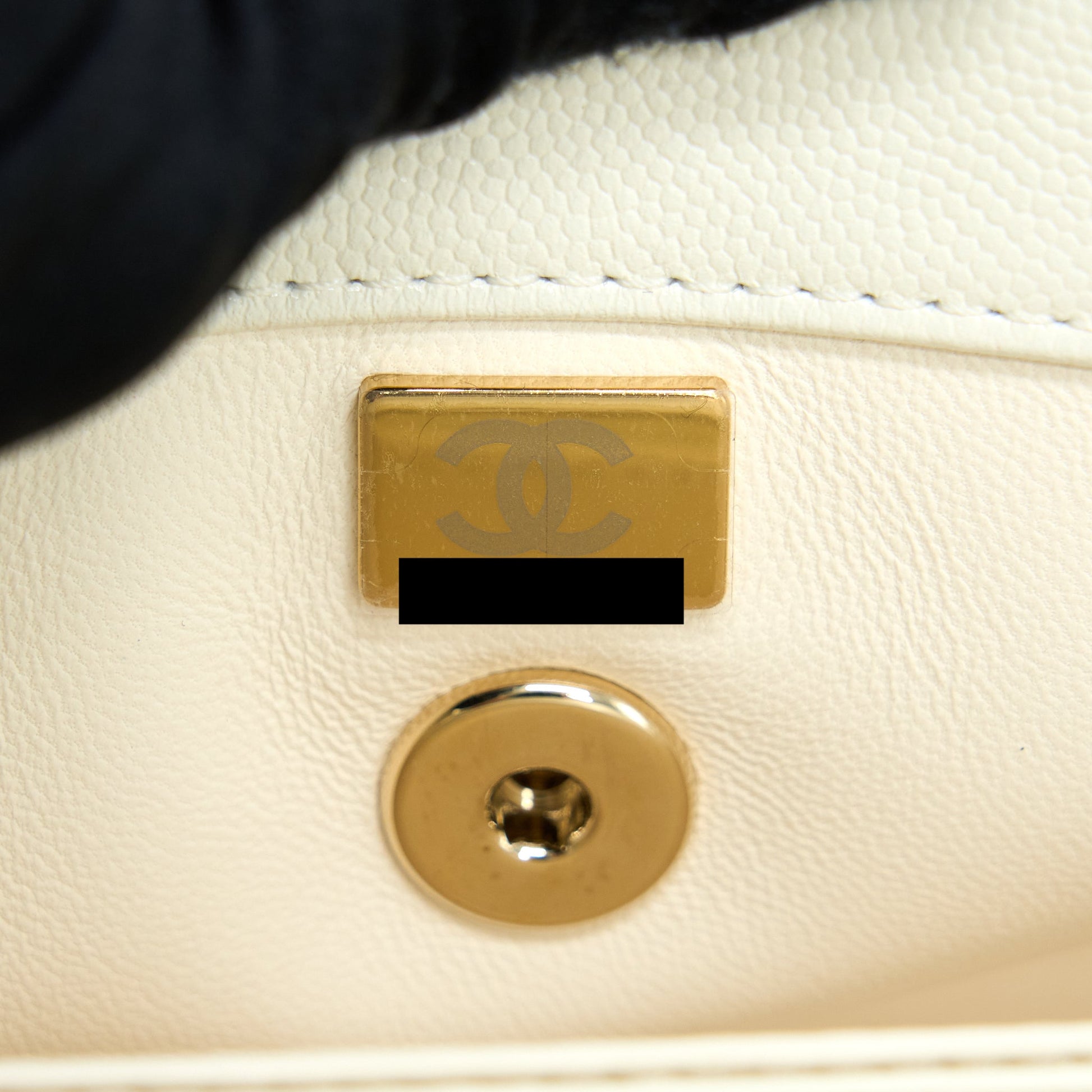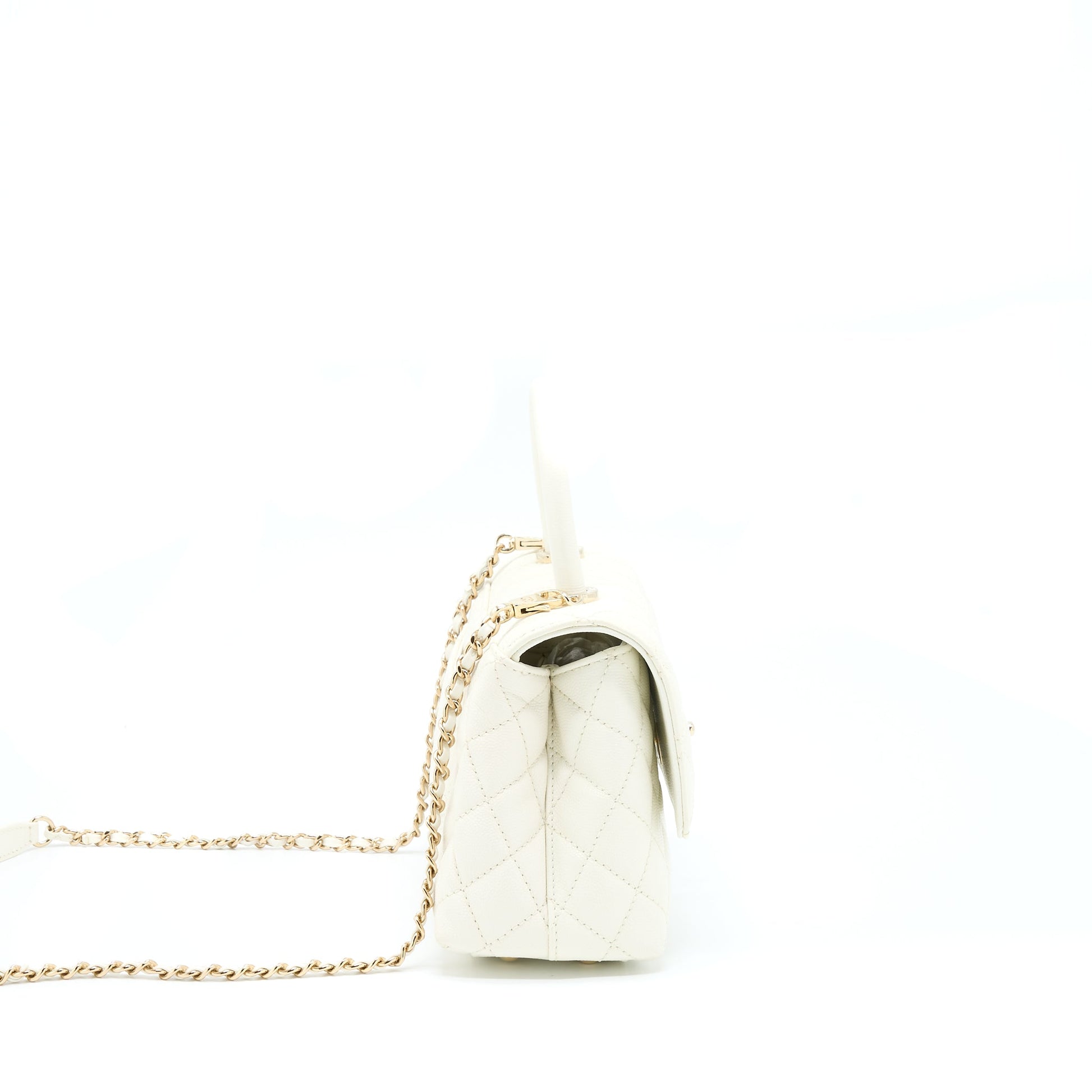 Chanel Small Coco Handle Caviar White LGHW (Microchip)