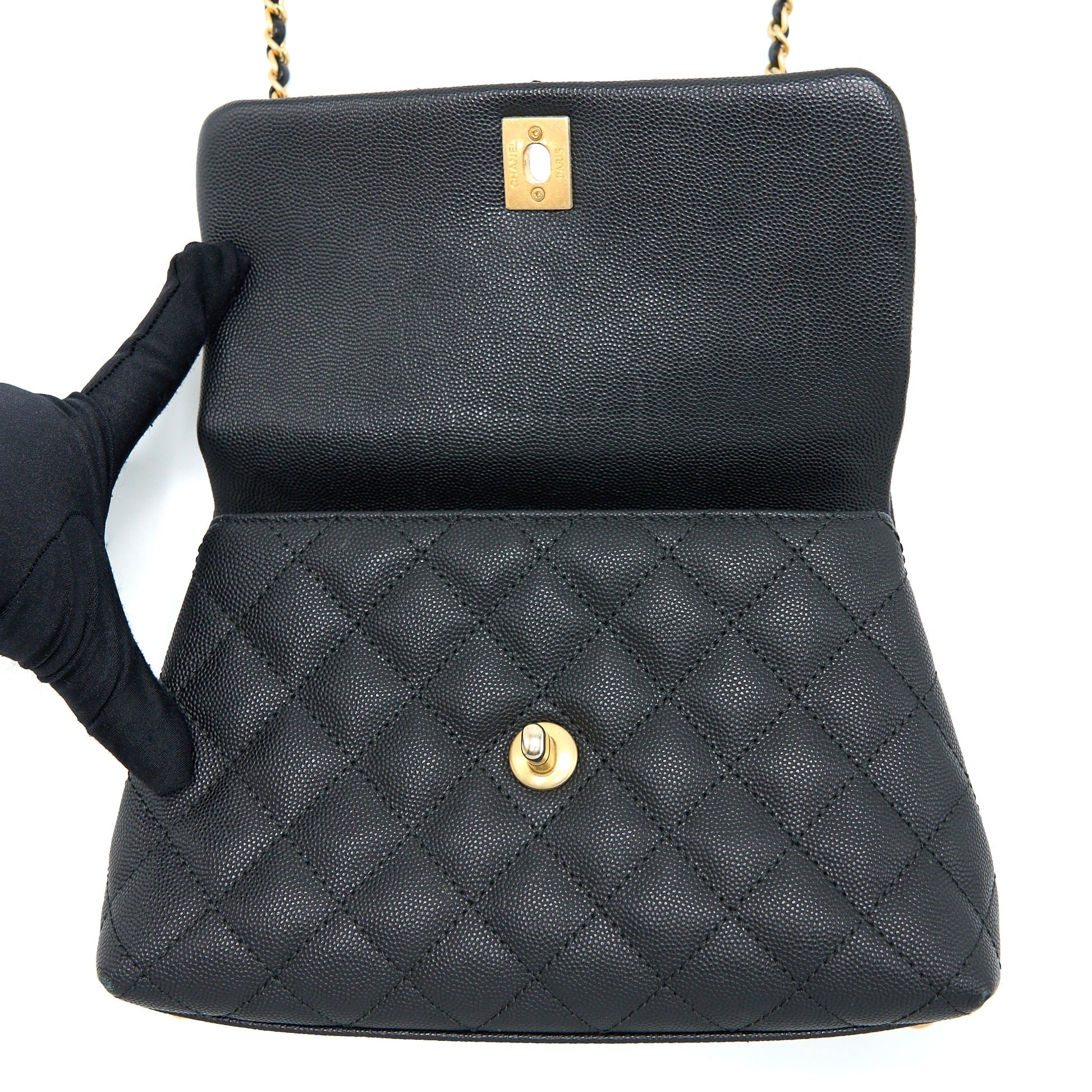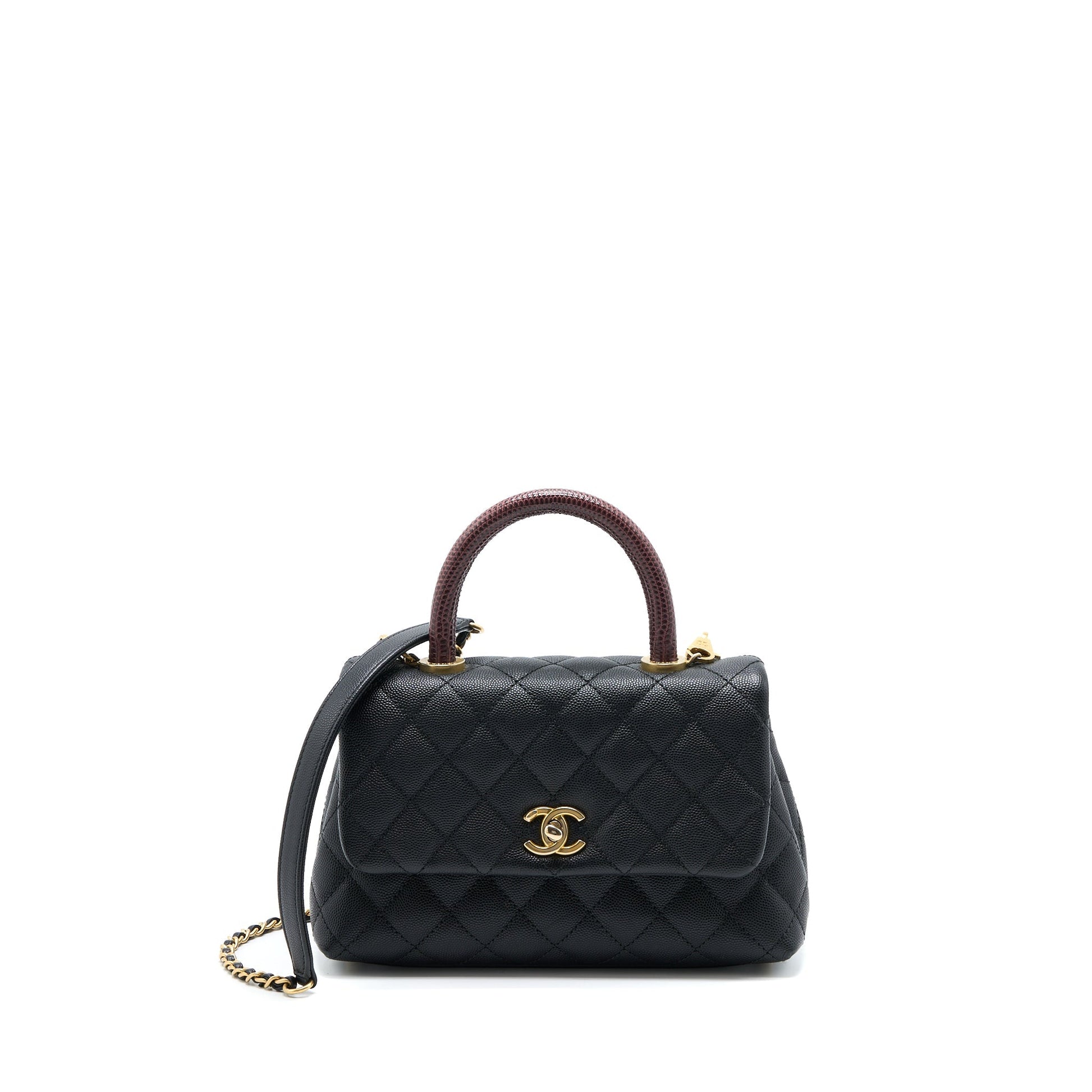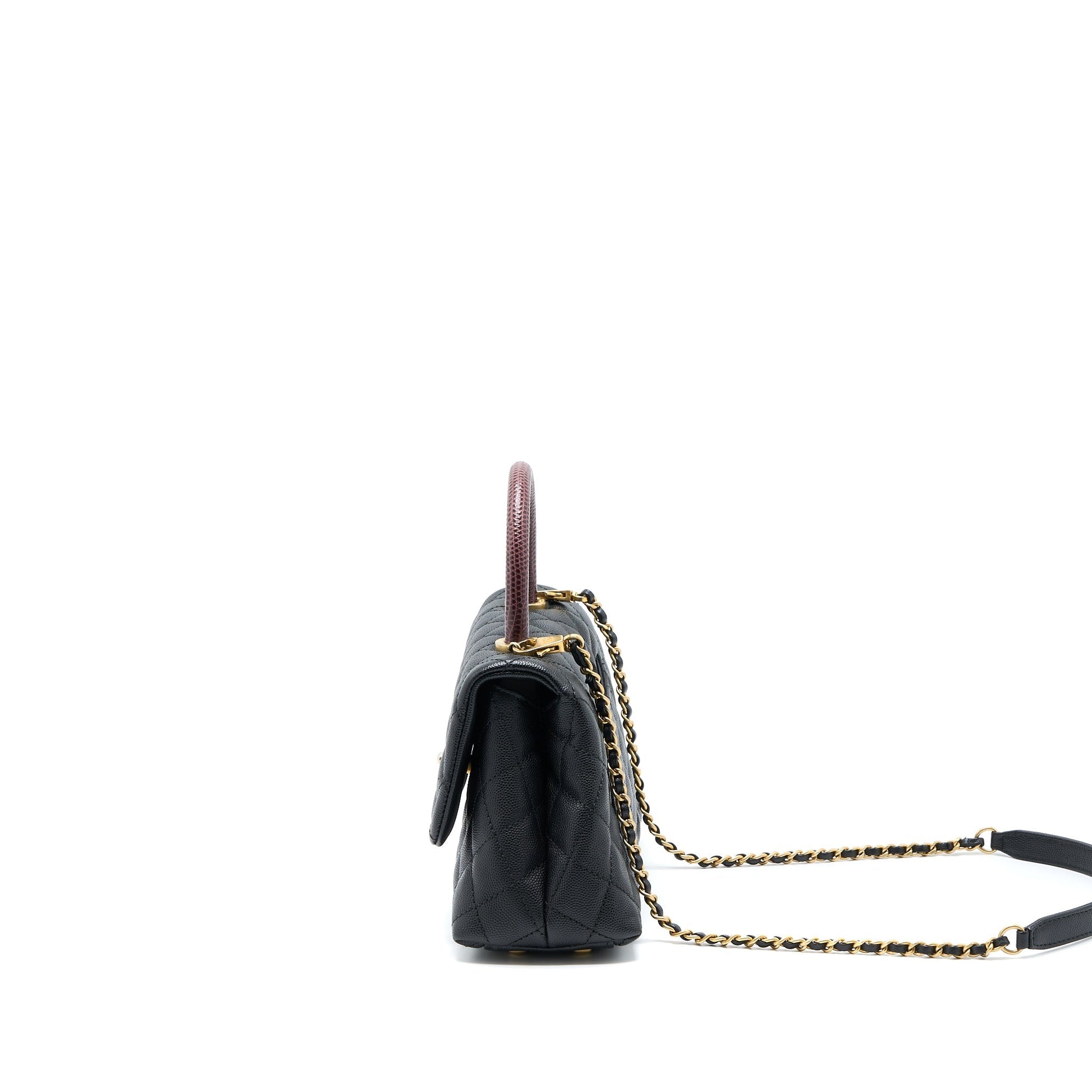 Chanel Small Coco Handle Caviar With Lizard Handle Black GHW