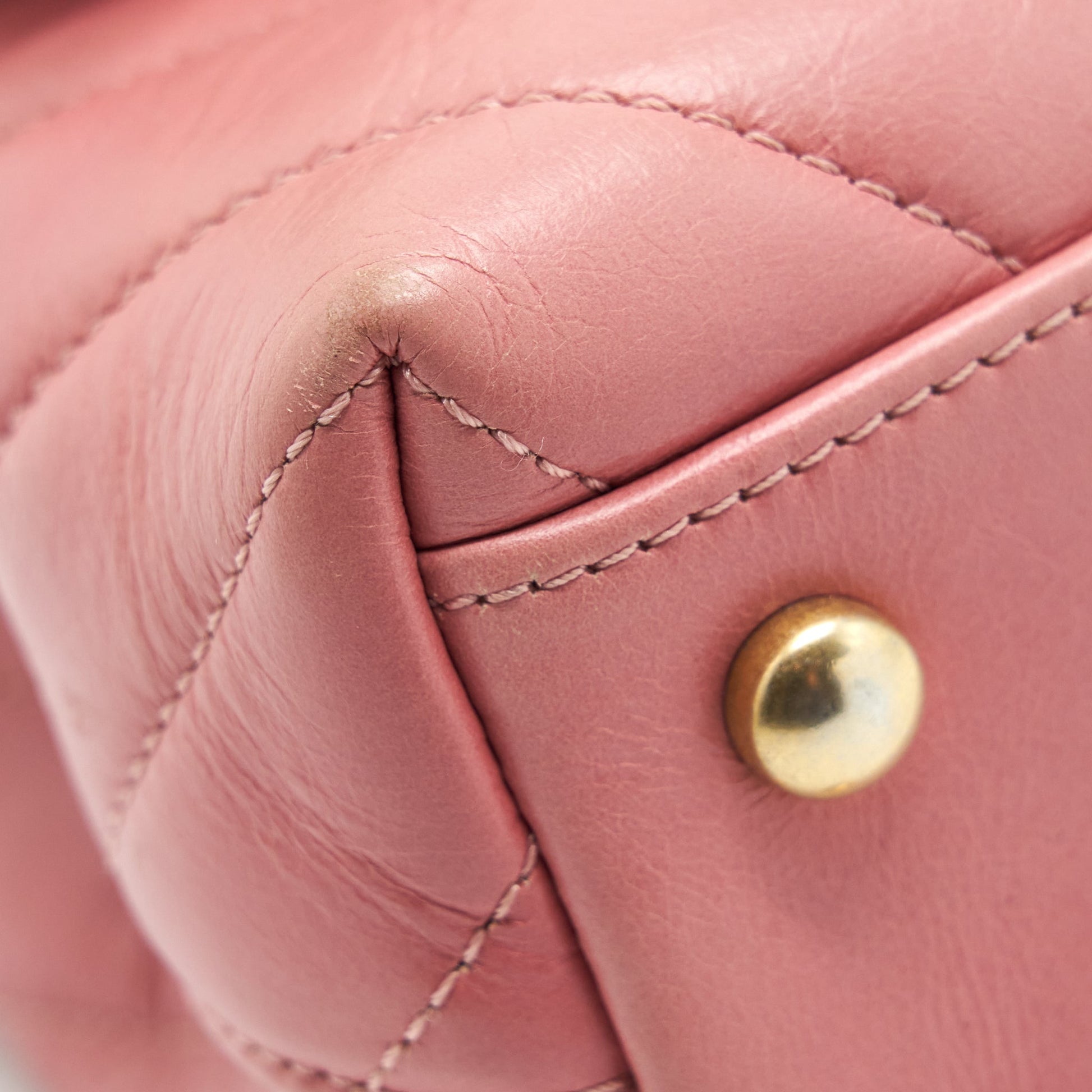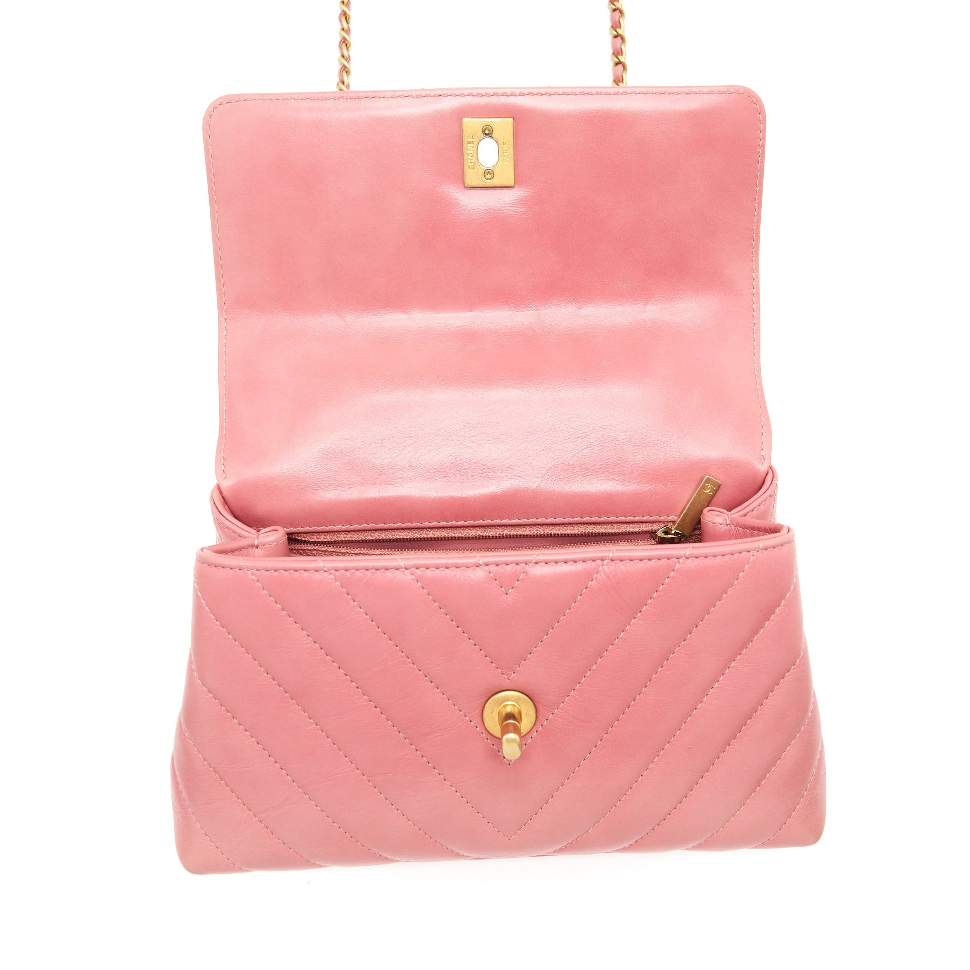 Chanel Small Coco Handle Chevron Calfskin With Lizard Handle Pink GHW