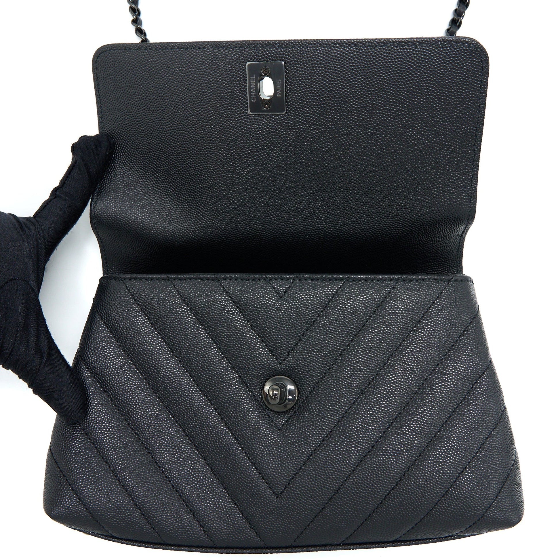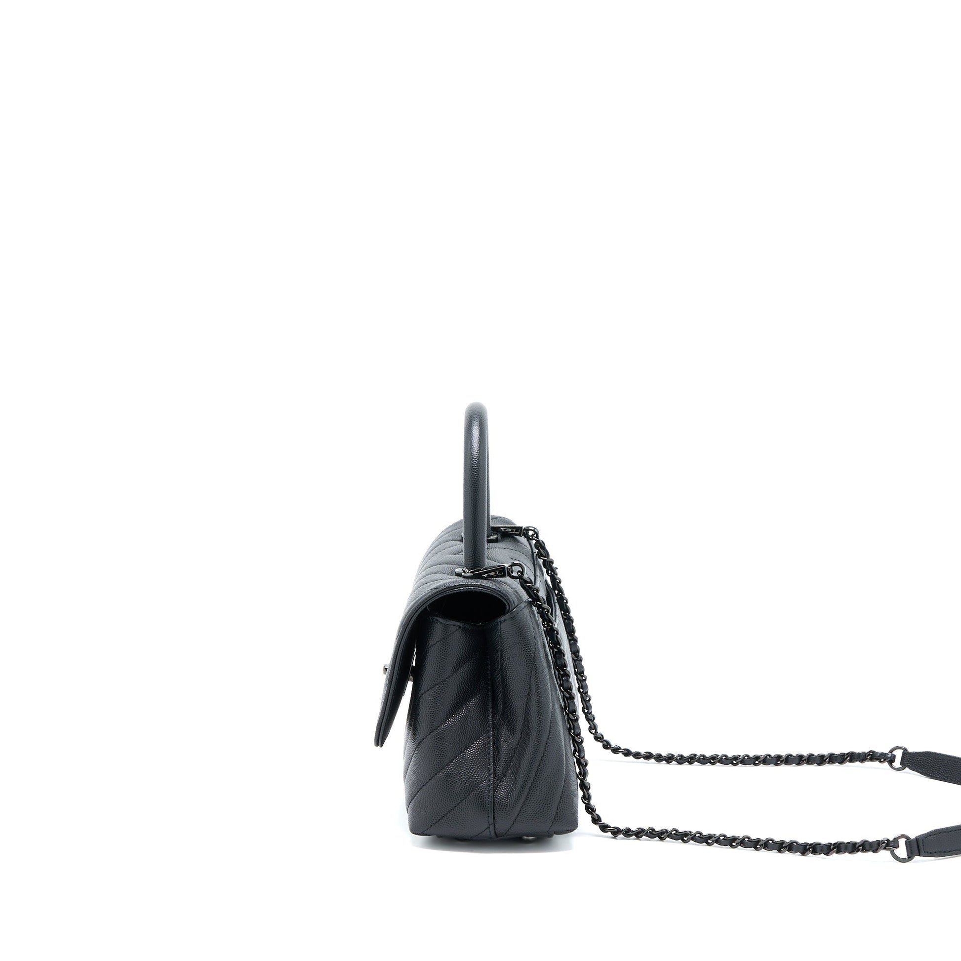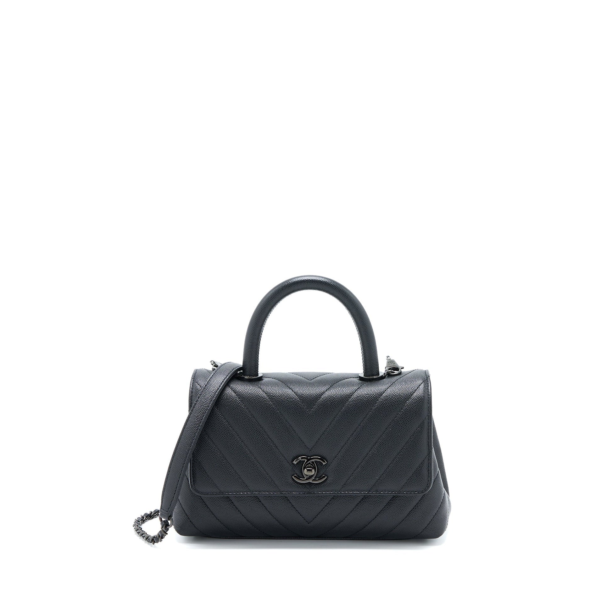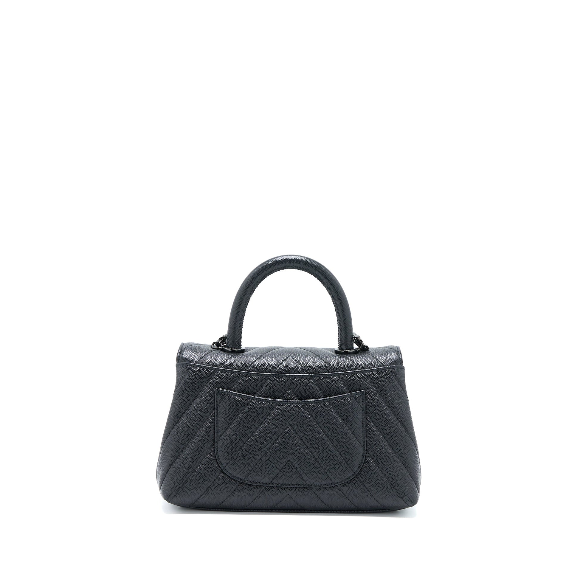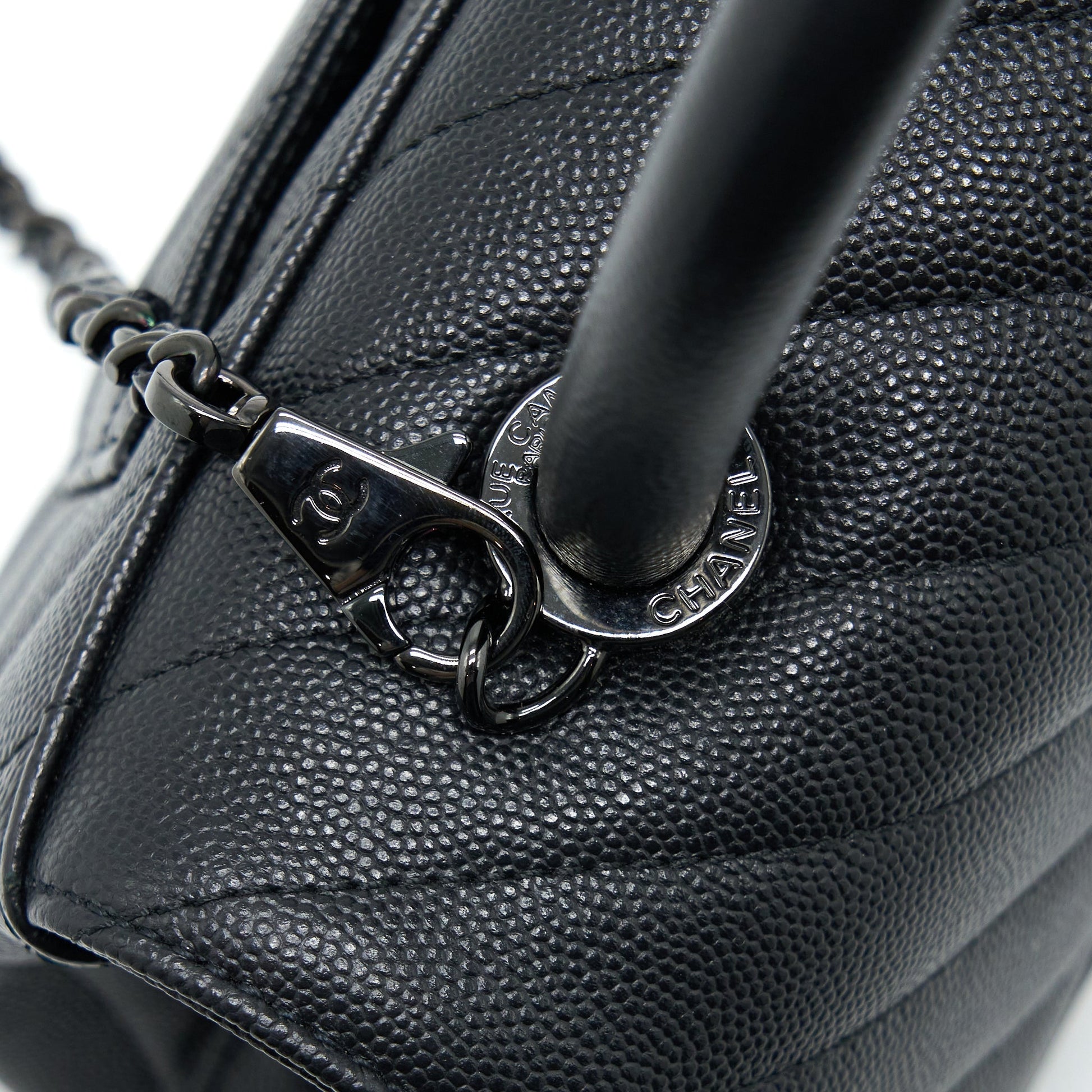 Chanel Small Coco Handle Chevron Caviar So Black with Black Hardware