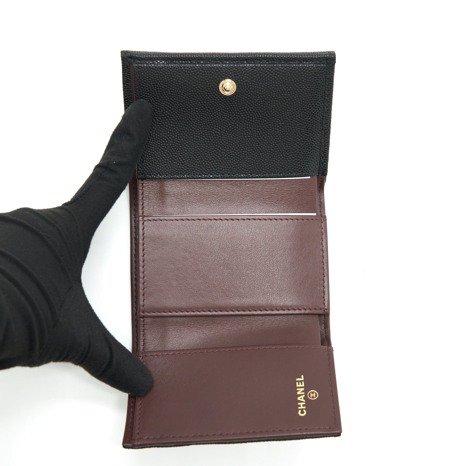 Chanel small compact wallet caviar black LGHW