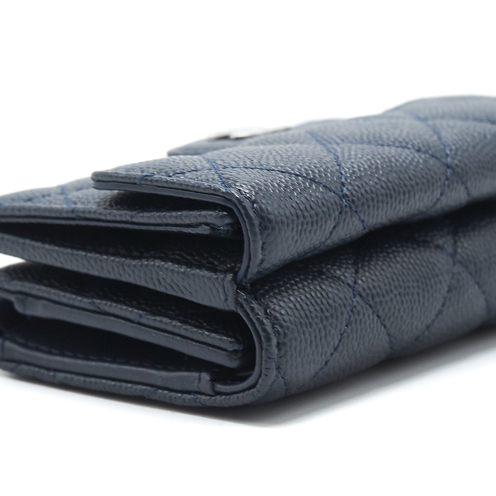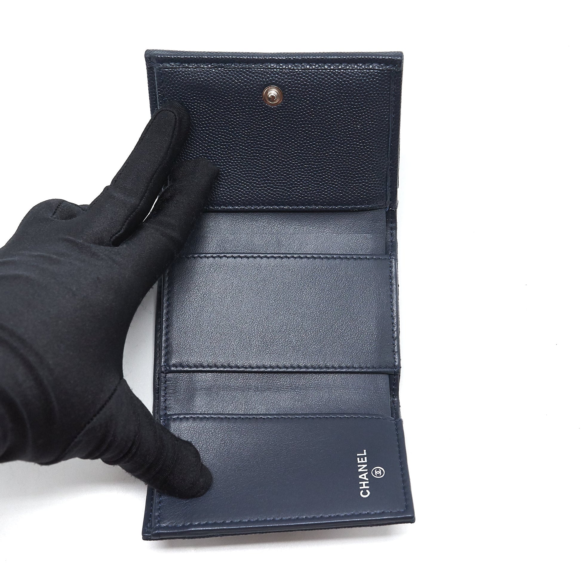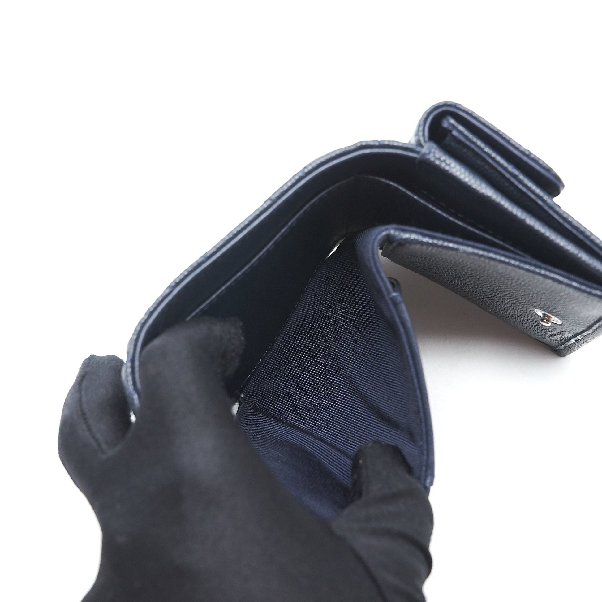 Chanel Small Compact Wallet Caviar leather indigo SHW
