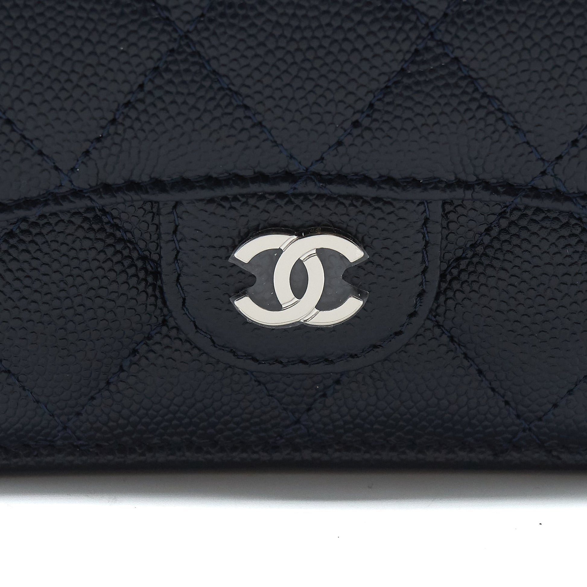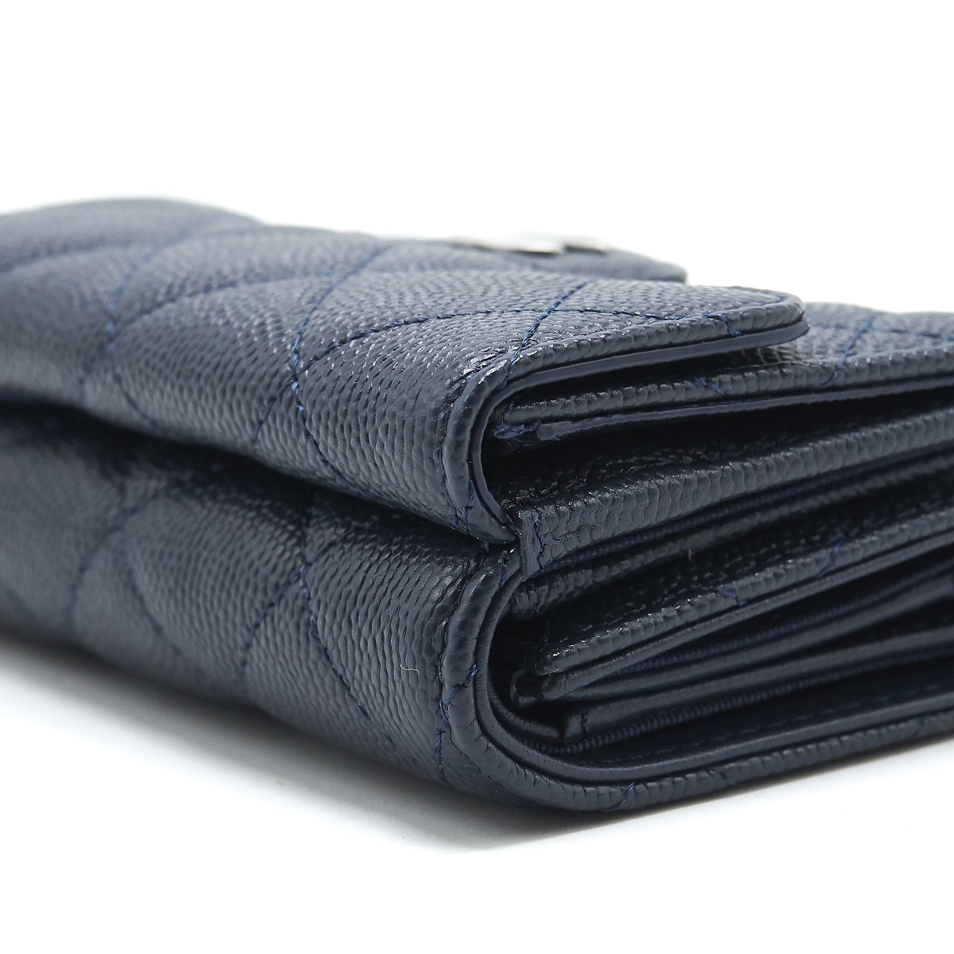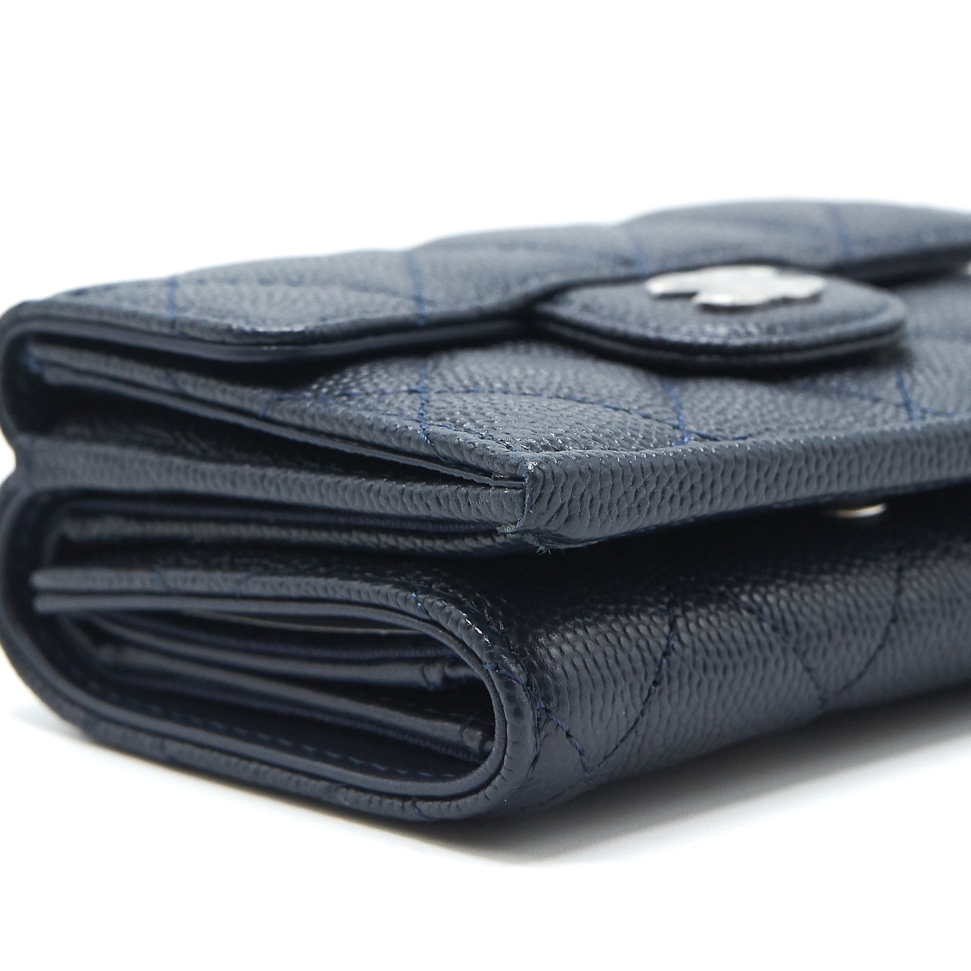 Chanel Small Compact Wallet Caviar leather indigo SHW