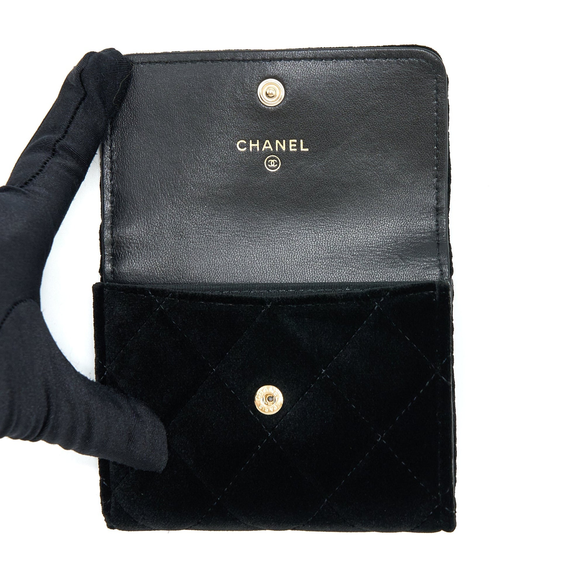 Chanel Small Flap Wallet Velvet Black LGHW