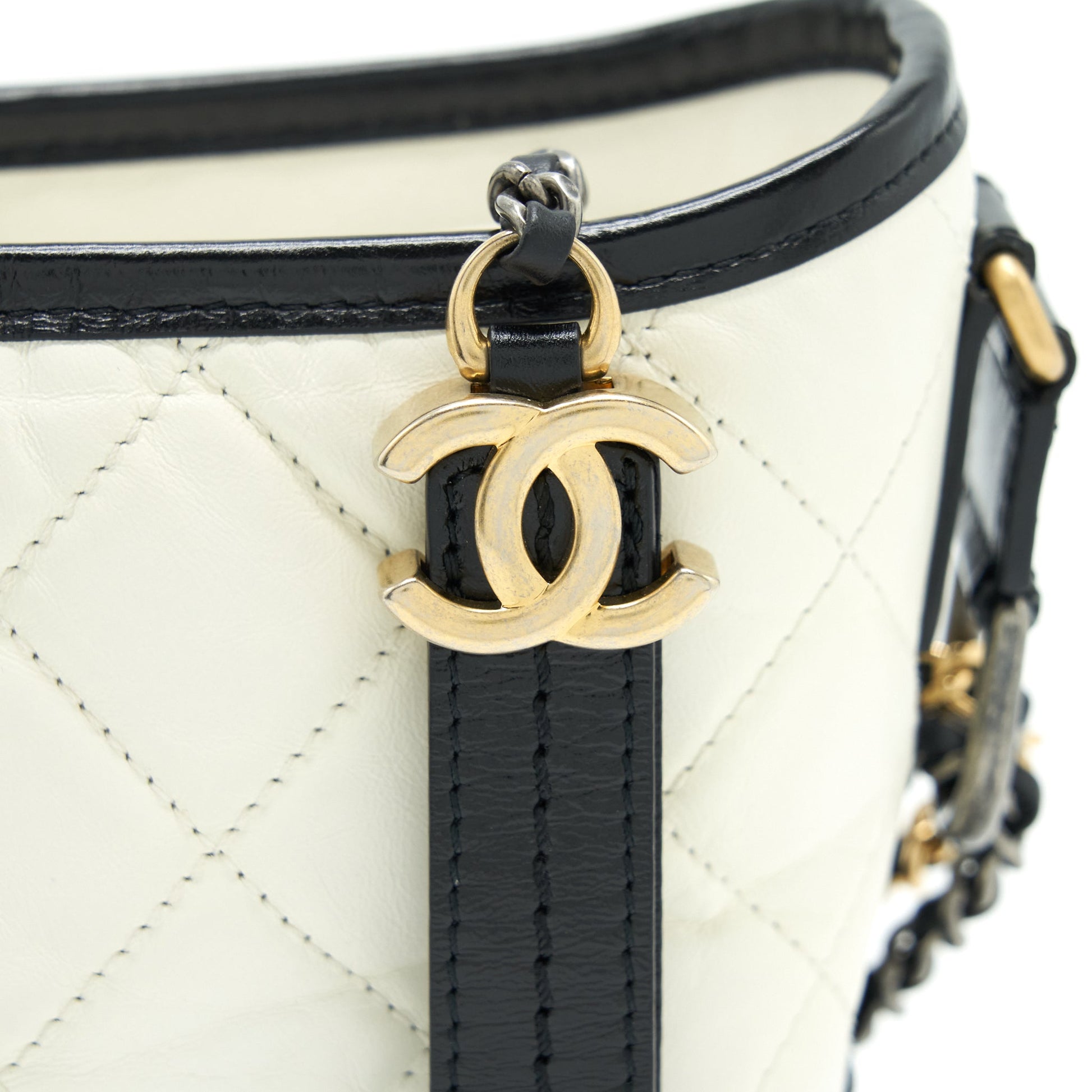 Chanel small Gabrielle hobo bag calfskin white/ black with multicolour hardware