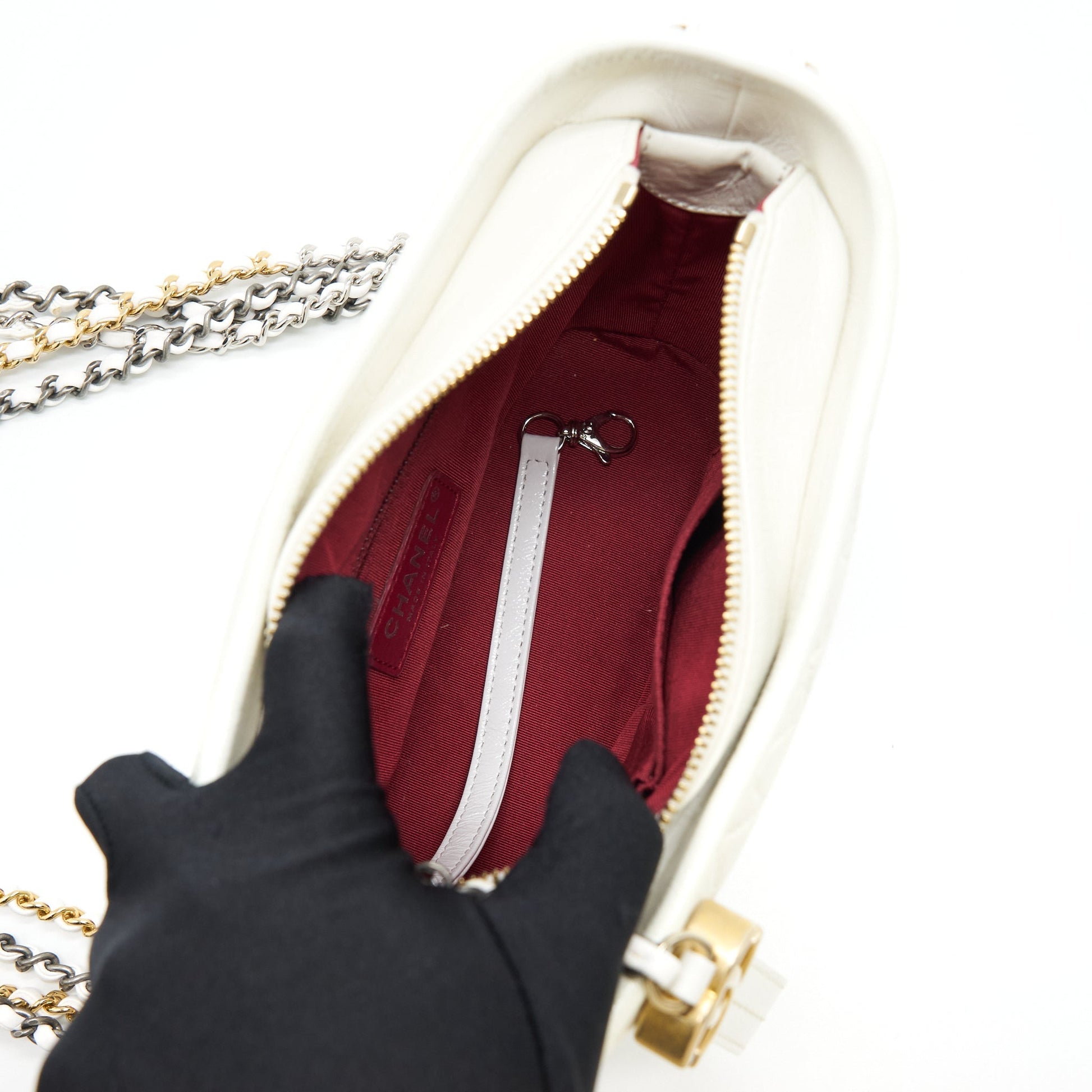 Chanel Small Gabrielle Hobo Bag Calfskin White Multicolour Hardware