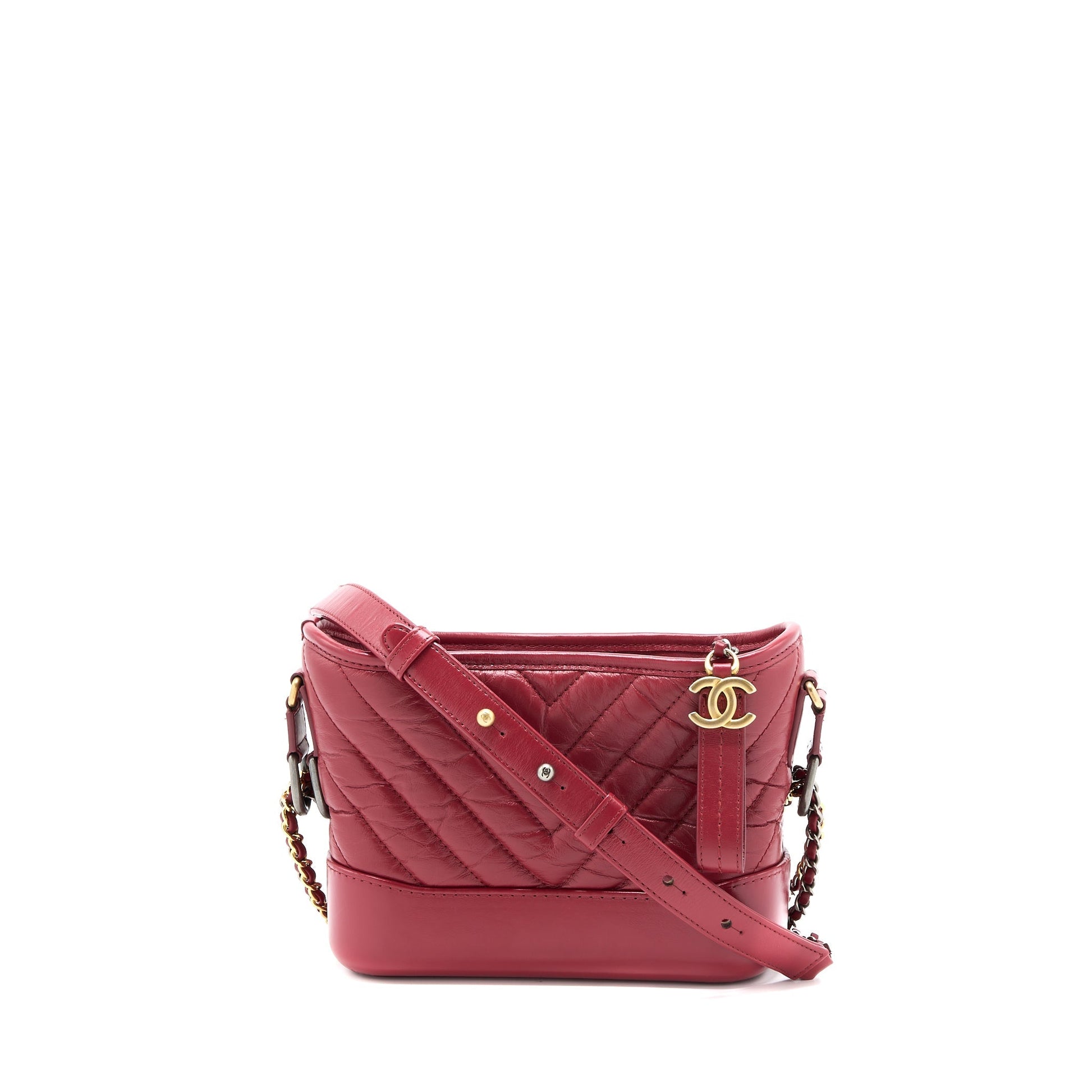 Chanel Small Gabrielle Hobo Bag Chevron Calfskin Red Multicolour Hardware