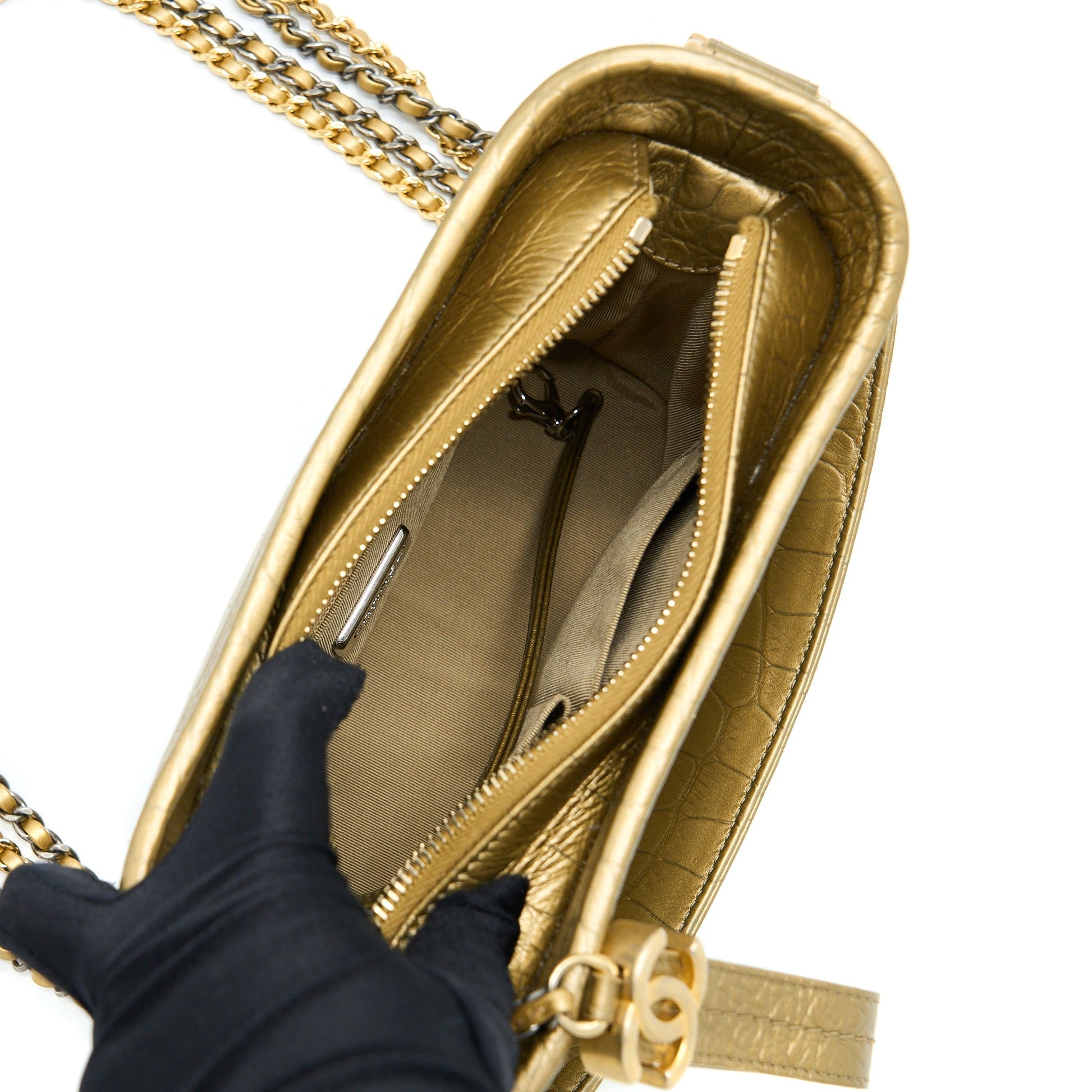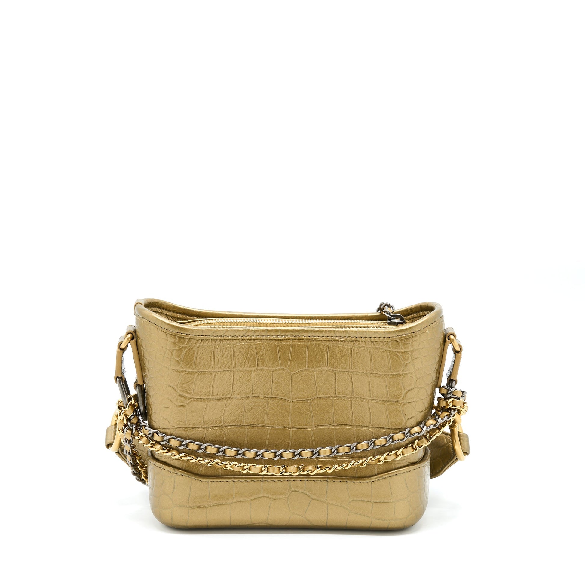 Chanel Small Gabrielle Hobo Bag Crocodile Embossed Calfskin Gold Multicolour Hardware