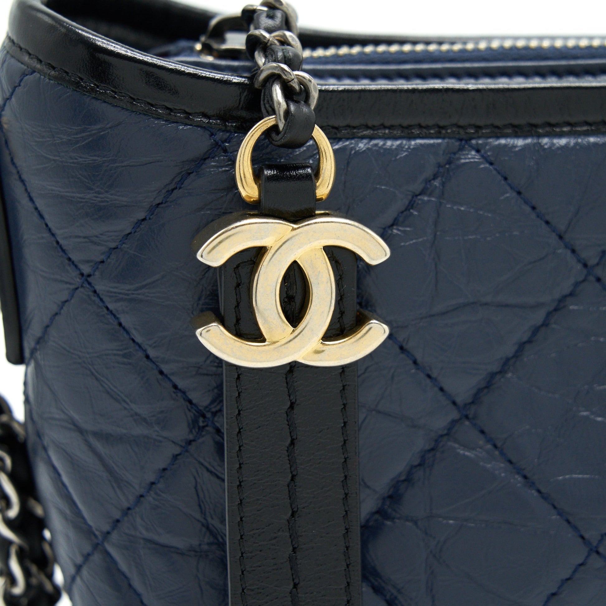 Chanel Small Gabrielle Hobo Bag Black/ Navy GHW