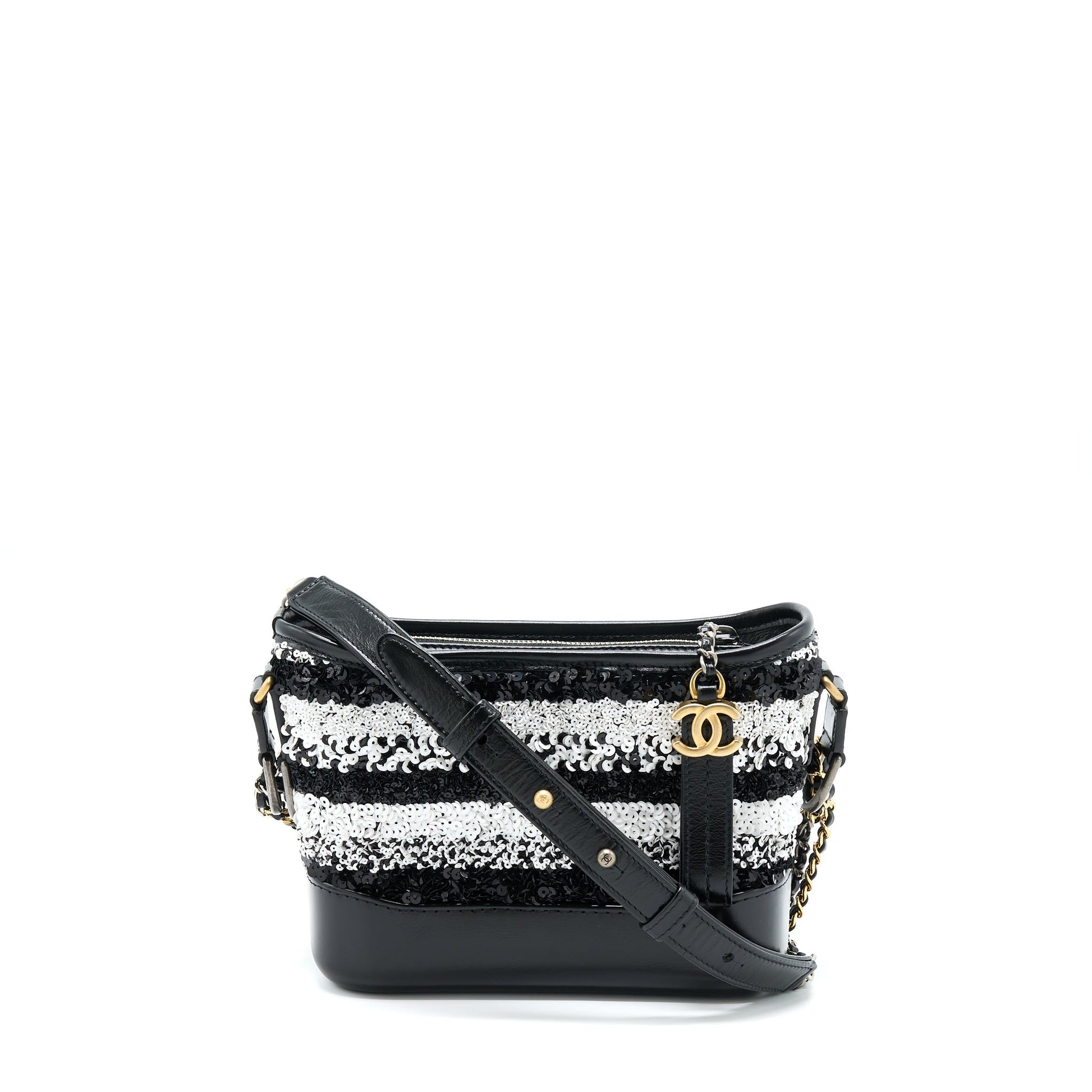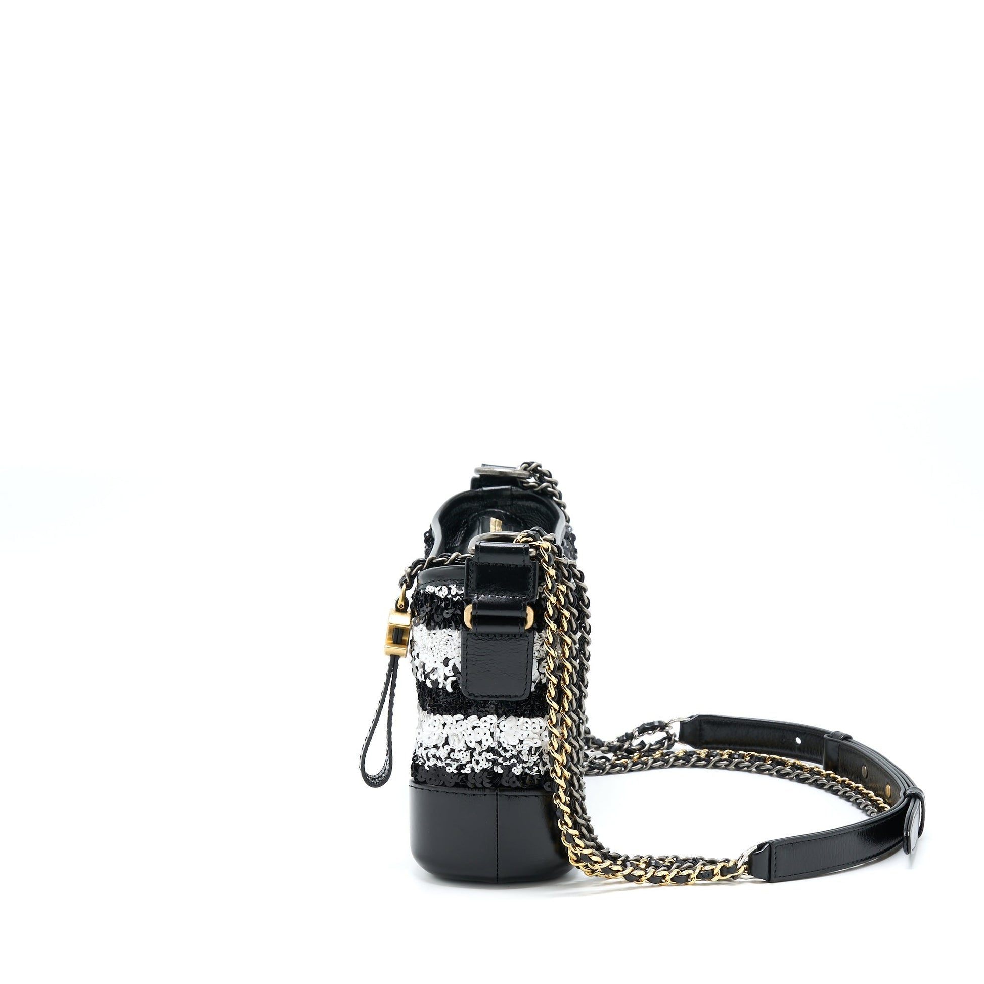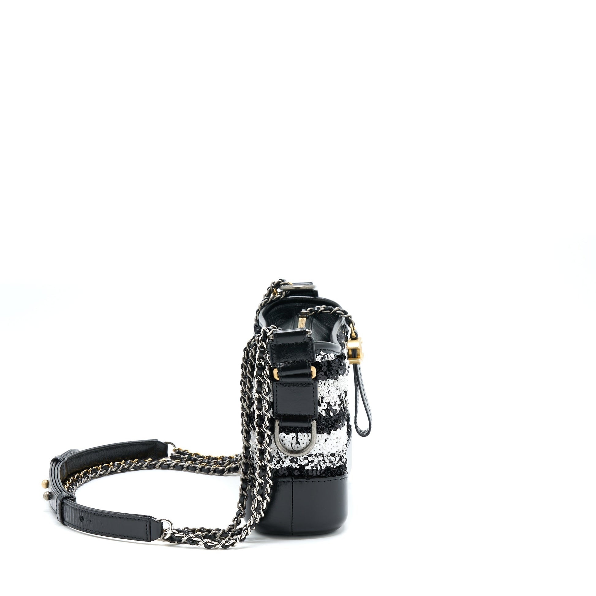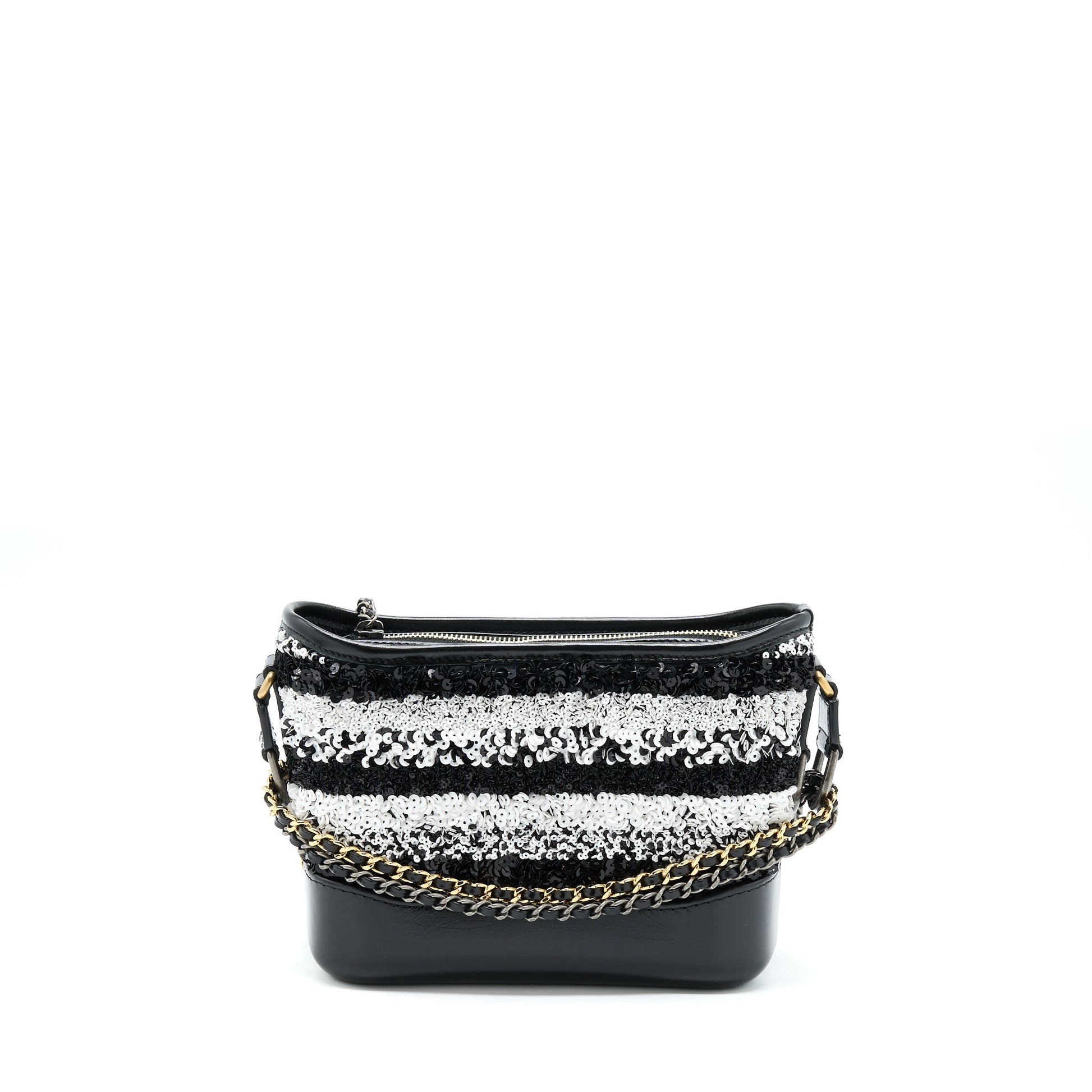 Chanel Small Gabrielle Hobo Bag Sequins Black/White With Multicolour Hardware