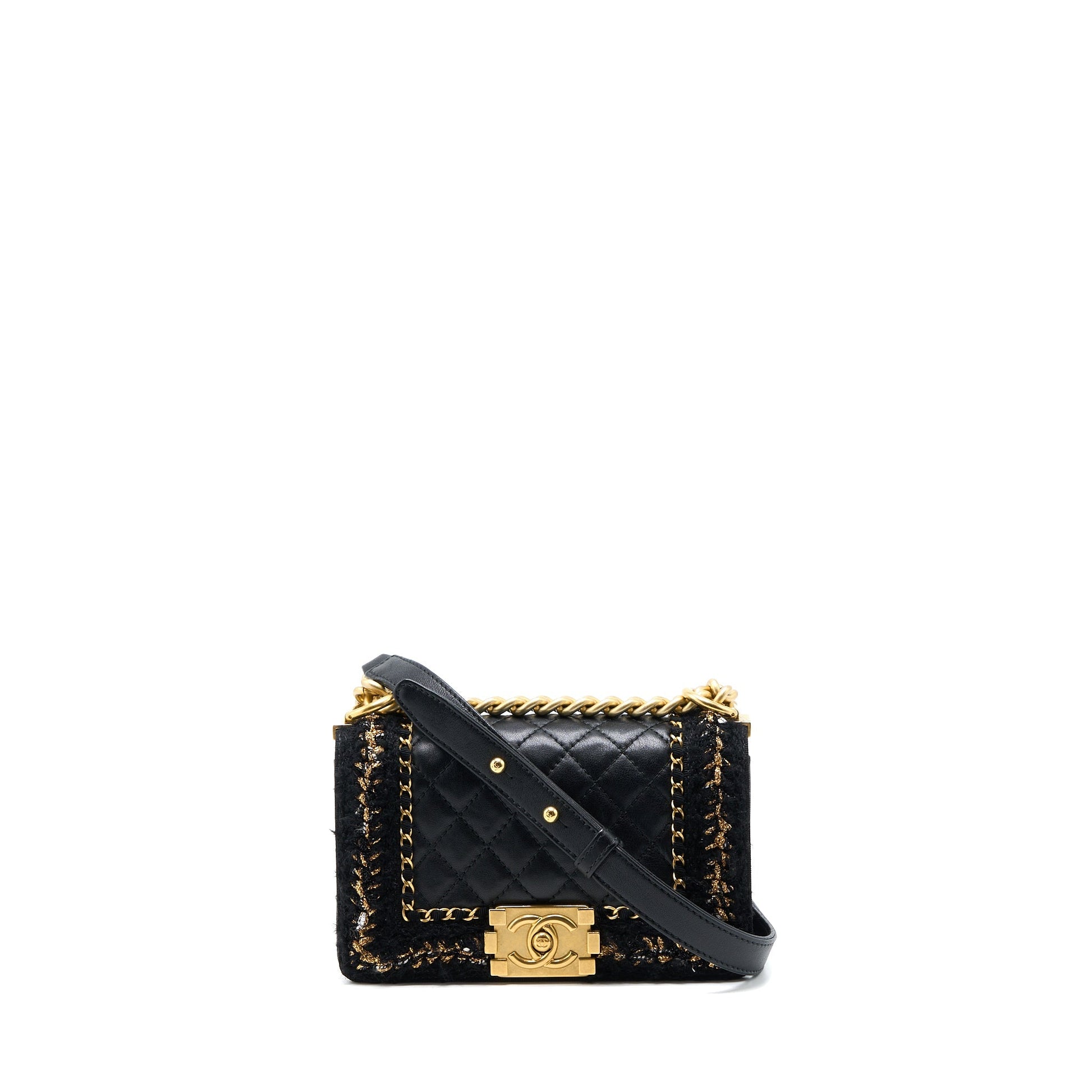 Chanel Small Jacket Boy Bag Lambskin/Tweed Black GHW