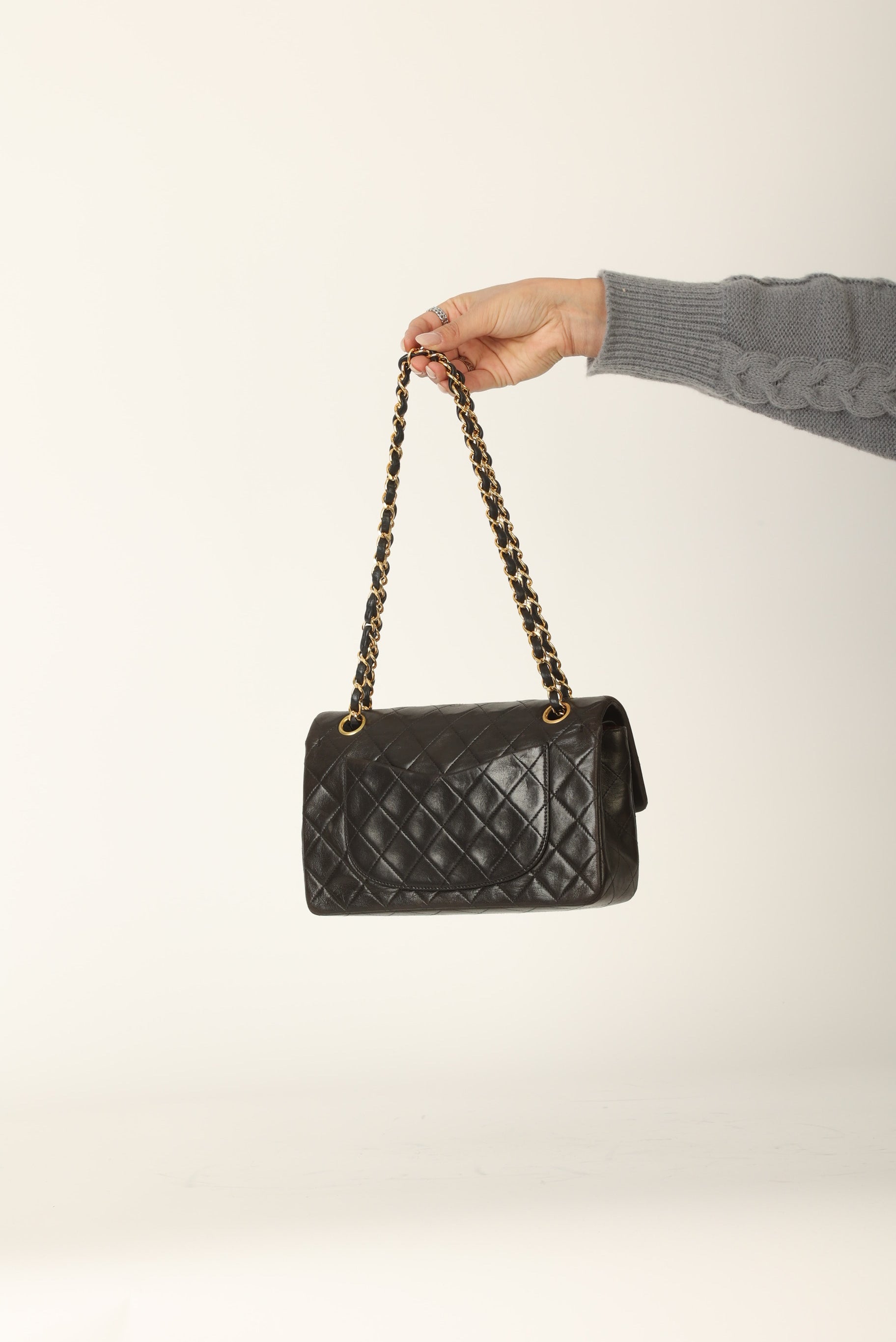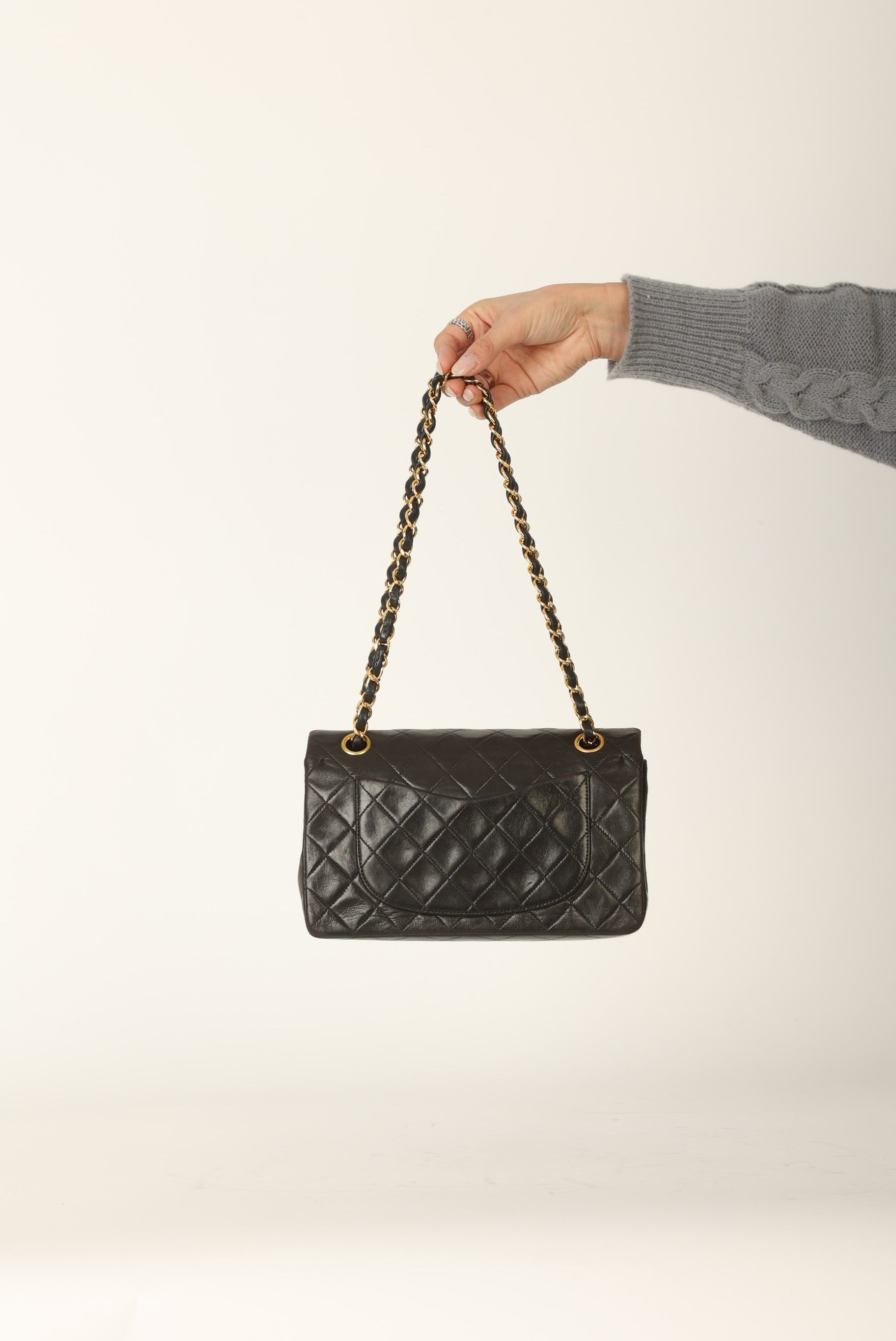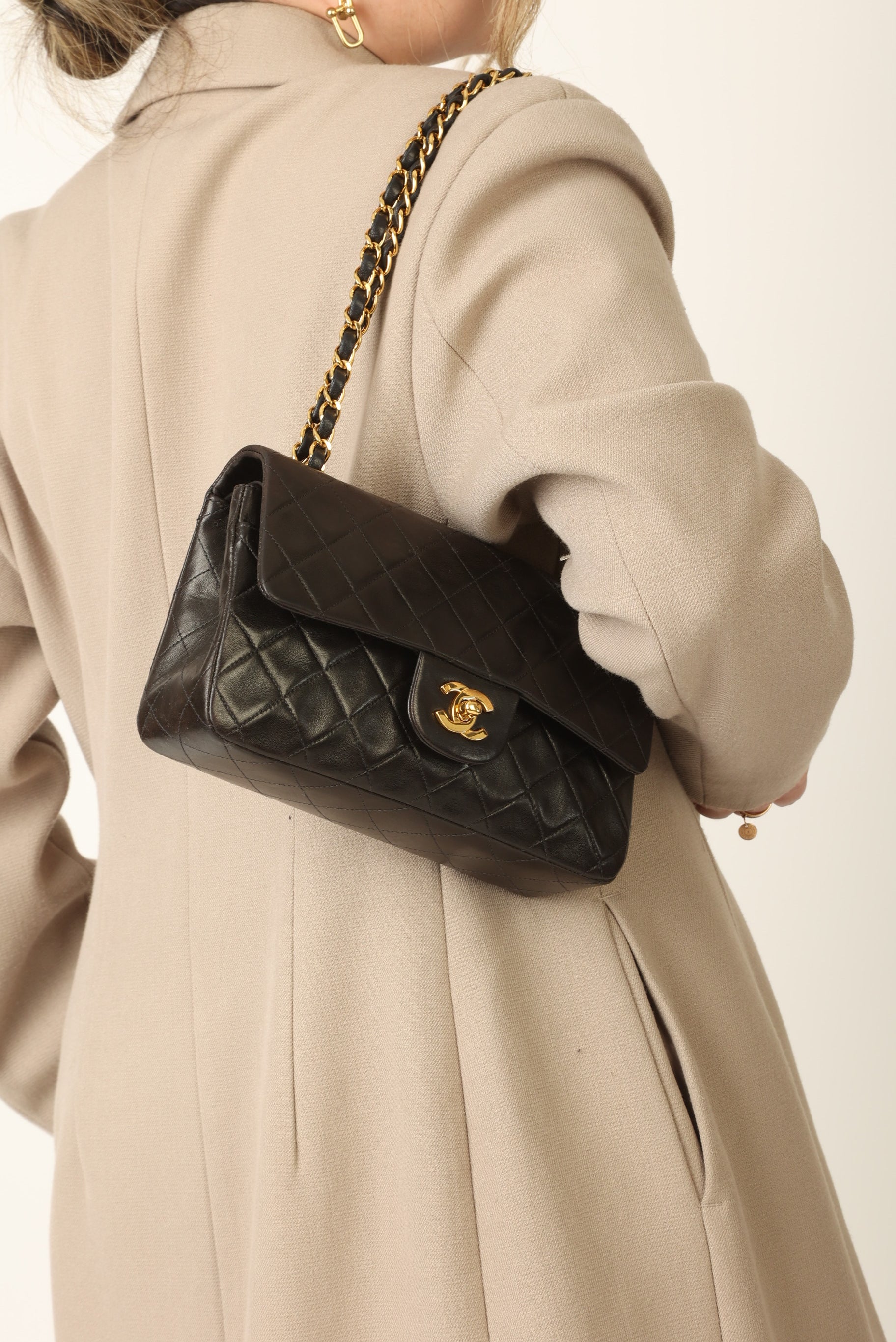 Dropping in the shop is a stunning, soft classic Chanel Lambskin Small Double Flap in black with gold hardware! An New investment piece that?can be loved for years to come. Vintage Chanel crafted in the 90s = 24k hardware and soft buttery lambskin. Don't miss out on this gorgeous find! Can be as a long or short shoulder bag. You can fit your phone, keys wallet, and a few other smaller essentials.?