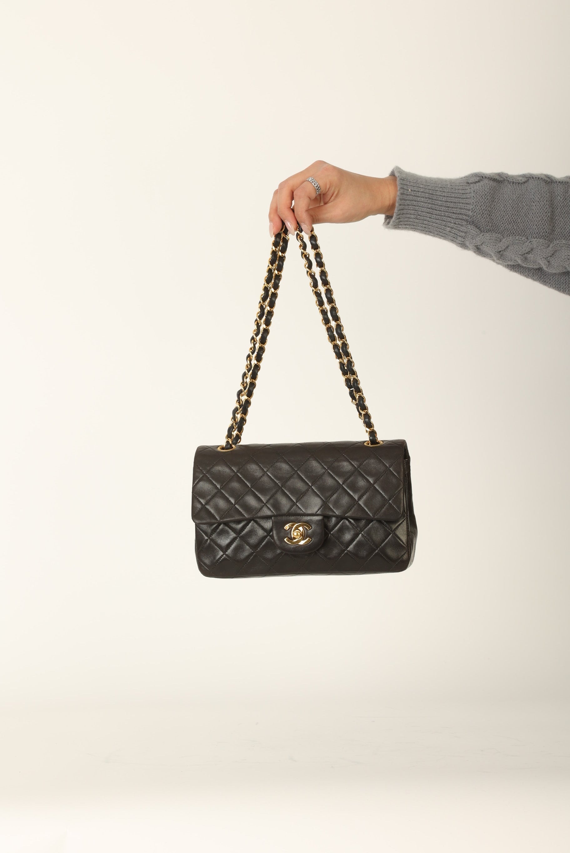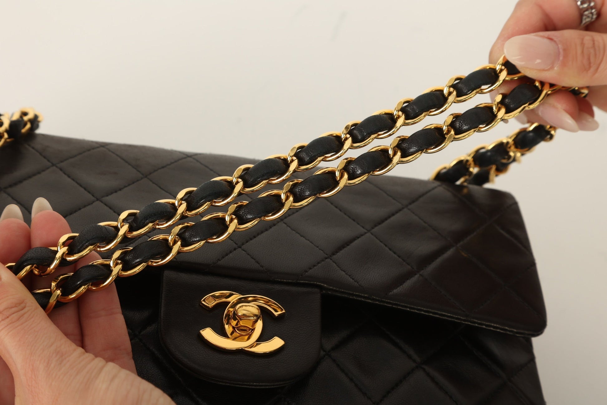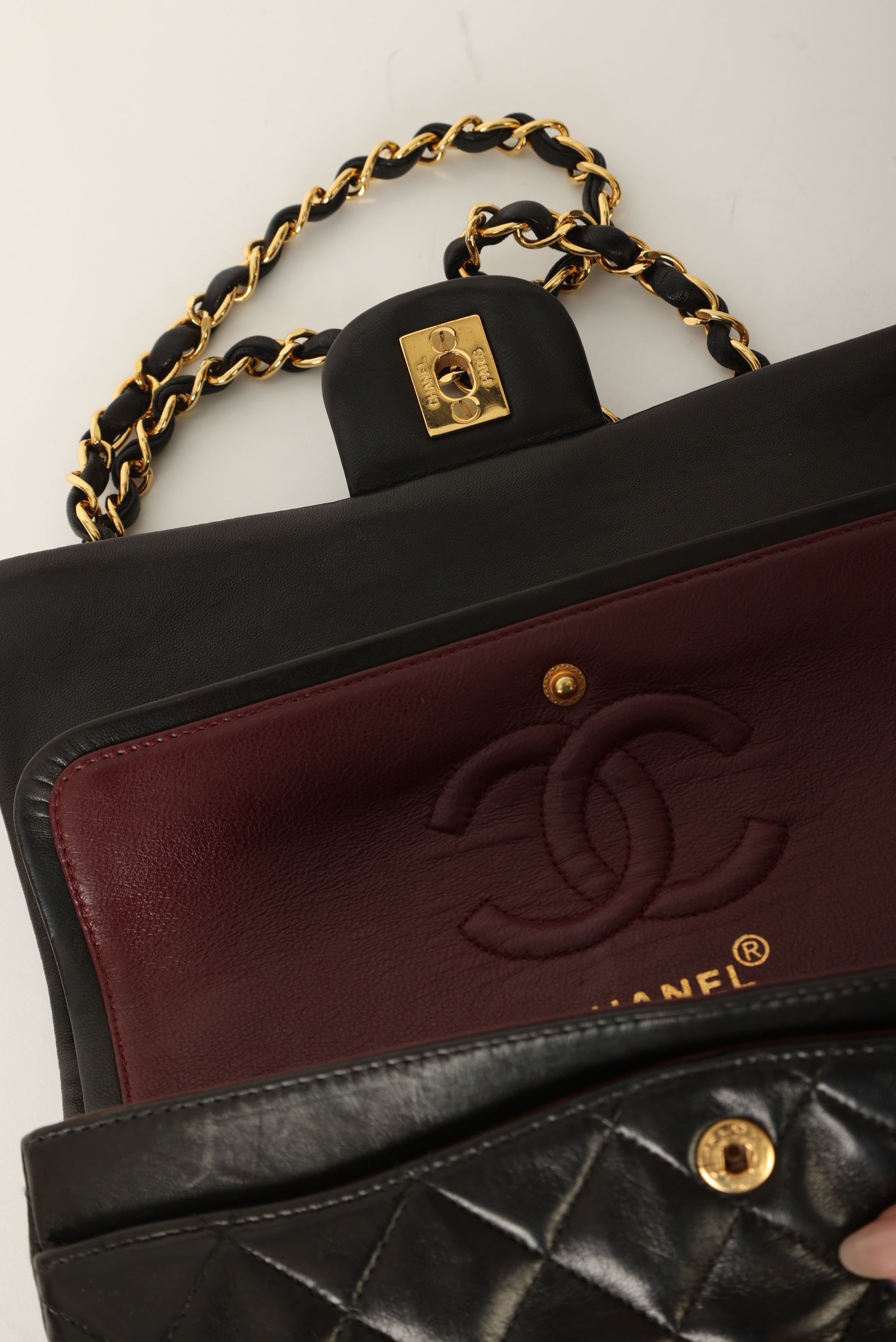 Dropping in the shop is a stunning, soft classic Chanel Lambskin Small Double Flap in black with gold hardware! An New investment piece that?can be loved for years to come. Vintage Chanel crafted in the 90s = 24k hardware and soft buttery lambskin. Don't miss out on this gorgeous find! Can be as a long or short shoulder bag. You can fit your phone, keys wallet, and a few other smaller essentials.?