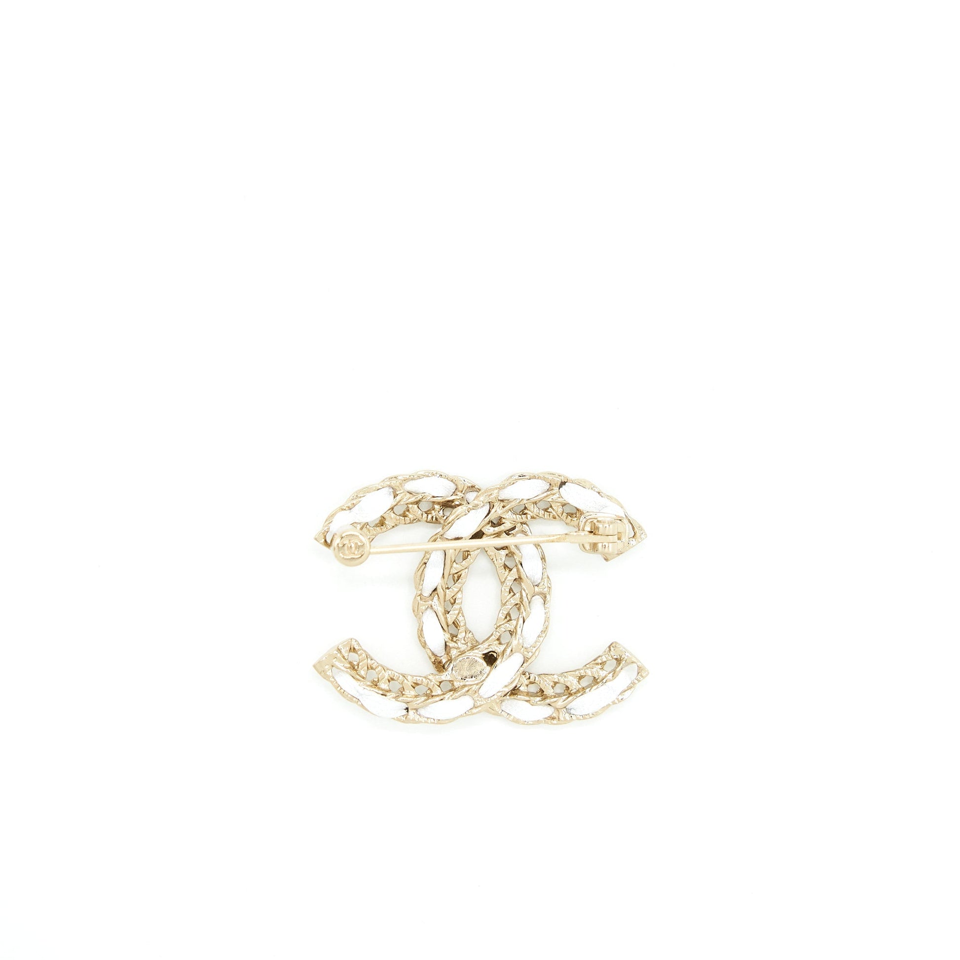 Chanel Small Leather Chain CC Logo Brooch White/Light Gold Tone