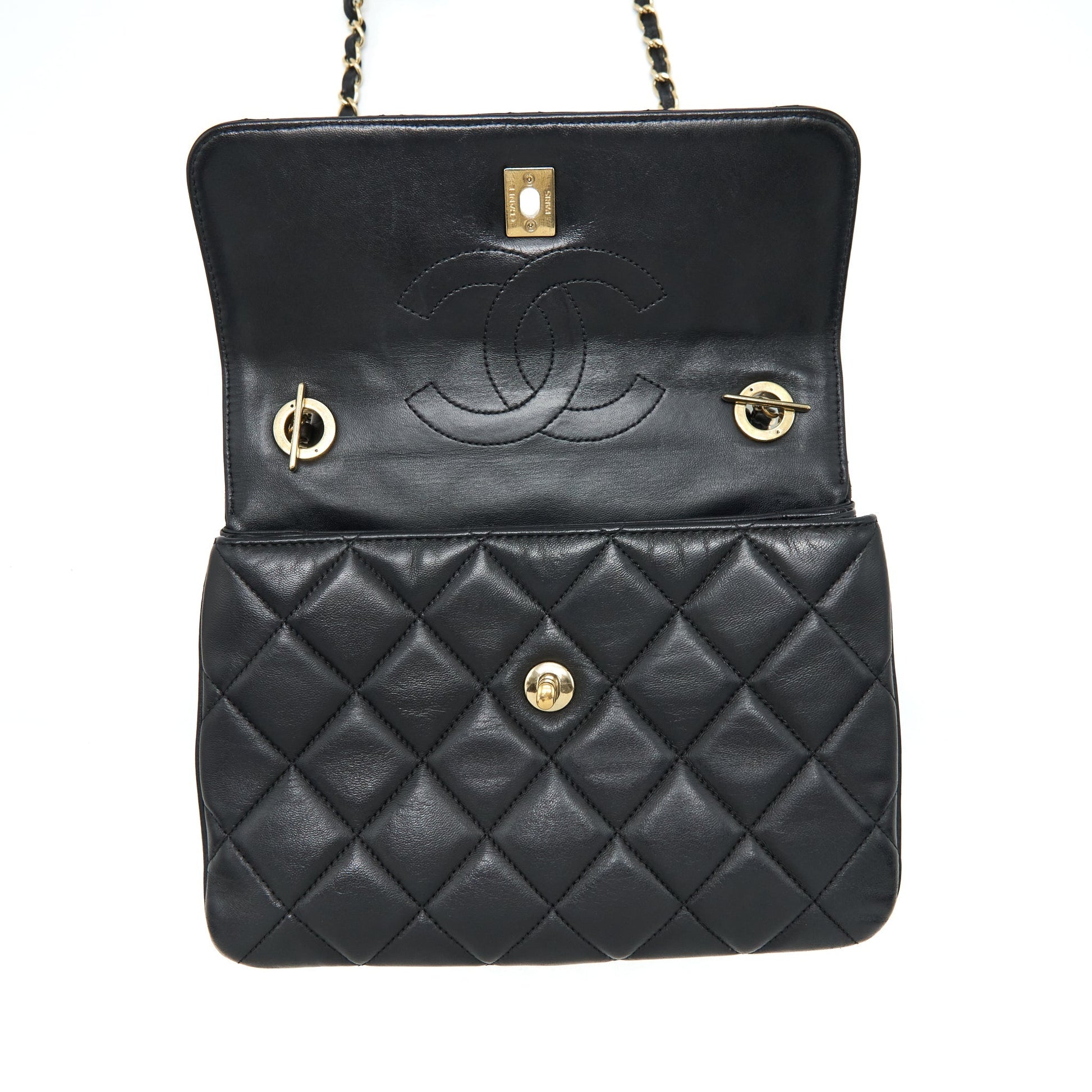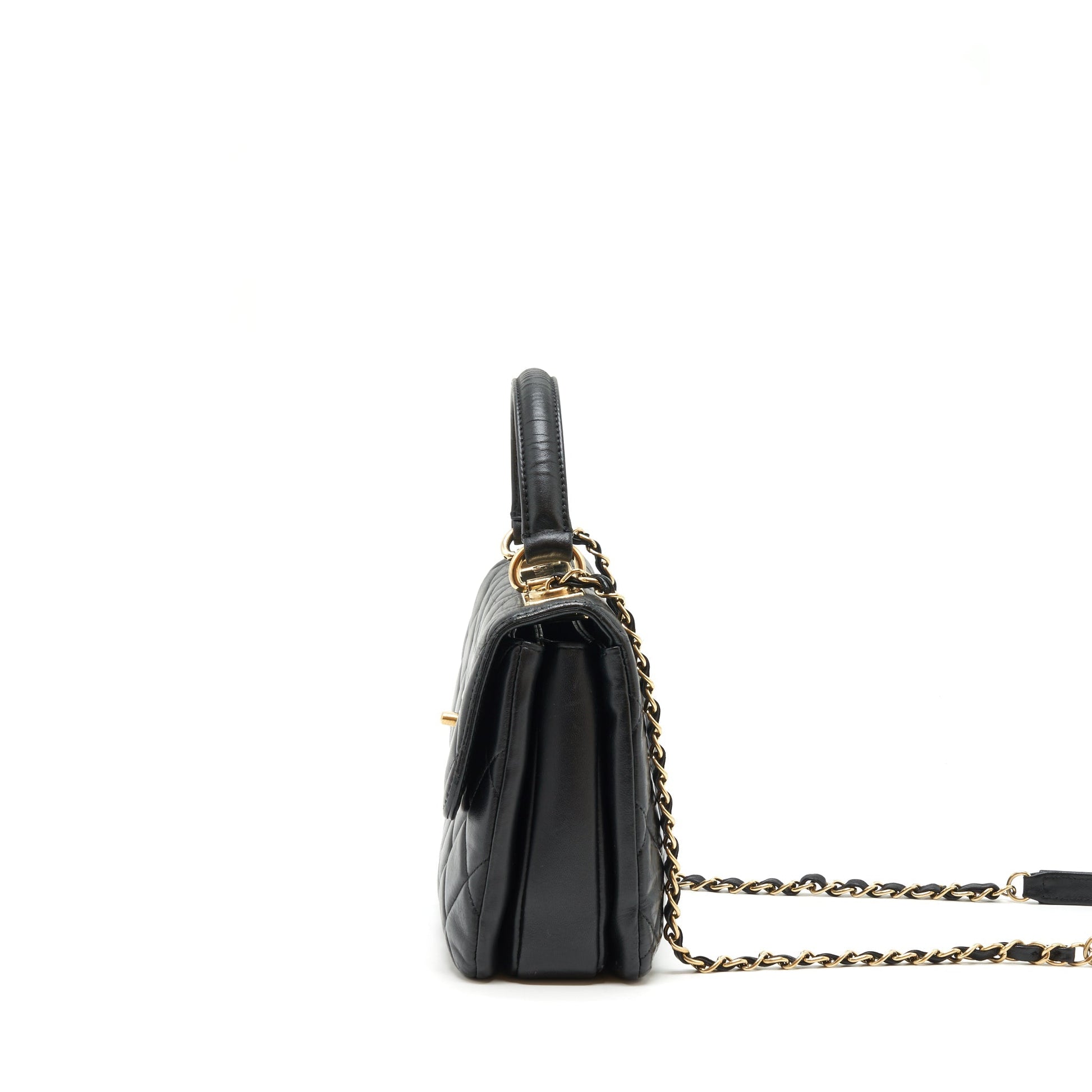 Chanel Small Trendy CC Flap Bag With Top Handle Lambskin Black LGHW
