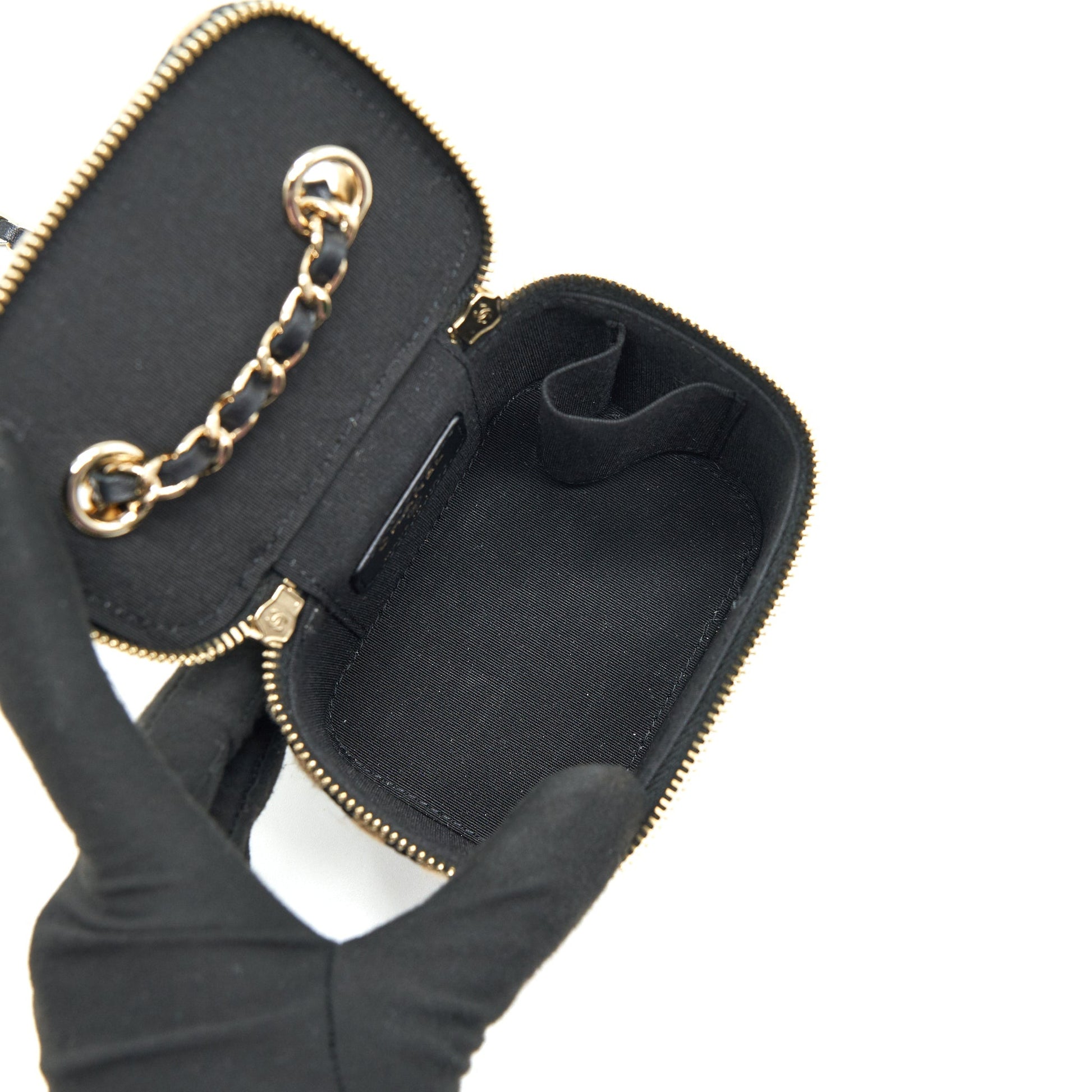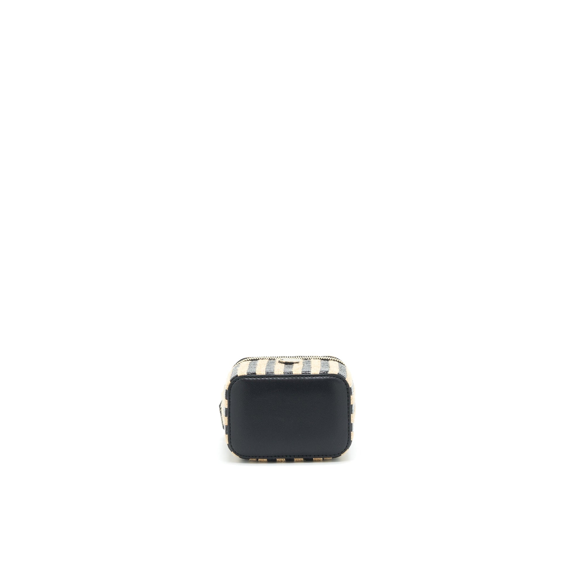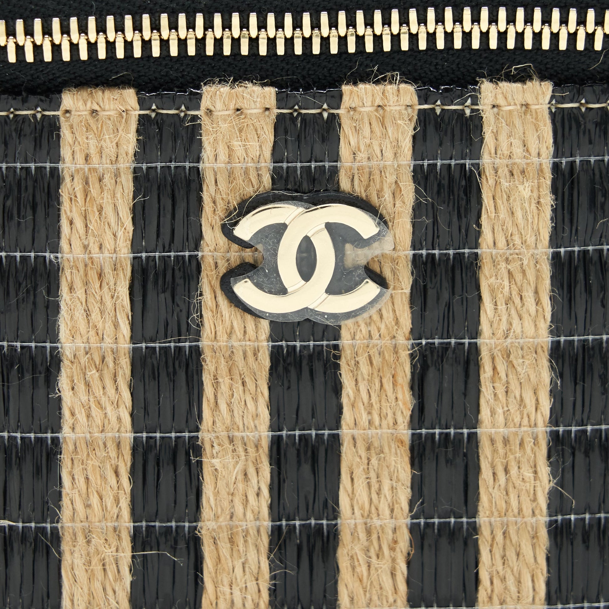 Chanel Small Vanity with Chain raffia Black Beige stripe