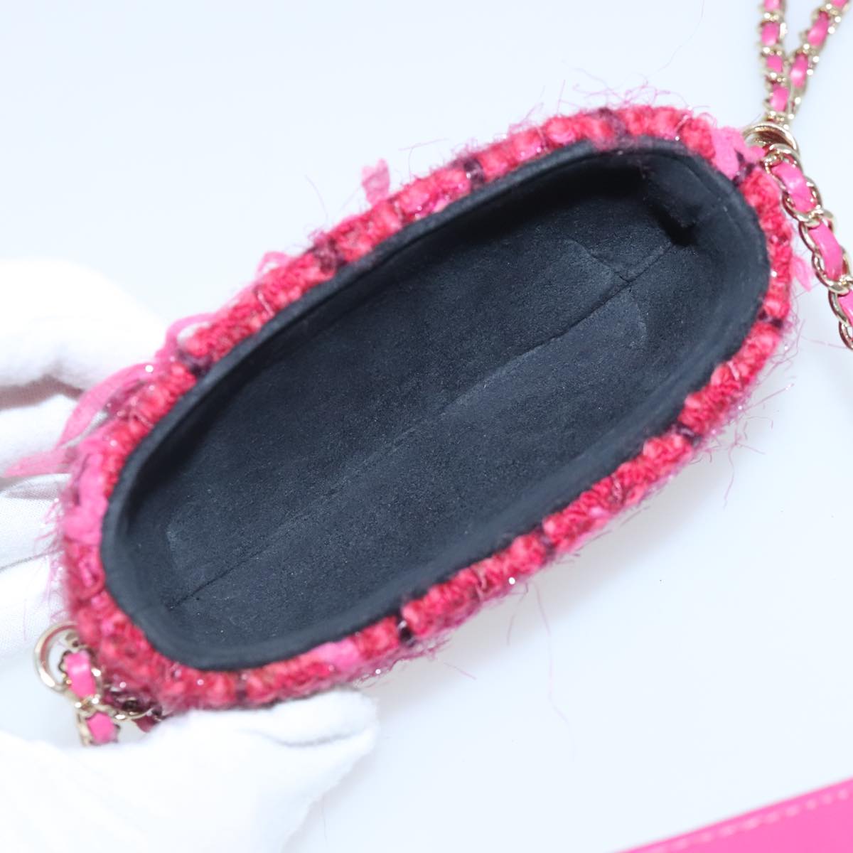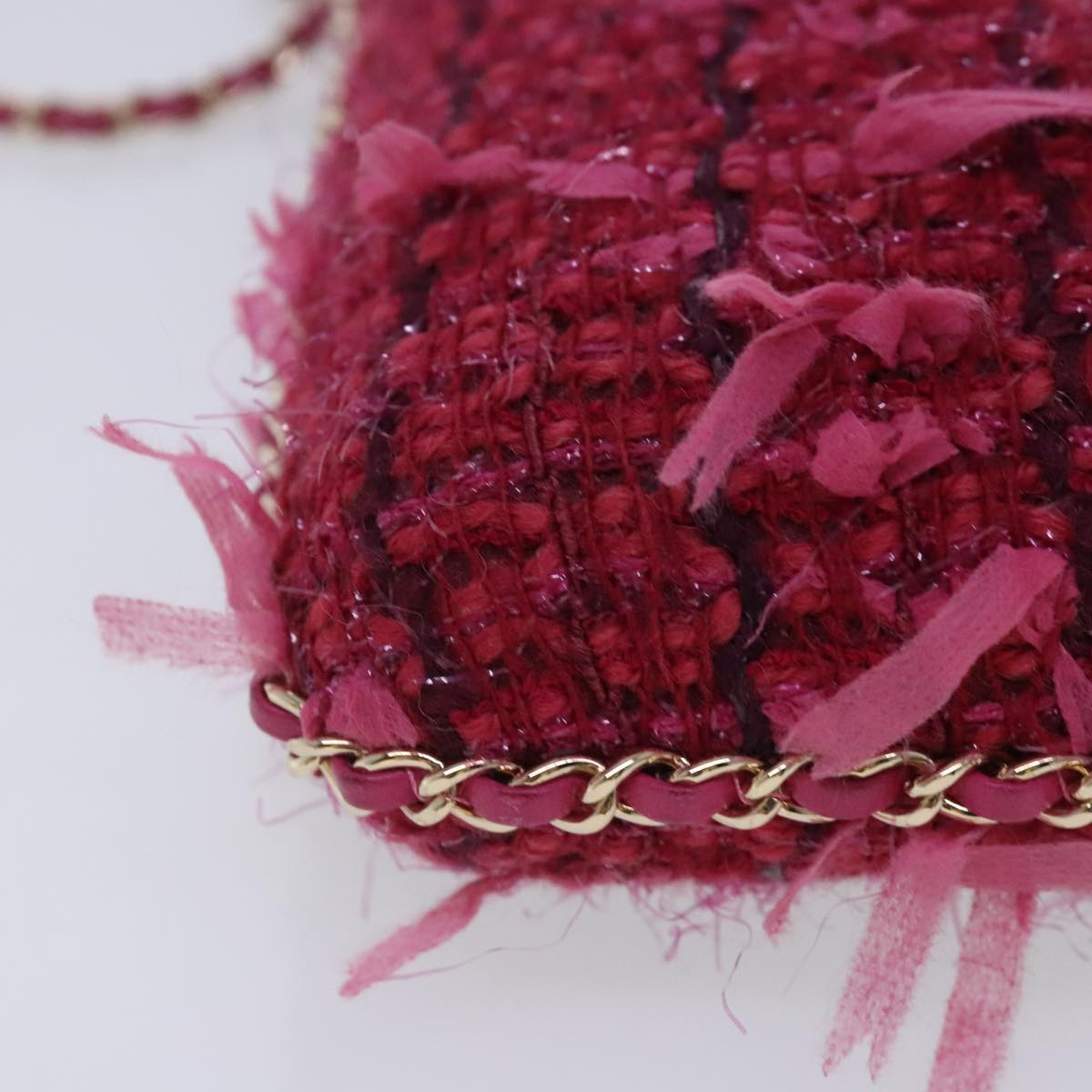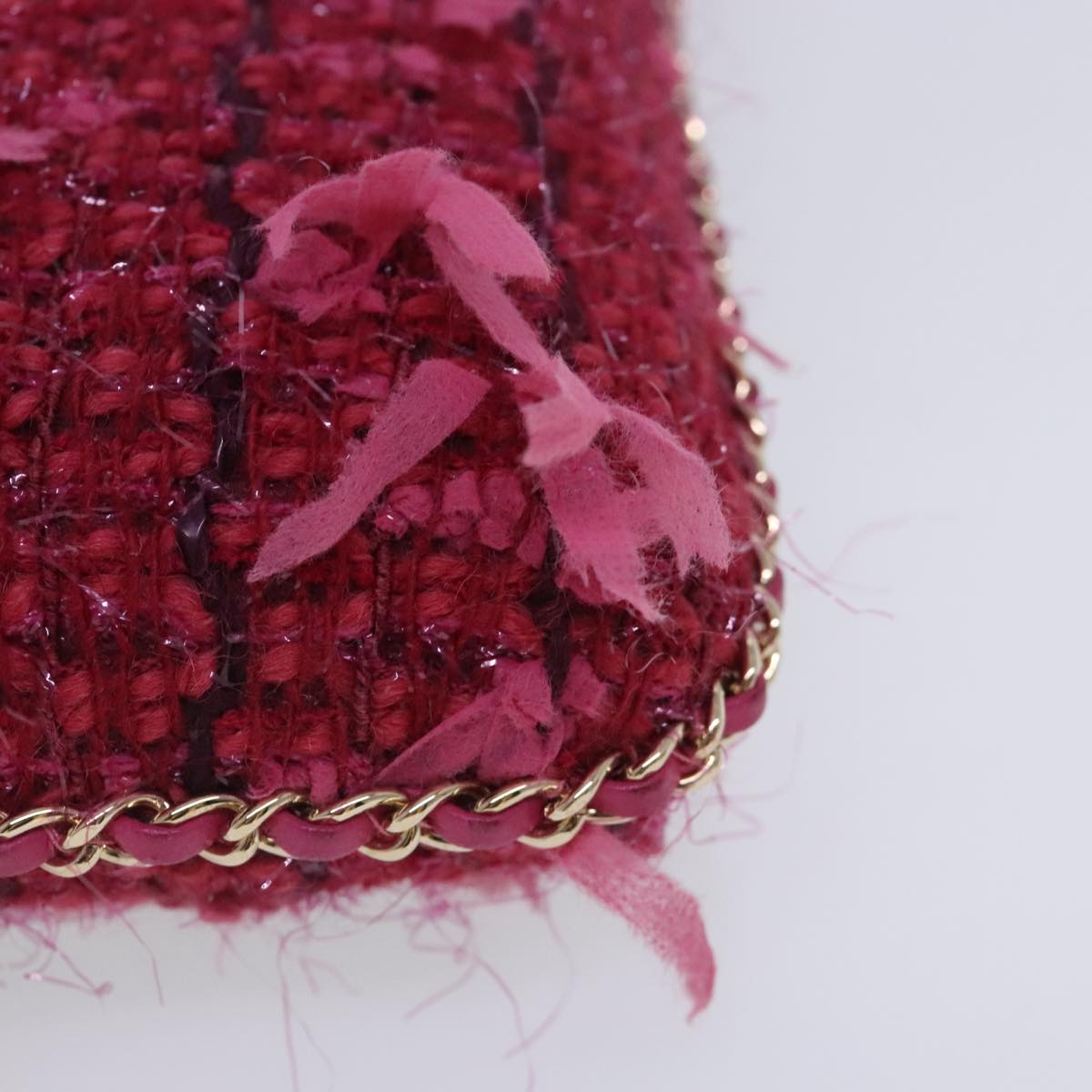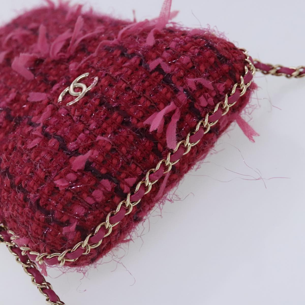 CHANEL Smartphone Case Chain Shoulder Bag Tweed Gold Pink CC bs18176