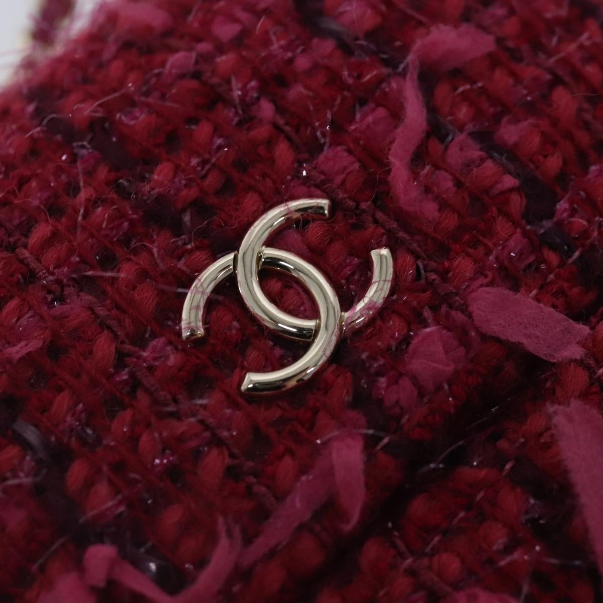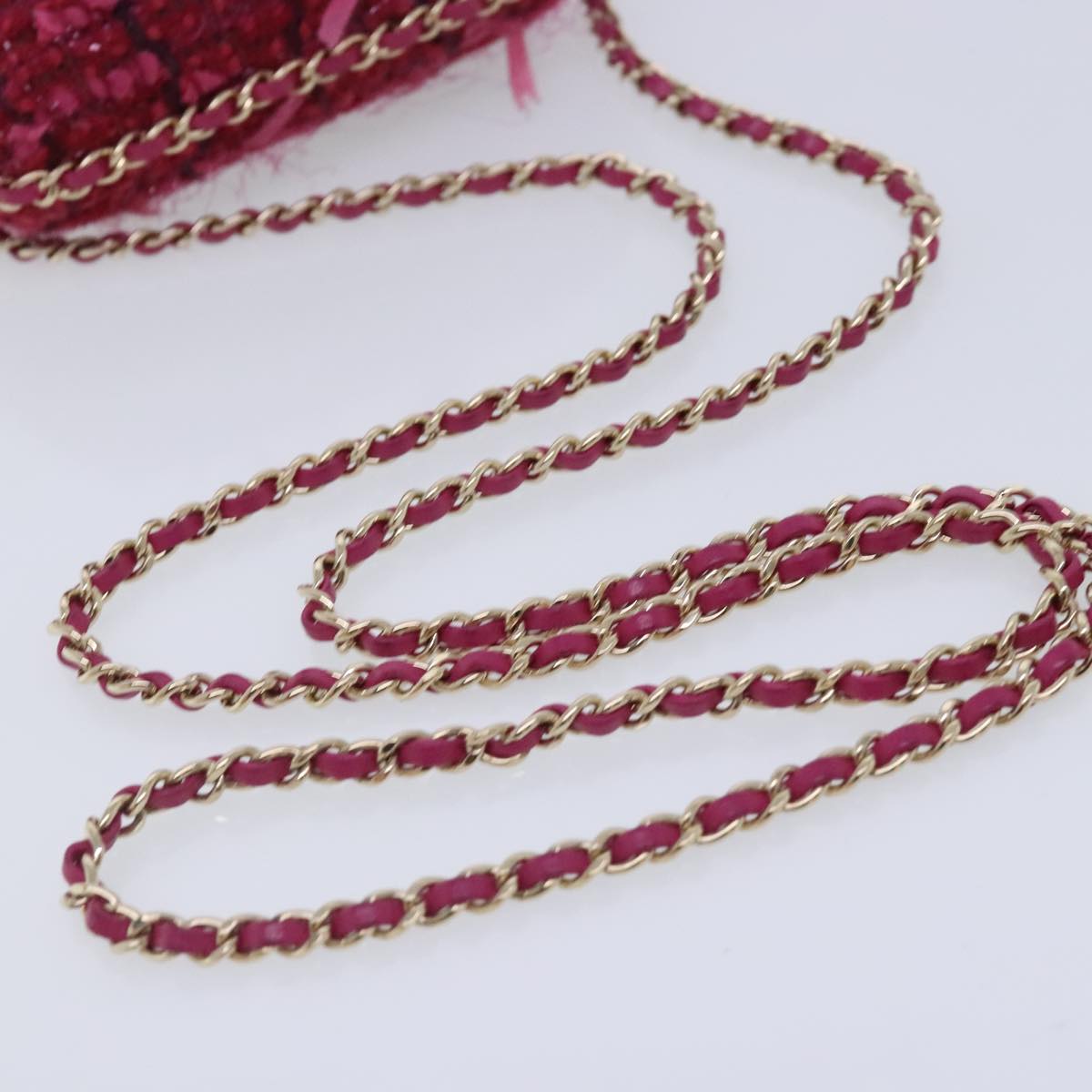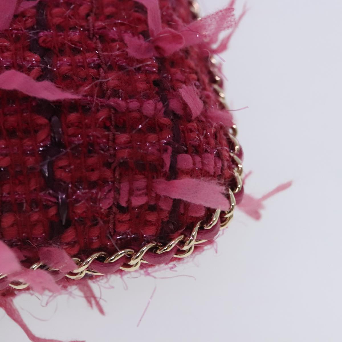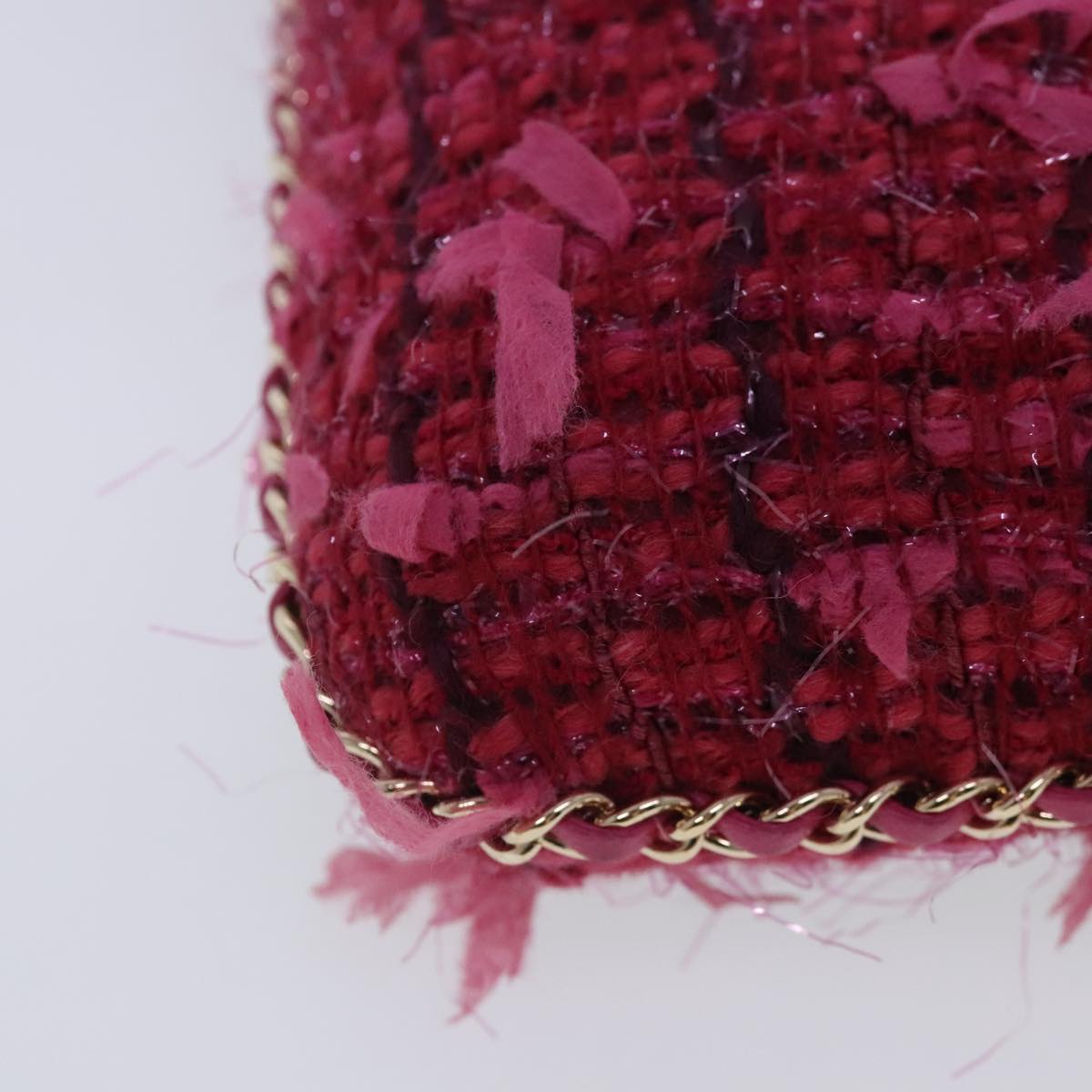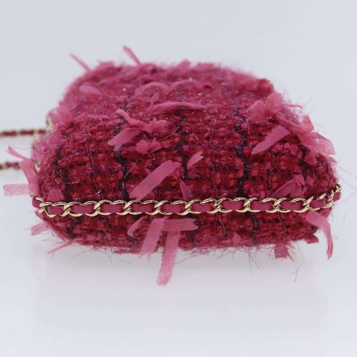 CHANEL Smartphone Case Chain Shoulder Bag Tweed Gold Pink CC bs18176