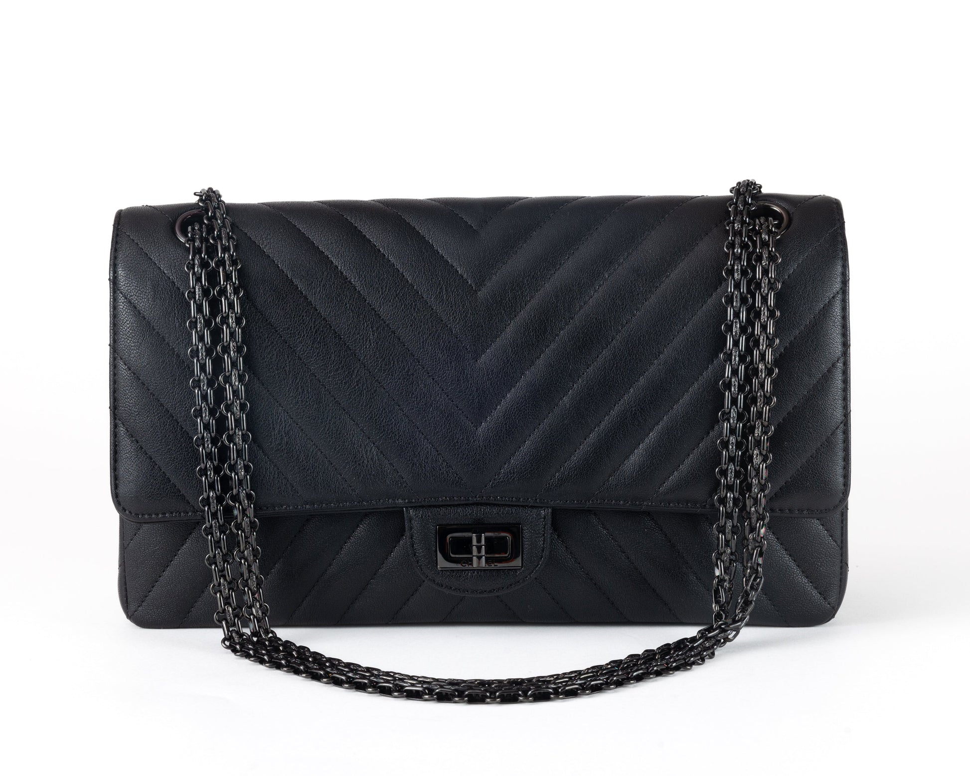 Chanel So Black Chevron Quilted Medium Classic w/ Black Hardware