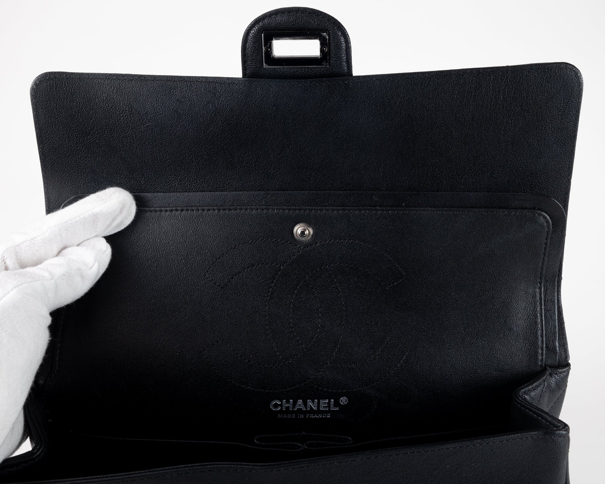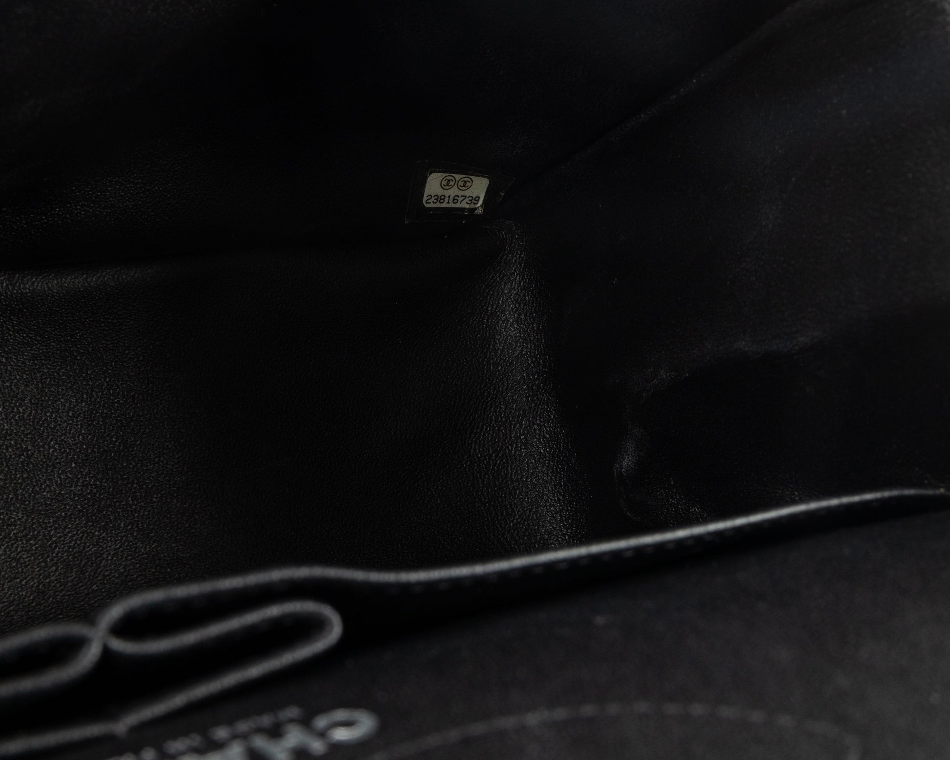 This Chanel So Black Chevron Medium Classic is pristine. Sleek black calfskin is quilted in chevron pattern with black hardware accents. Mademoiselle twist lock secures the exterior flap. Bijoux style chain strap may be carried single or double. Made in France. Dust bag included.
