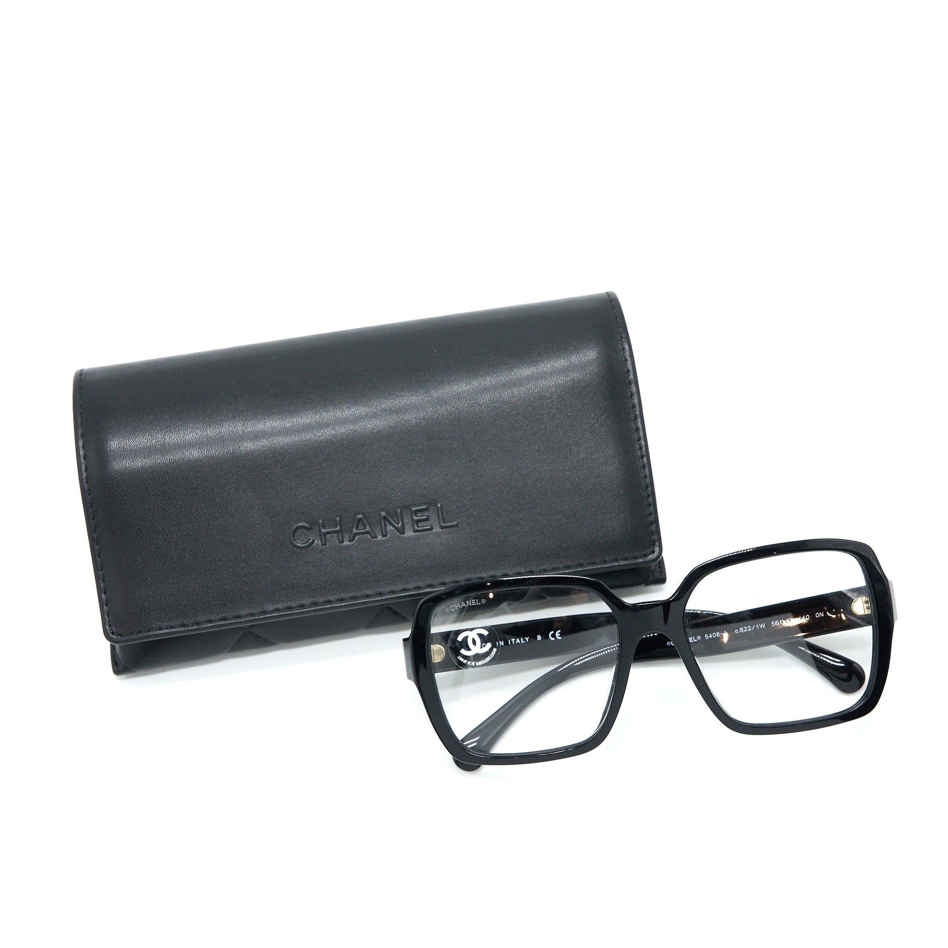 Chanel Square Glasses Frame With Letter Black Gold Tone