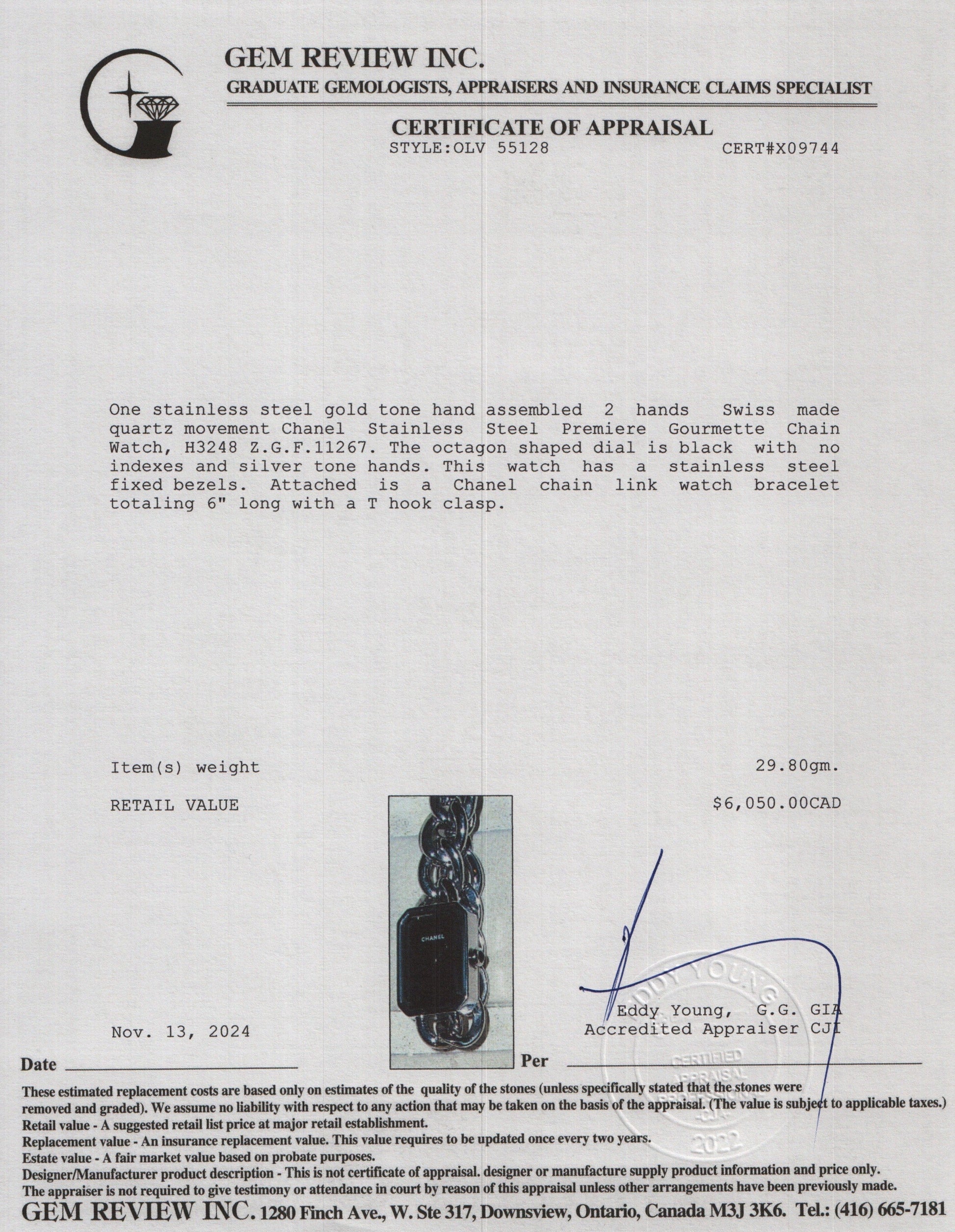 Chanel Stainless Steel Premiere Gourmette Chain Watch H3248 w/ Case