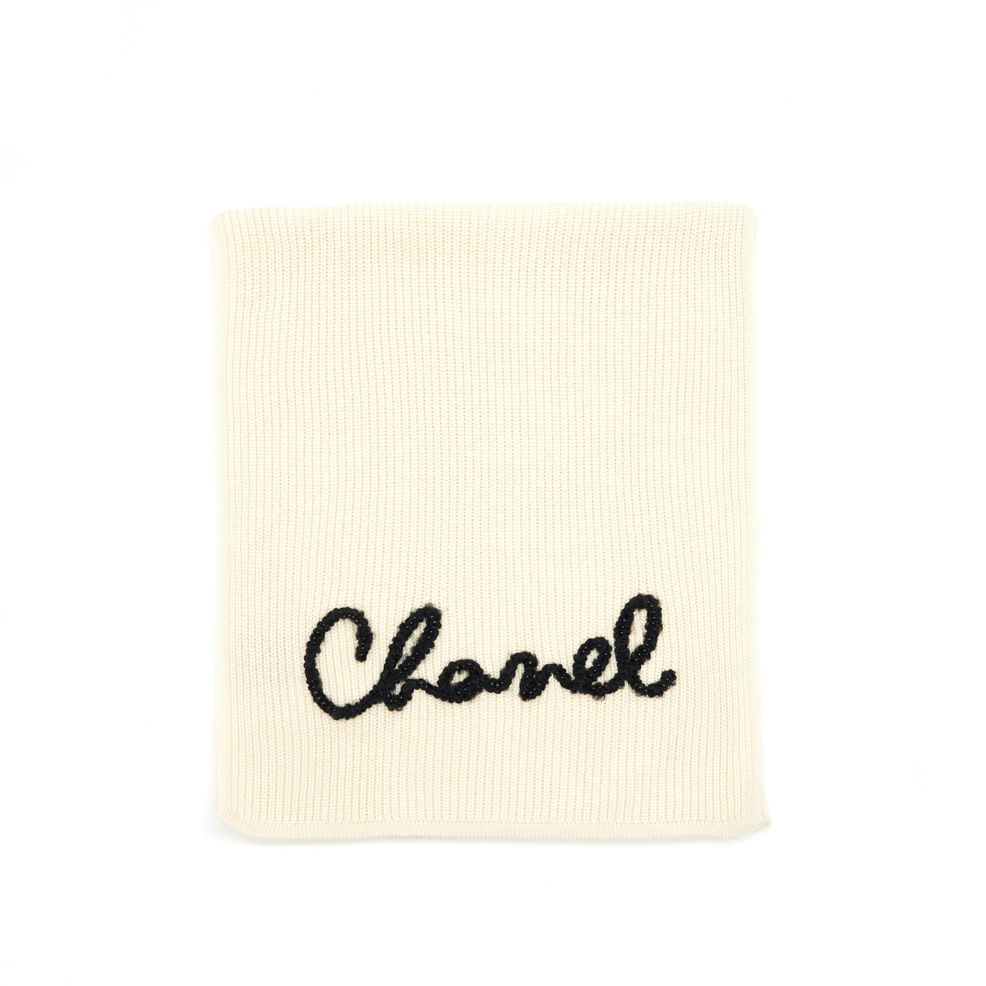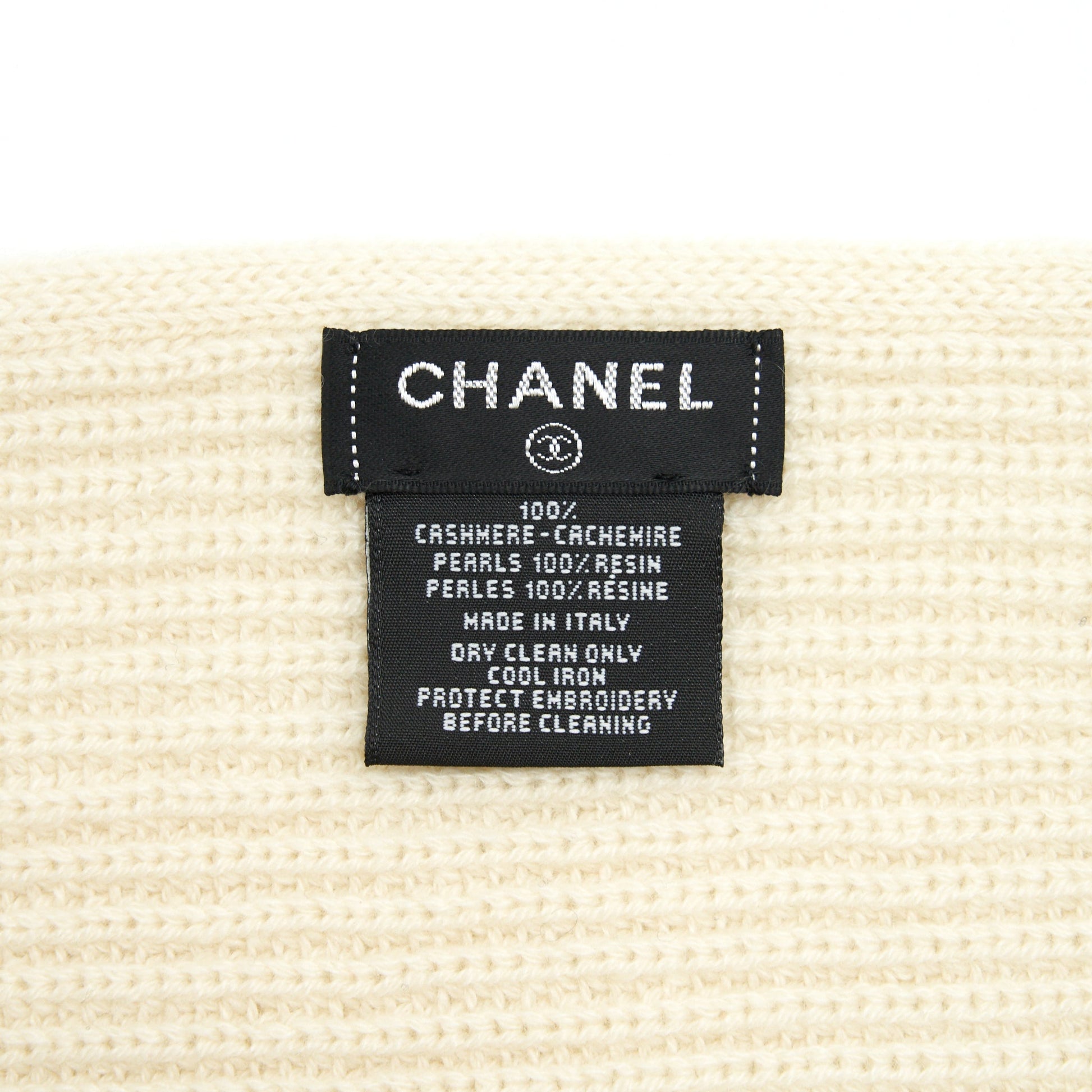 Chanel Stole Cashmere Scarf in Ivory 180x40cm