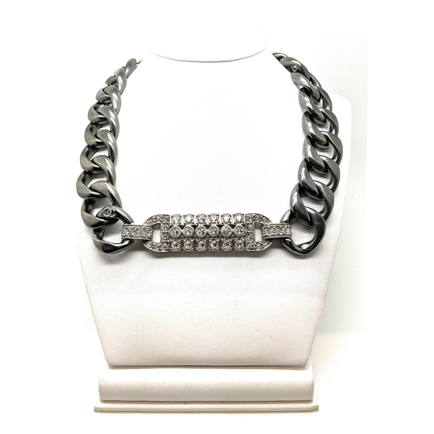 Chanel Strass & Ruthenium Metal Chain Necklace