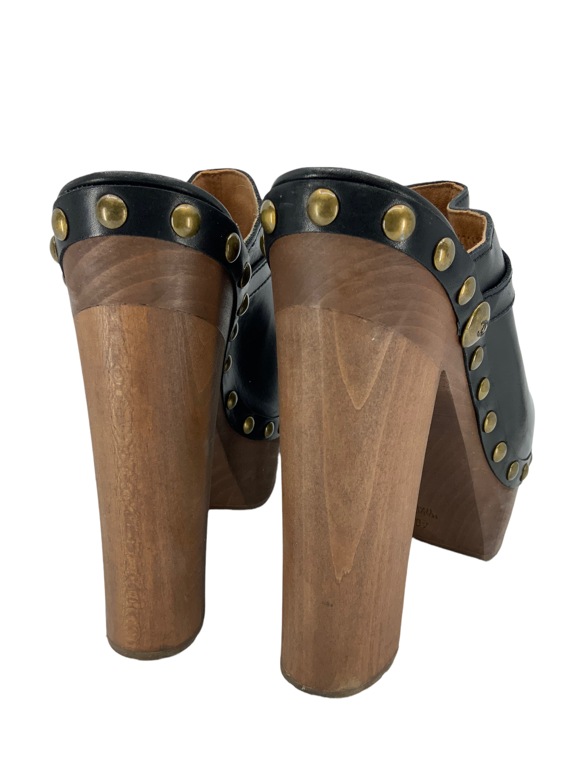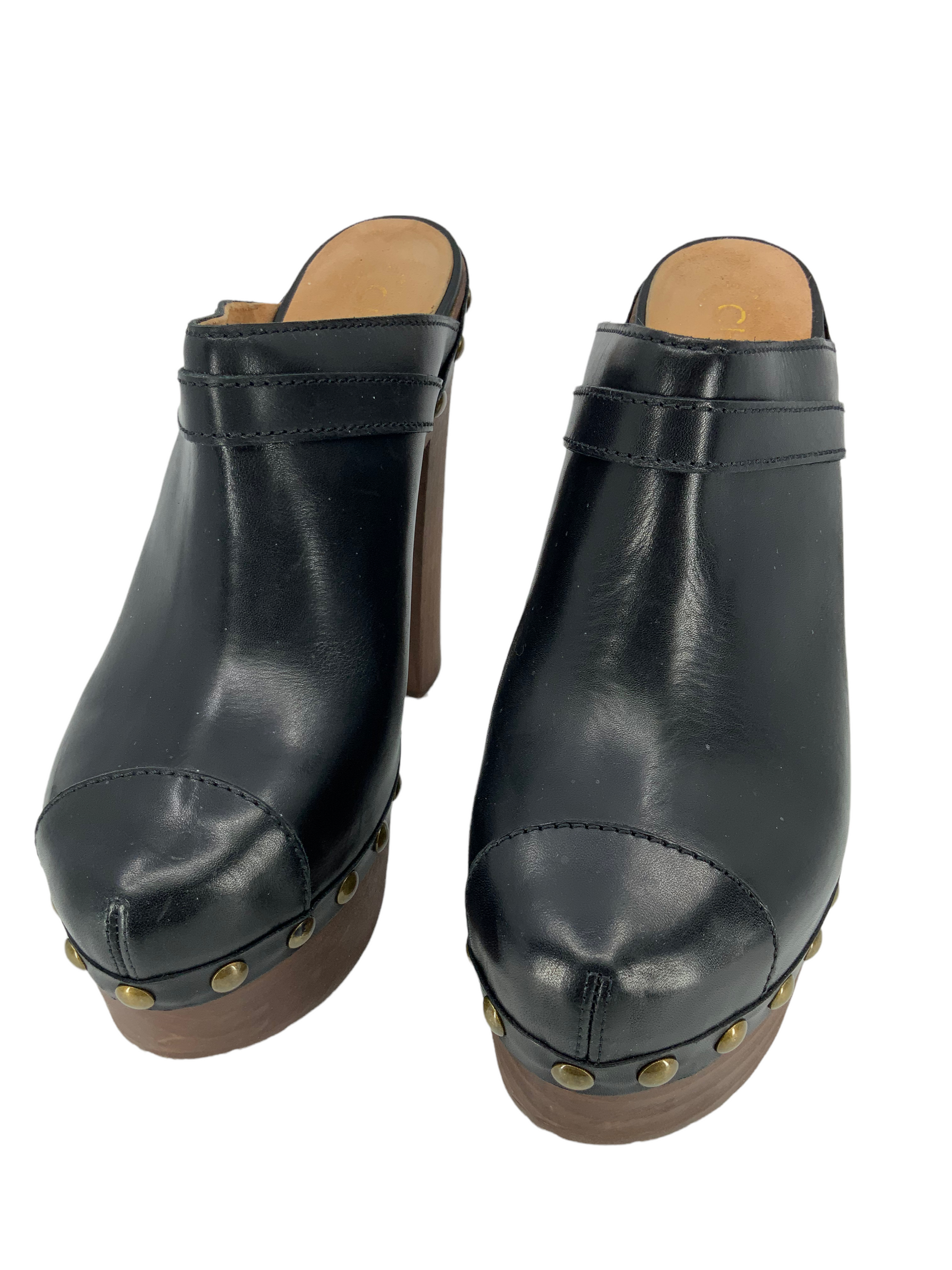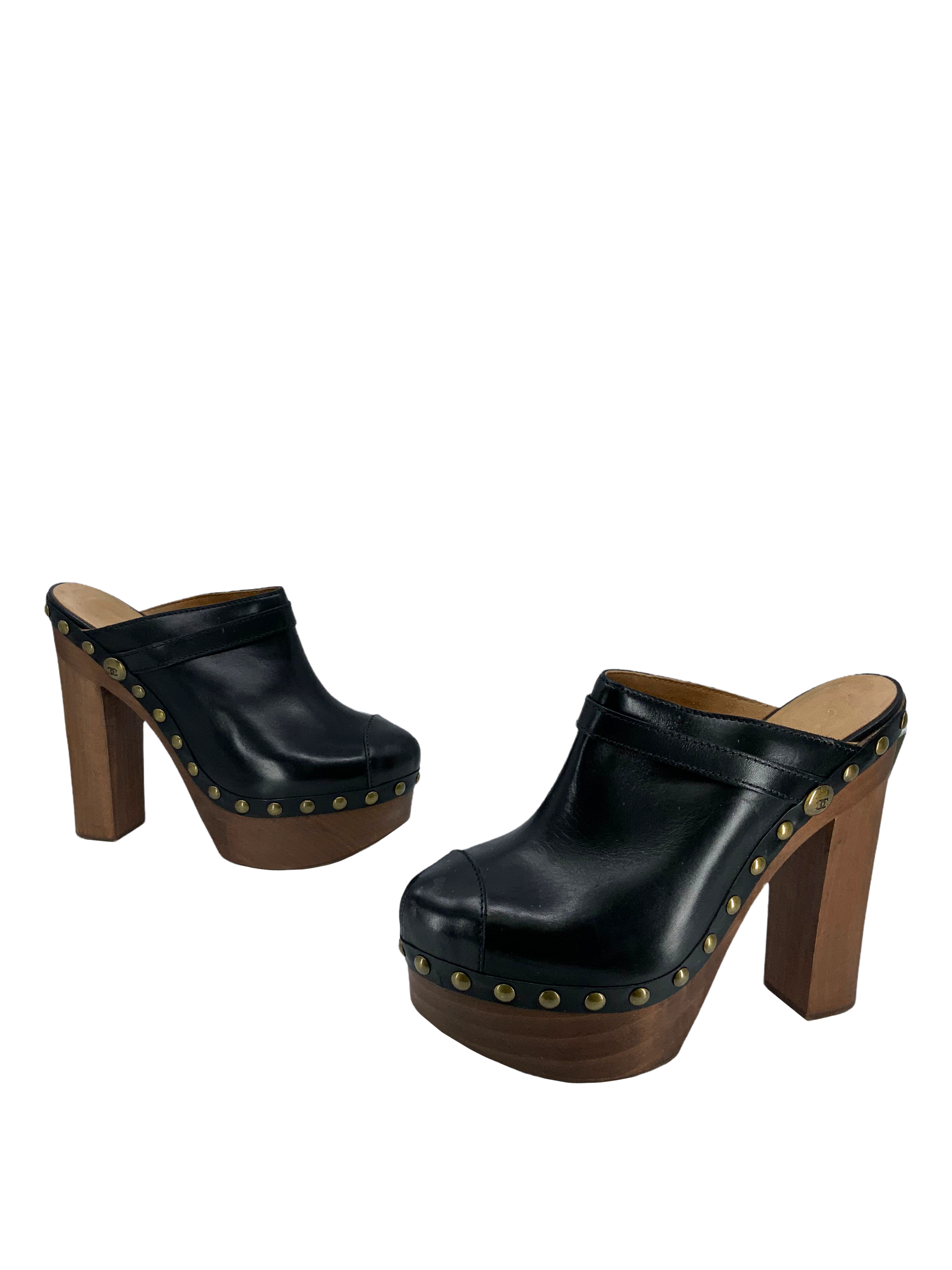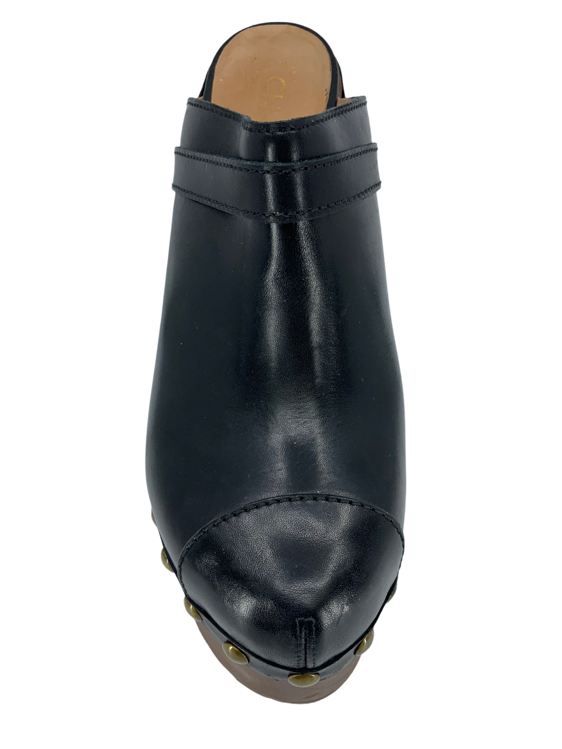CHANEL Studded Leather Wooden Platform Mule Clogs Size 10